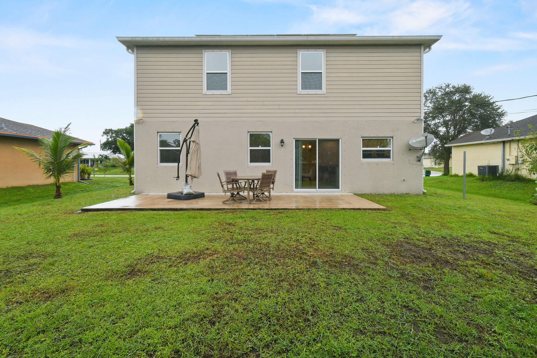 Built in 2018, this spacious 4BR/2.5BA Maronda Rockford model offers thoughtfully designed living space with stylish rooflines, a welcoming entryway, & a 2-car garage. Main level offers sleek tile throughout, flexible spacious floor plan w/formal LR/DR, 1/2 bath, extra storage under the stairs & tons of natural lighting throughout. The kitchen features 42'' soft-close white cabinets, granite tops, & upscale appliances including Bluetooth Samsung refrigerator & GE dishwasher (6 mos). Upstairs you will find all the bedrooms & laundry. The generous primary suite offers dbl. door entry, a large walk-in closet, while the mstr. bath is equipped w/a fully tiled shower, dual showerheads & his-and-hers sinks. All bedrooms are spacious w/comfortable carpet & ample closet space. The 2ndfloor laundry has a Samsung front-load washer/dryer, cabinets & folding area. Outside you will find a patio overlooking a vibrant, landscaped yard filled with tropical fruit trees including mango, banana, sour sop, & ackee trees as well as sugar cane & planted vegetables and herbs including peas & casava/yuca~ a peaceful retreat for garden lovers and fresh food enthusiasts. Conveniently located near Crosstown Pkwy, I-95, shopping, schools, hospitals & much more!