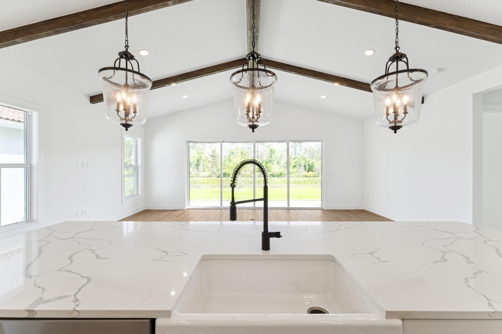 Enjoy picturesque lake views from this stunning farmhouse-style Santa Fe home, where comfort and character come together beautifully. The stunning kitchen showcases Brellin White cabinets and elegant Statuary Classique quartz countertops, opening to connected living spaces with a vaulted ceiling and stained ceiling beams for added warmth and charm. The peaceful primary suite offers the perfect retreat, complemented by a refreshing bath with a barn door and freestanding tub. A functional home office and formal dining room off the foyer add flexibility, while the inviting covered patio with a 16-foot multi-slide door creates seamless indoor-outdoor living. For added comfort and efficiency, the Home Technology Suite comes standard, delivering smart home features designed for today'slifestyle. Community Amenities: Enjoy resort-style living with sparkling pool & cabanas, pickleball courts, tot lot, and tranquil walking trails around scenic ponds. Whether you're looking to unwind or stay active, Salerno Reserve offers the lifestyle you've been seeking - just steps from your front door. Prime Location: - Easy access to I-95 and the Florida Turnpike - Minutes to Stuart Beach and other South Florida coastal gems - Close to shops, dining, and entertainment in historic Downtown Stuart - Conveniently located 40 miles from Palm Beach International Airport - Near world-class golf courses, museums, and outdoor recreation