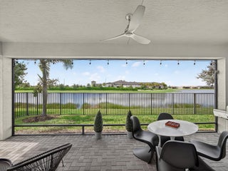 Welcome to this impeccably upgraded 2-bedroom plus den that can be converted into a bedroom, 2-bathroom lakefront home located in the highly sought-after Valencia Grove at Riverland community. Thoughtfully designed for both comfort and style, this residence offers a blend of modern finishes and functional upgrades that make it truly stand out. The impact glass front door fills the entryway with natural light, leading into an open-concept living space adorned with upgraded tile flooring throughout, recessed lighting, and a spacious layout ideal for entertaining or everyday living.The gourmet kitchen features level five upgraded cabinets, sleek Corian countertops, a custom backsplash under the peninsula, and an upgraded kitchen faucet. Additional touches such as the built-in cabinet with sink and faucet, laundry upper cabinets, and coordinating laundry backsplash enhance both convenience and aesthetic appeal. The bathrooms have been beautifully upgraded with rectangular Kohler sinks, elegant vanities, and shower tile extending all the way to the ceiling, providing a spa-like atmosphere. Outdoor living shines with a screened lanai featuring an updated screen enclosure and ceiling fan, perfect for relaxing while enjoying tranquil lake views. The fenced backyard and upgraded landscaping create a private oasis, while the widened paver driveway, paver garage extension, and additional entryway pavers contribute to the home's impressive curb appeal. Practical upgrades include a screened front door, finished attic over the garage offering abundant storage, and thoughtful enhancements throughout the home that balance style with functionality. Located within Valencia Grove at Riverland, residents enjoy resort-style amenities, scenic walking and biking trails, and an active 55+ lifestyle. With its modern upgrades, serene lakefront setting, and exceptional attention to detail, this home is the perfect combination of luxury and comfort.
