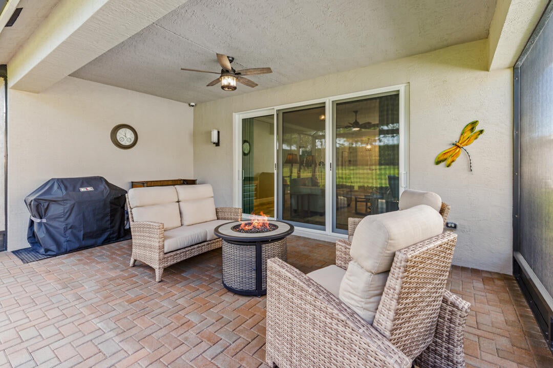 Entertaining back-up contracts....Please contact listing agents for appointment to show.Featuring 2 cozy bedrooms & a versatile flex room that can be converted into a 3rd bedroom, along with 2 spacious bathrooms, this home spans 1,842 square feet LIVING AREA. Whether you're hosting a festive holiday dinner or enjoying a quiet evening by the fire pit, it is ready for you to make it your own.. all at a reasonable price with no CDDs! Nestled in the heart of Valencia Cay, enjoy the perks of a manned private gate entry, lawn & common area care, plus a PRIVATE CLUBHOUSE. Savor delicious bites at the new cafe and POOL BAR. HOA FEES COVER RIVERLAND's FABULOUS AMENITIES! Close to airports, shopping, restaurants, major highways, beaches & charming towns.Private travel is seamless with easy access to Stuart's Witham Field or via the Palm Beach International Airport. Easy access to the St. Lucie River, Lake Okeechobee, and the Atlantic Ocean offers nonstop boating and fishing, plus miles of pristine beaches and sandbars to explore. Quaint downtowns in Tradition, Fort Pierce, Jensen Beach, and Stuart provide boutique shopping, art galleries, and top-rated dining venues to enjoy. Performing arts lovers will cherish the nearby venues for a show, including the Sunrise Theatre, Riverside Theater, Lyric Theatre, and Kravis Center for the Performing Arts. The nearby Clover Park is the spring training grounds for the New York Mets. A rapidly expanding medical industry, including Tradition's Cleveland Clinic, St. Lucie Medical Center, and the Martin Health System, ensures quality healthcare is never too far away.