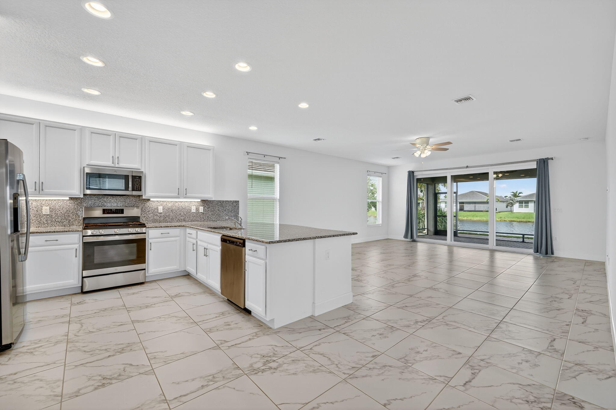 *** Price Reduction *** ABSOLUTELY GORGEOUS! Very desirable and rare Tribeca Model in Valencia Grove at Riverland, with water view, 4bed/2.5 ba, 2 car garage and an oversized screened enclosed patio overlooking the water. Lovely open floor plan, spacious master suite with his/hers closet, upgraded tile throughout the home, gas stainless steel appliances. This home has everything you dreamed of, a resort style Clubhouse, stunning social hall with raised stage where you will find live entertainment and events, several pools, tennis and pickleball courts, restaurant, great fitness center, multiple card rooms, catering kitchen for cooking, horticulture, demonstrations and a room for arts and crafts.New cabinets in laundry and new attic access ladder