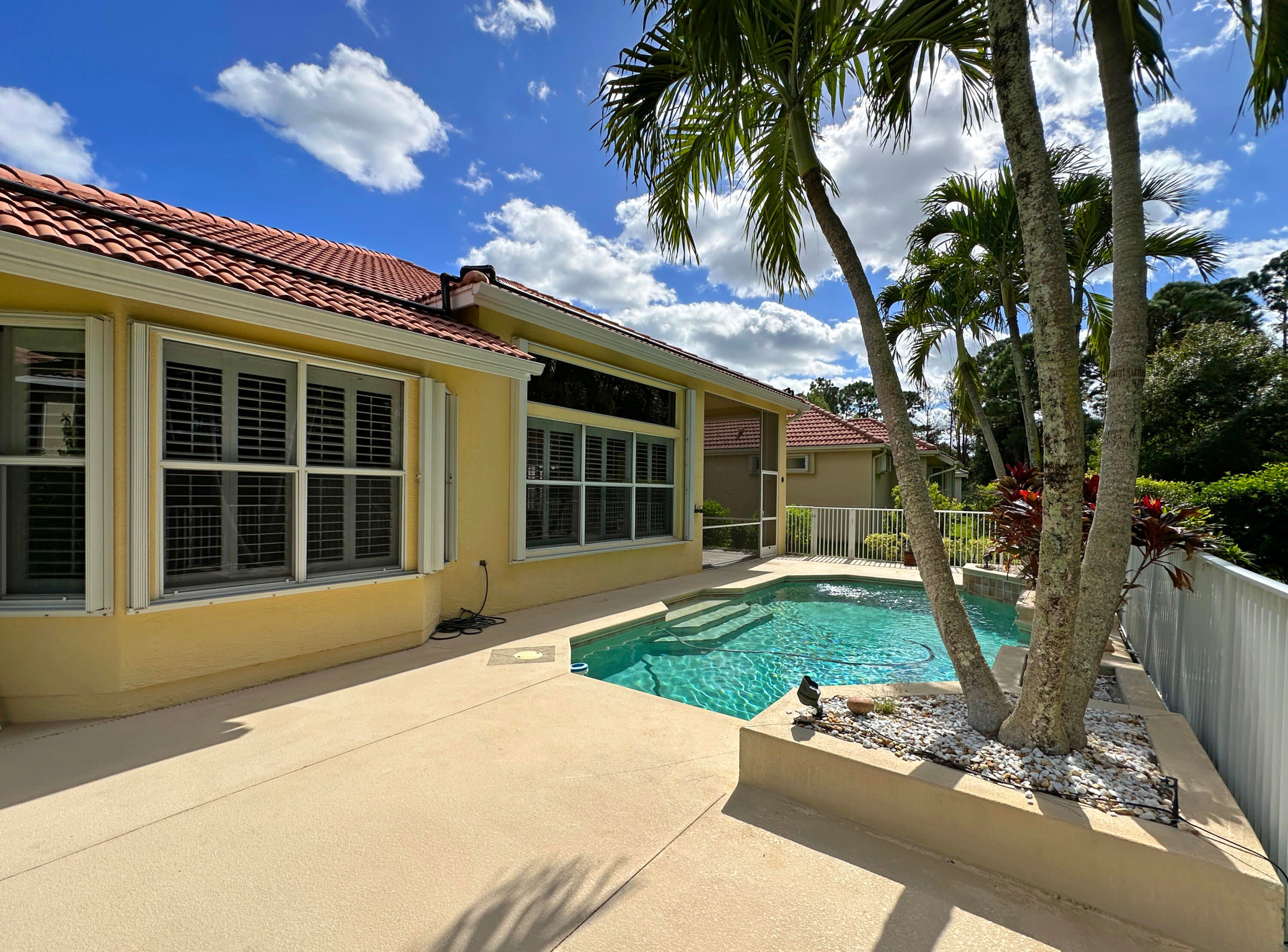 Welcome to this stunning 3-bedroom, 3-bathroom pool home tucked away on a quiet cul-de-sac street with a peaceful preserve view, your own private paradise! Enjoy elegant plantation shutters, an en-suite guest bedroom and a spacious primary suite with serene pool views, walk-in closets, dual sinks, a Roman tub, and a separate shower. Kitchen offers elegant white cabinetry, a center island, granite countertops and flows effortlessly into the formal dining and living areas plus a family room with additional dining space, all filled with natural light and scenic views of the pool and preserve, creating the perfect setting for relaxation and entertaining.Step outside to a beautiful fenced, solar panel heated pool overlooking the tranquil preserve. Additional features include accordionshutters, whole-house Generac generator and a tankless water heater for peace of mind and efficiency. Ideally located in the heart of St. Lucie West near shopping, dining, and entertainment. The community offers resort-style amenities including a manned gate, cable/internet, lawn care, heated pool and spa, library, media center, tennis and pickleball courts, basketball, shuffleboard, bocce, horseshoes, and on-site management.