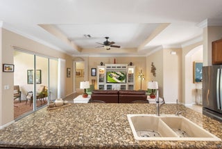 Discover this meticulously maintained 3-bedroom, 2.5-bath CBS home that includes a 3-car garage, living room, and formal dining. You will love the open-concept with volume ceilings and a layout that seamlessly connects the living, and kitchen areas. The modern island kitchen features large-tile floors, granite countertops, wood cabinets, a breakfast nook, coffee bar and stainless steel appliances, perfect for everyday use and hosting guests. Large master suite, walk-closets, dbl vanity and garden tub! Crown molding, tray ceilings and designer fixtures add an elegant touch! Relax in the spacious living room that opens up to a screened porch, sparkling POOL, and nearly half-acre private yard. The pool and patio are perfect for entertaining and summer fun!This beautiful home is conveniently located near I95 for ease of travel! Savannah Lakes is a gated community with a low HOA of only $150 per month.