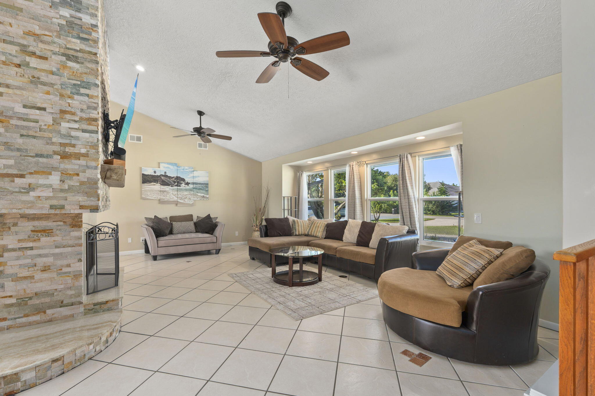Exceptional 4BR/3.5BA pool home in desirable Rocky Point! Larger circular drive with room to park your boat! This home opens to a dramatic vaulted living area with sliding glass doors from the kitchen, living room, and primary suite--perfect for indoor-outdoor living! Bring the whole family-office/den could be the 5th bedroom! Spacious screened patio includes a heated pool, spa, and cabana bath. Enjoy a large eat-in kitchen with granite counters, endless storage, island bar, gas cooking, and honey maple cabinetry. Oversized Primary suite offers a sitting area, walk-in closet, double canity & large shower. Updates include 2022 AC, 2022 water heater, new gutters, partial impact windows, new pool screen and pump, and updated guest baths with new vanities & tile . Roof 201Situated on a large fenced corner lot with every fruit tree imaginable & a 500-gallon propane tank powering the stove, pool, fireplace, and grill. Close to parks, boat ramps, and the inlet, an ideal coastal lifestyle!