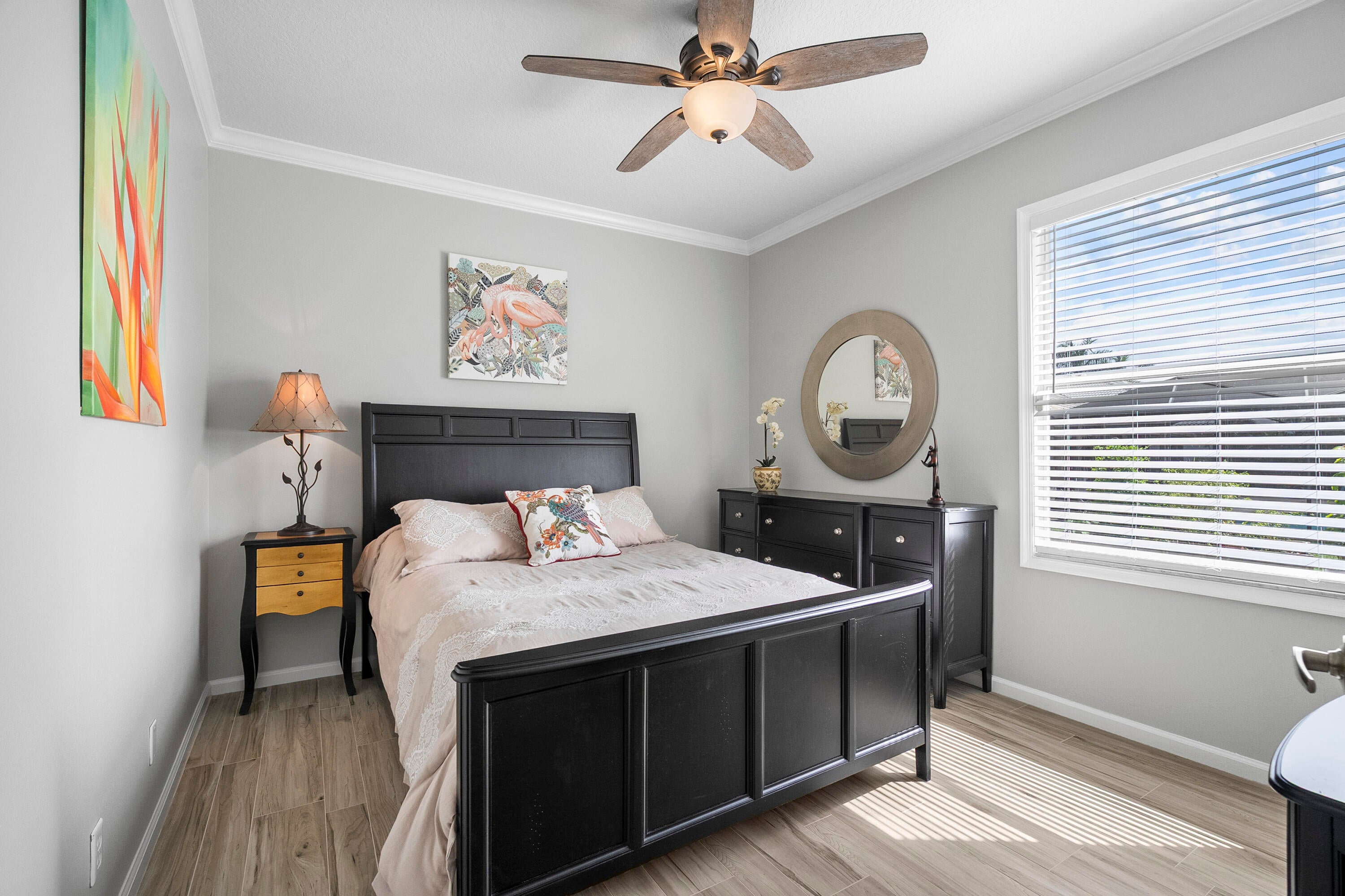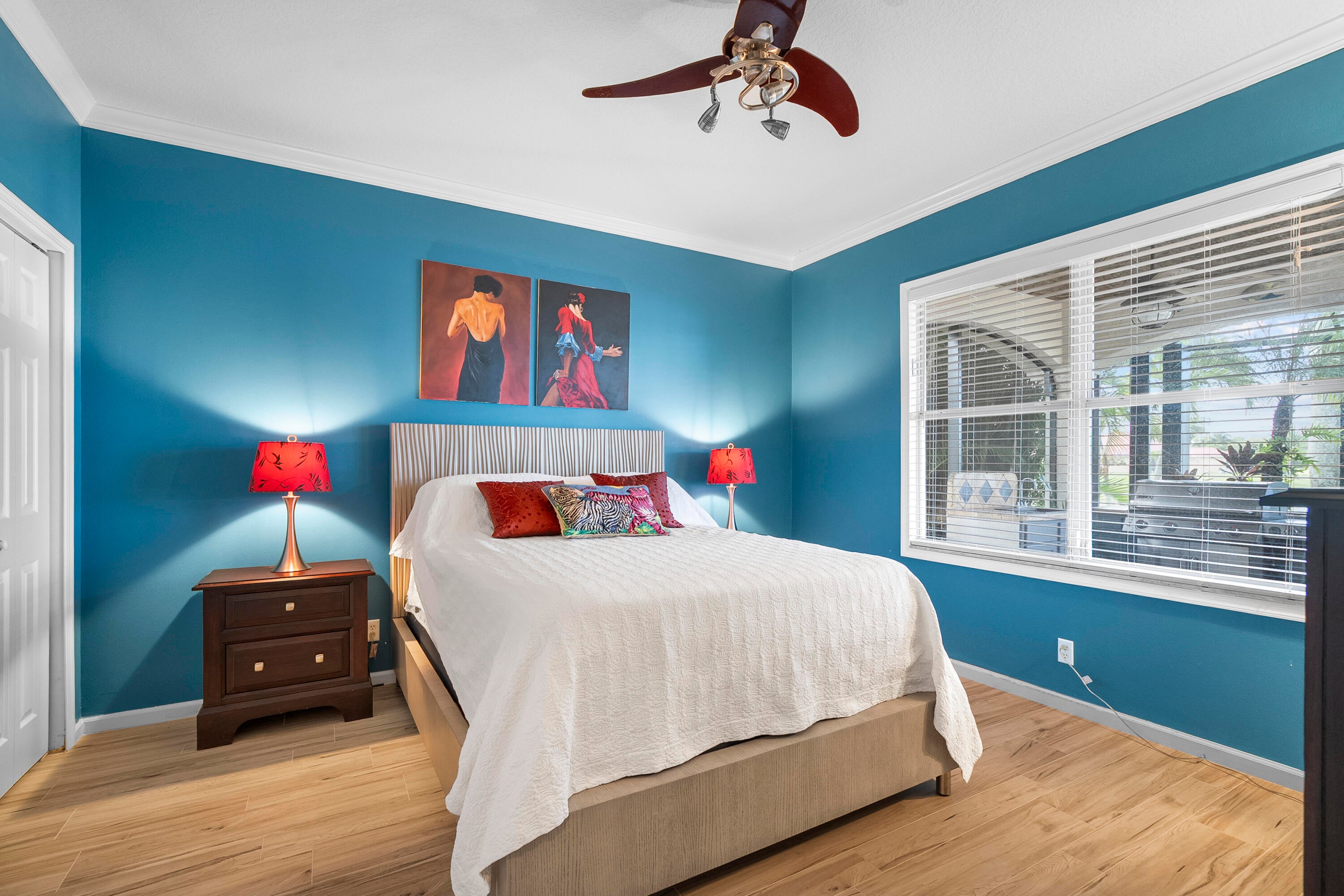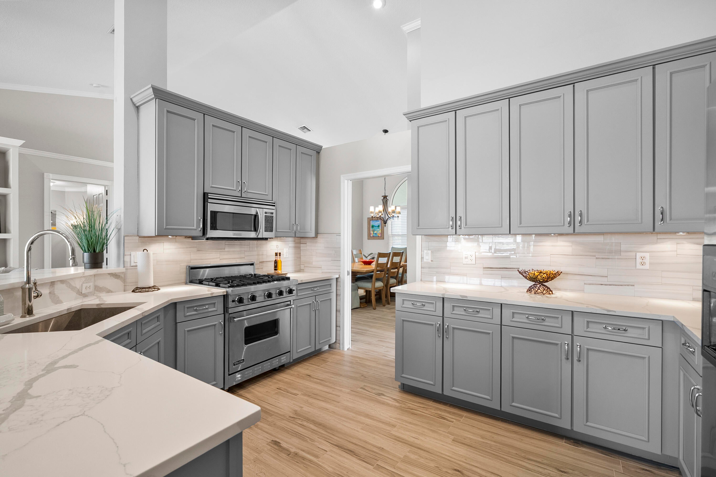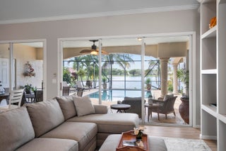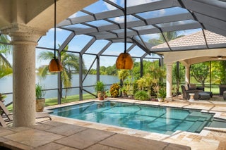 EXQUISITE 4-Bed/3-Bath + DEN Estate POOL HOME with Panoramic LAKE VIEWS and Breathtaking Sunsets. Experience RESORT-STYLE LIVING in this stunning, fully updated home that perfectly blends modern elegance with comfort. Step through the GRAND ENTRANCE into a space defined by SOARING CEILINGS, 8-FOOT DOORS, and freshly TILED FLOORS throughout. Your PRIVATE BACKYARD OASIS awaits--lush tropical landscaping, multiple gathering areas, an outdoor dining space, BUILT-IN GRILL and BAR, and a HEATED SALTWATER POOL--all overlooking the serene beauty of the lake. Inside, the GOURMET CHEF'S KITCHEN impresses with QUARTZ countertops, a professional-grade VIKING GAS RANGE, a butler's pantry, and a BEVERAGE FRIDGE. The SPA-INSPIRIED primary suite features a luxurious bathroom; SOAKING TUB, RAIN SHOWER...and endless hot water from a new 2024 TANKLESS system. Two additional designer bathrooms feature quartz countertops, elegant vanities, and spacious walk-in showers. The home is fully storm-protected with impact-rated front windows and door plus shutters for remaining points of entry. Located in the gated community of The Sanctuary at Sawgrass Lakes, residents enjoy low HOA fees, newly paved roads, and beautifully maintained surroundings. All measurements and information deemed reliable but not warranted by agent or agencies.