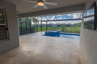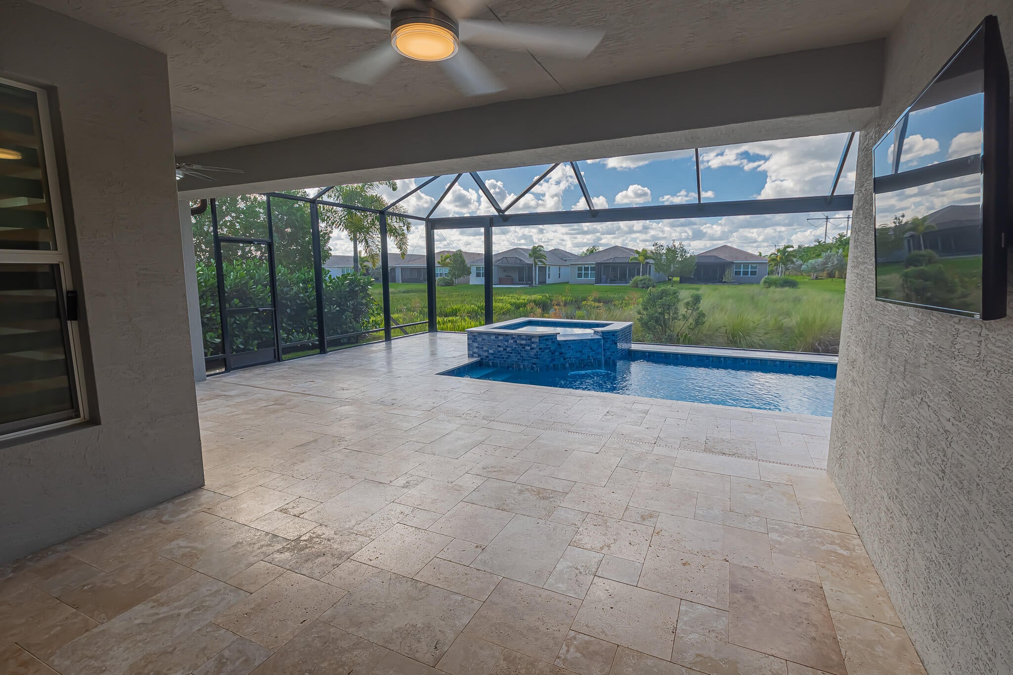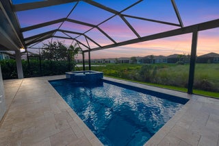 Located in Valencia Grove @ Riverland! Over $200k+ in owner & builder upgrades! Beautiful lake-view 3BR/2.5BA/2.5CG home plus den, living & dining rooms, and breakfast nook on oversized lot. Enjoy your private heated saltwater pool & spa with picture-frame screen enclosure. Features include wood-look tile floors, tray ceilings, motorized shade, impact windows & covered lanai. Kitchen offers gas cooking, stainless steel appliances, breakfast bar, granite counters & tankless gas water heater. Primary suite w/2 walk-in closets, dual sinks & tiled shower. Whole-house surge suppressor, fenced yard & cul-de-sac location. 55+ resort-style community w/clubhouse, fitness, tennis, pickleball & indoor/outdoor pools!