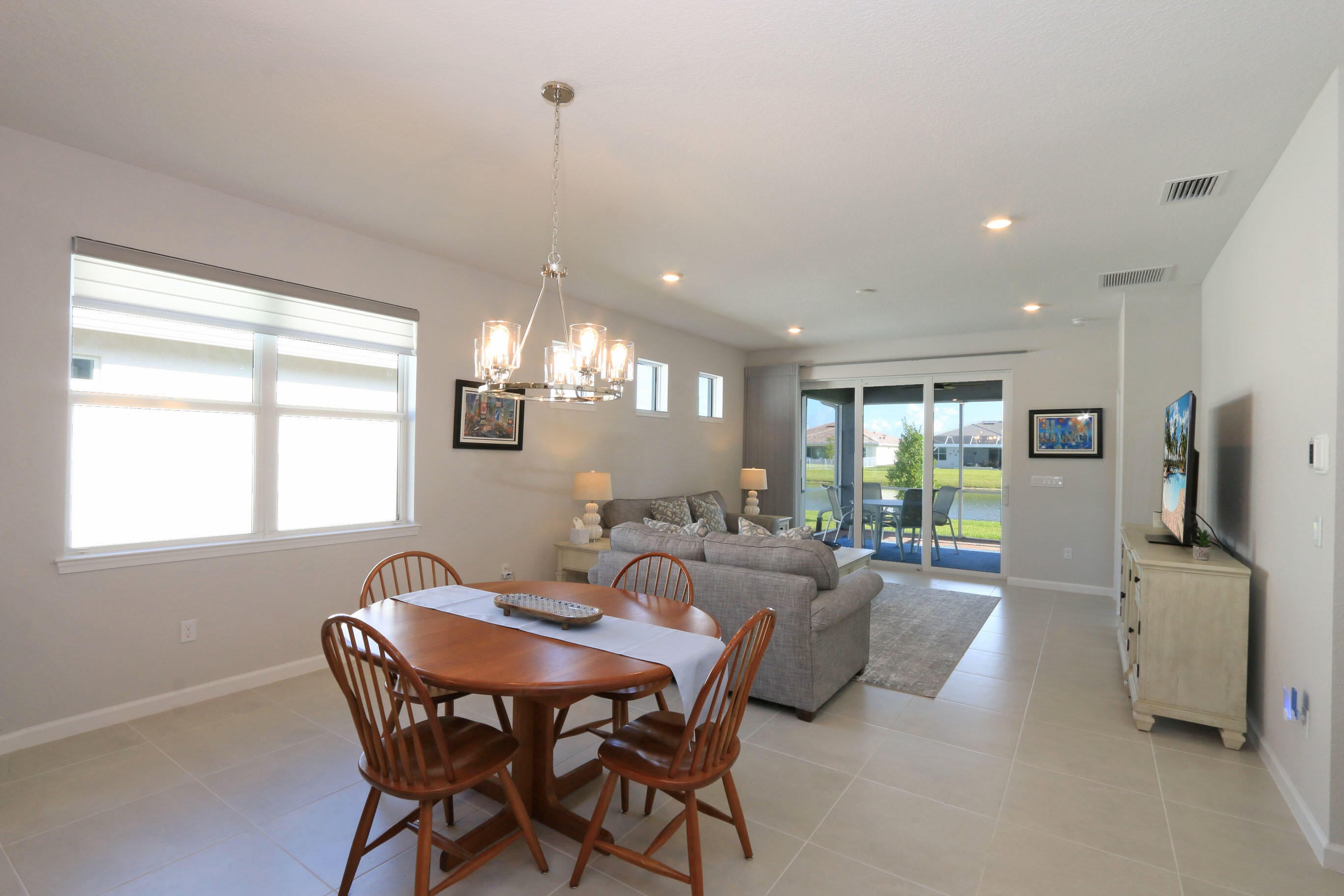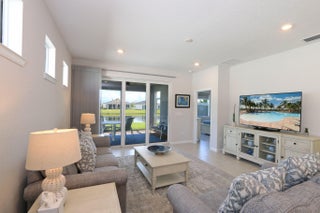 Discover luxurious living in this stunning waterfront villa located in the desirable Del Webb at Tradition community. This open and bright floor plan features beautiful tile flooring throughout and elegant quartz countertops. Enjoy custom, remote-operated window treatments that add both style and convenience.The split floor plan offers privacy and comfort, while the extended screened patio is perfect for relaxing or entertaining with breathtaking water views. Additional highlights include upgraded kitchen with Island, spacious two-car garage with a finished floor and premium finishes throughout.Experience resort-style living at its finest -- with the serene beauty of the water right outside your door. Active 55+ community .