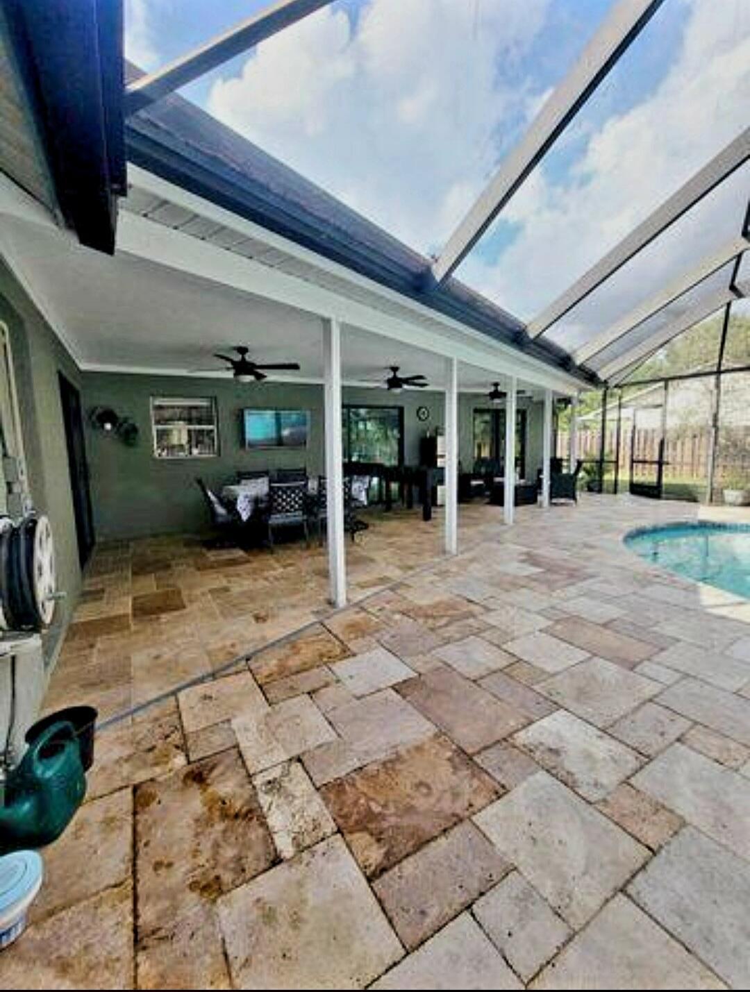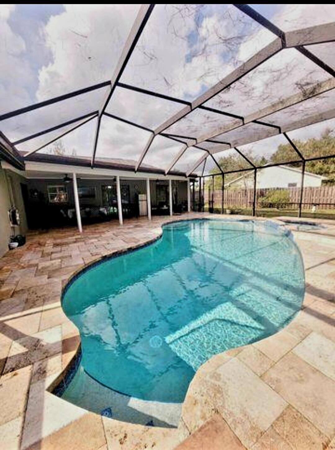 Welcome to your paradise retreat! This 3-bed, 2-bath Lovely CBS Pool Rental Home on over 1/3rd of an acre is a modern haven. Remodeled with pristine white tile flooring throughout, stainless steel appliances, it blends luxury and practicality. The screened 41' x 34' pool area is an entertainer's dream, with solar heating, a rescreened enclosure, and a slip-resistant deck. The Master Bath boasts a granite & mahogany vanity, dual sinks, and a spa-like shower. Large pocket sliding doors connect indoor and outdoor spaces seamlessly. The inside laundry room and 2-car garage add convenience. Located near St. Lucie West and Traditions, enjoy fine dining, shopping, and cultural events. With easy access to beaches, I-95, Florida Turnpike, and major cities.