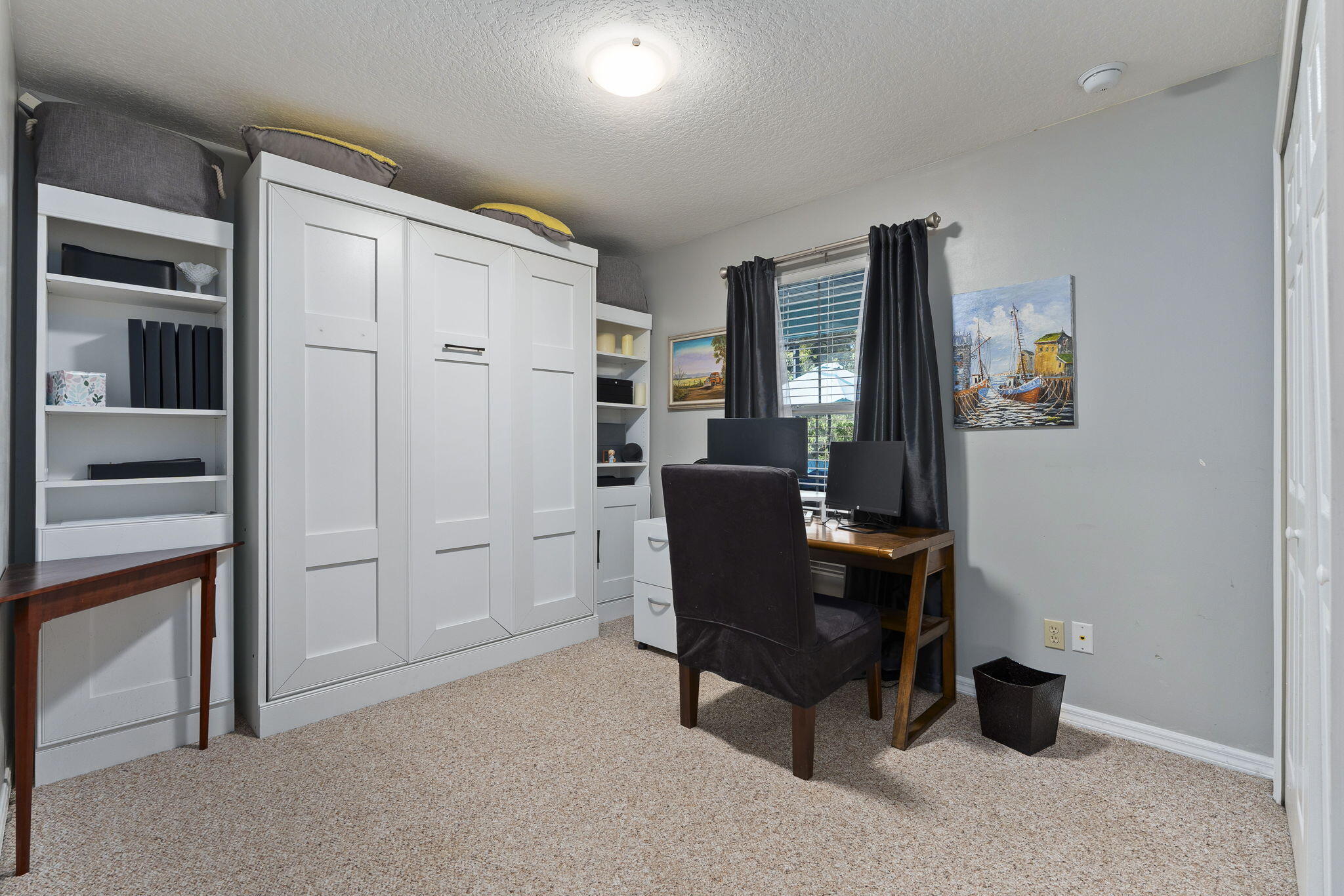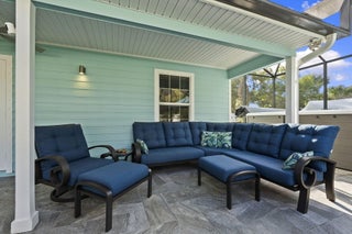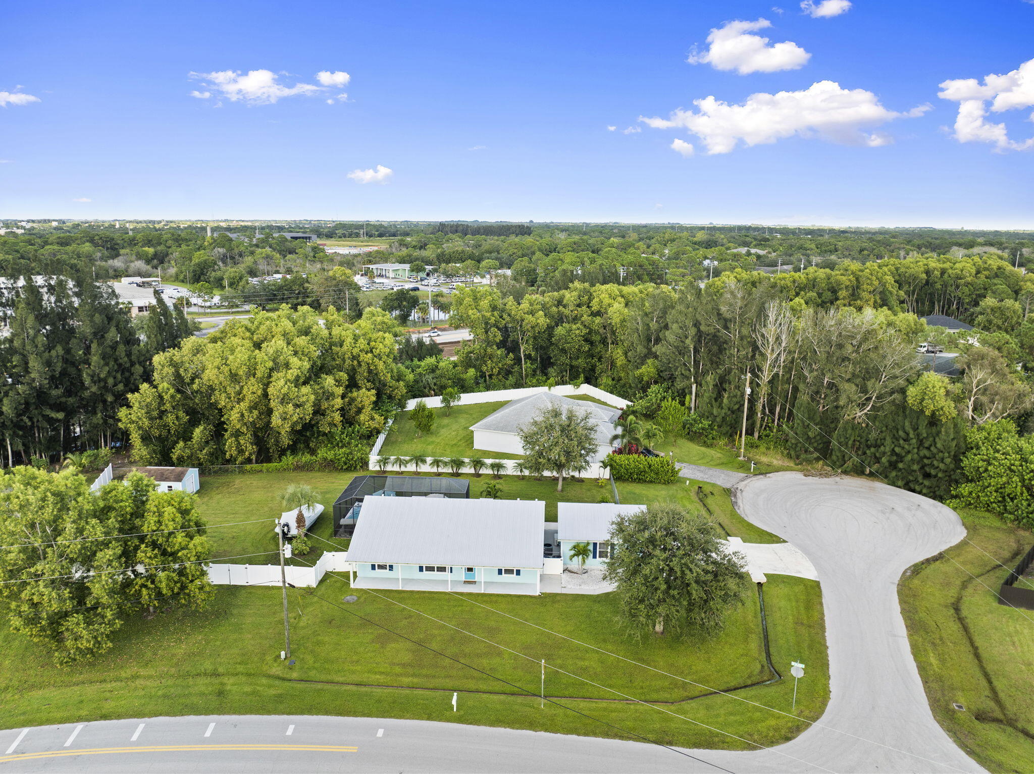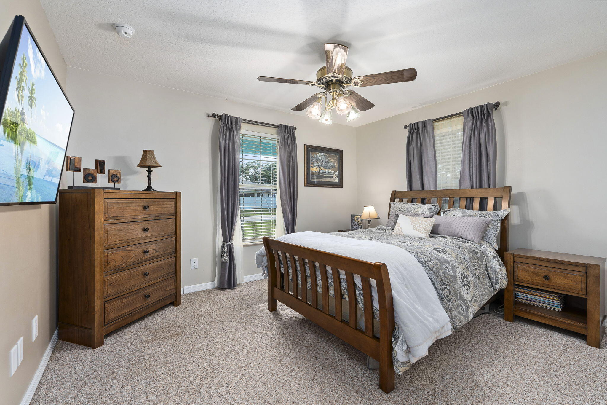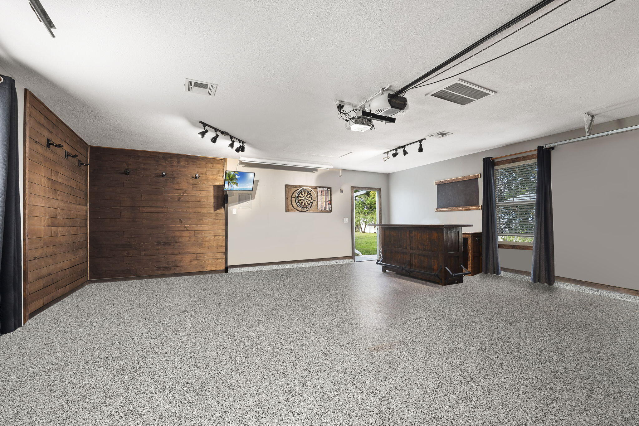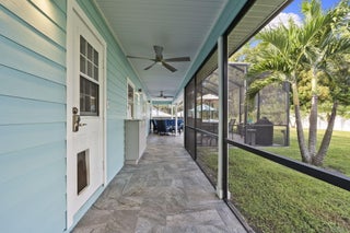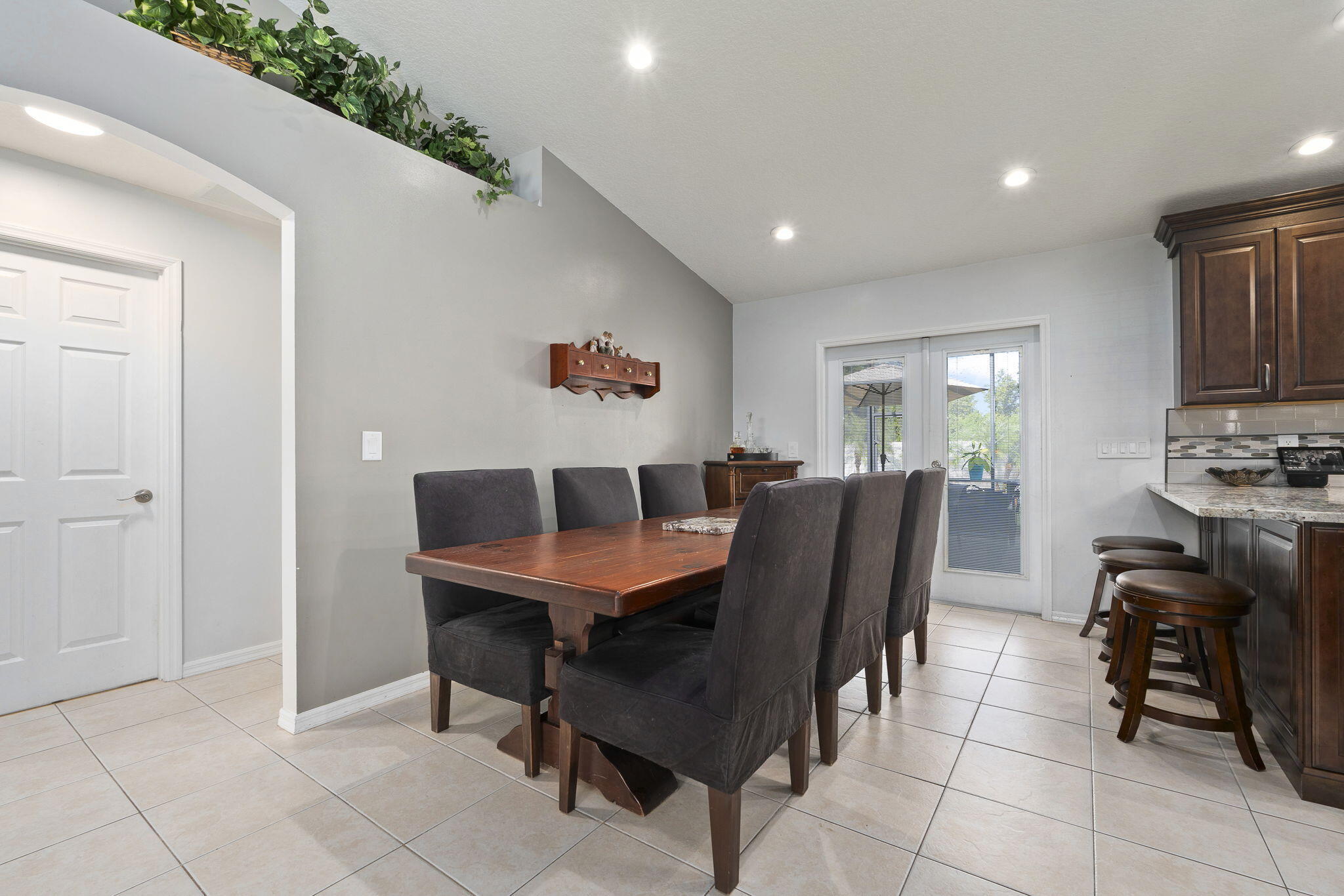 Welcome to a home that blends Florida charm with thoughtful upgrades and a ranch-style retreat set on a rare 0.57-acre double lot with, Hardie board siding, and a metal roof, this home was designed for both energy efficiency and lasting quality.Step inside to vaulted ceilings and a bright, open floor plan. Tile flows throughout the main living spaces, and primary bedroom, while two guest bedrooms feature carpet. The kitchen offers dark wood cabinetry, granite countertops, a breakfast bar with seating for three, and stainless Samsung appliances perfectly designed for cooking, entertaining, or gathering with family.The primary bedroom includes a spacious walk-in closet, a large vanity, and an walk-in shower. The two additional bedrooms provide flexibility for guests, a home office, or creative space. The air-conditioned garage is more than parking. with epoxy floors and a built-in bar, it doubles as an entertainment hub or flex hangout while still accommodating cars. Outdoors, the oversized lot is fully cleared and fenced with a mix of white privacy fencing and chain link where it counts, accented by oak, willow, and palm trees. A French door off the dining area leads to the expansive screened patio, where a swim spa and hot tub (included) create your own private retreat. Positioned at the entry to a cul-de-sac, the property offers both accessibility and privacy while keeping you close to schools, shopping, dining, I-95, and the Turnpike. This isn't just a house it's a lifestyle property that combines space, upgrades, and Florida living.