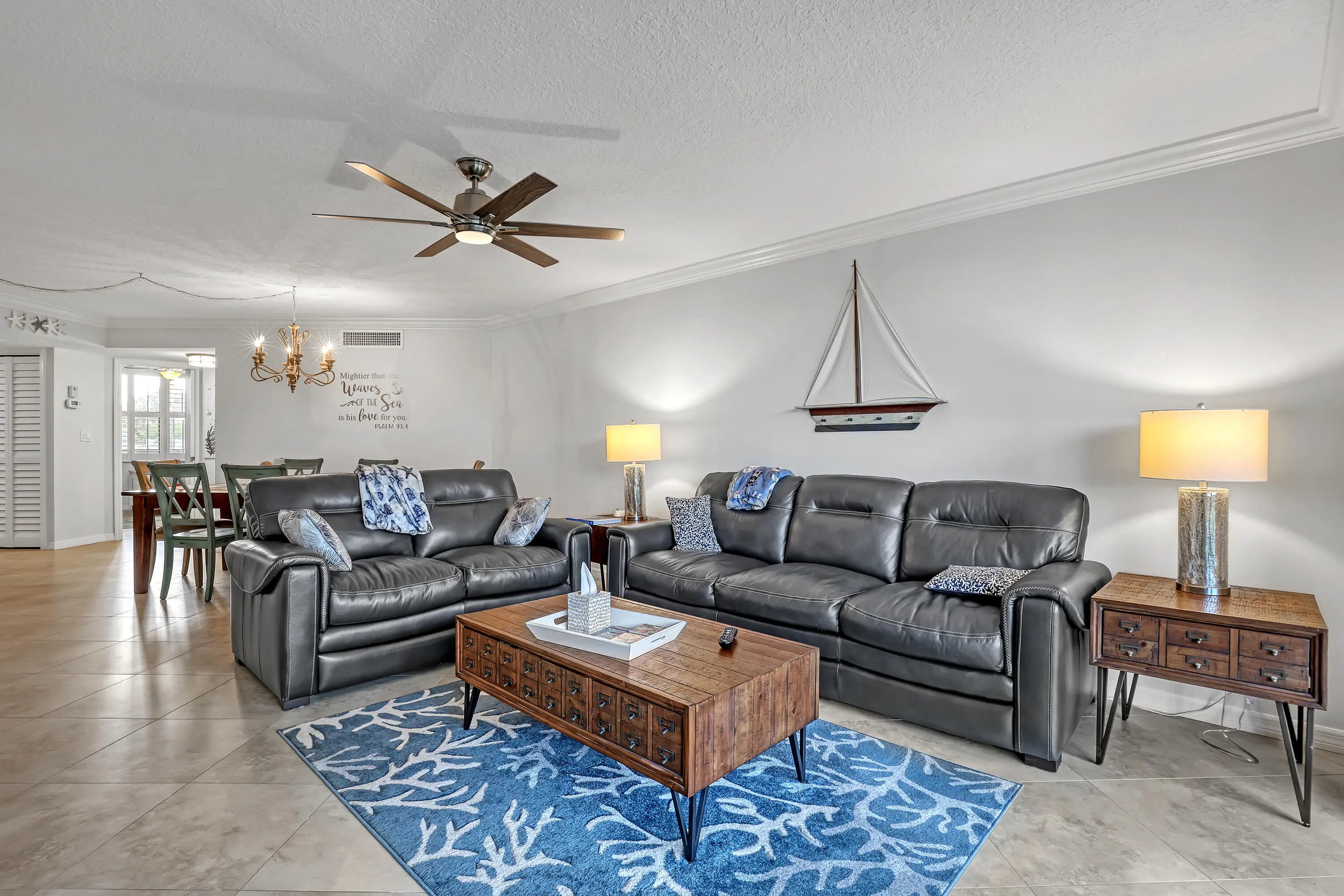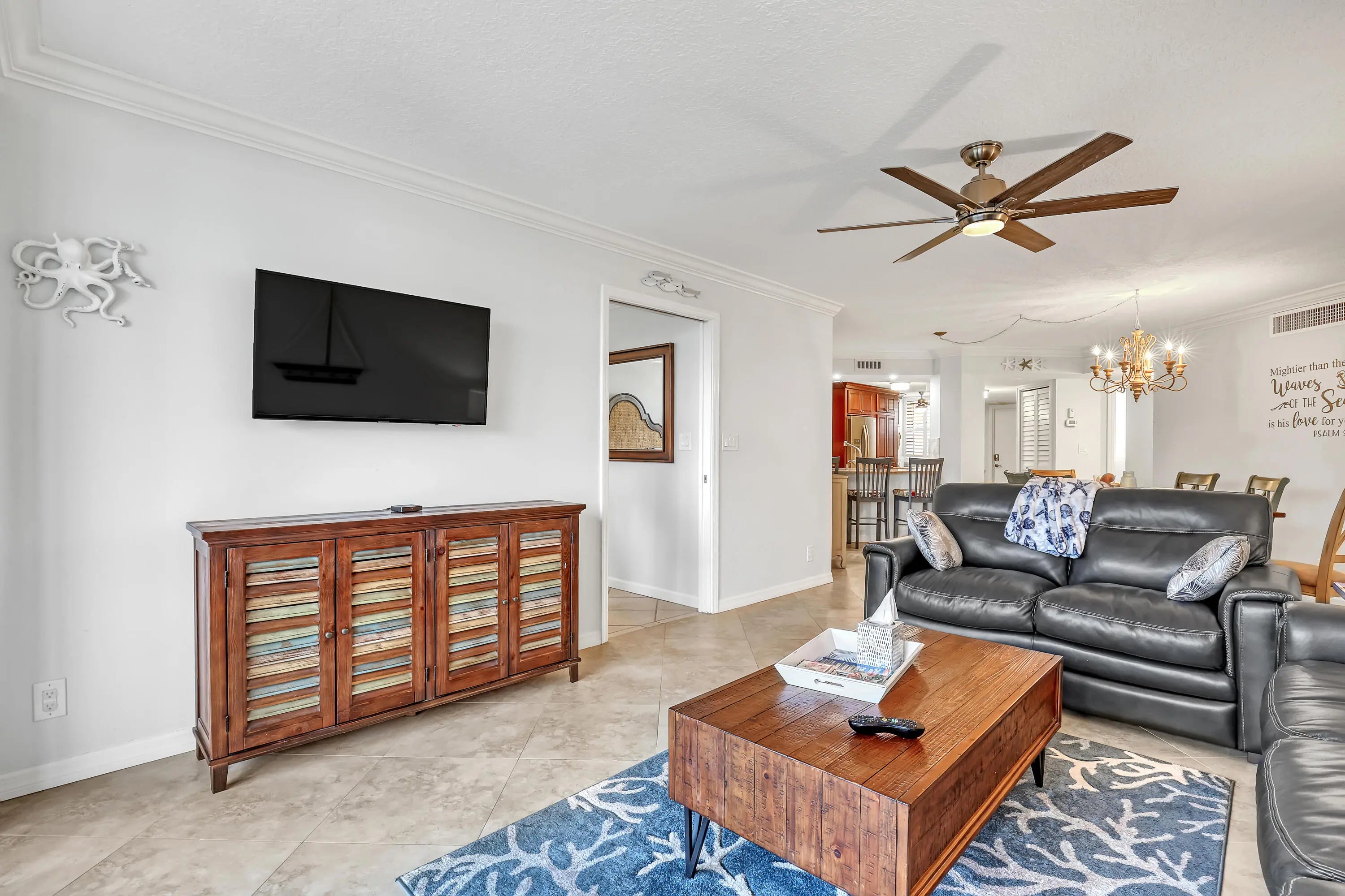 SOAK UP THE SUN IN THIS RENOVATED OCEANFRONT CONDO IN JENSEN BEACH! $5000/mo 2026-2027 SEASON. 3 month minimum $4000/mo for OFF-SEASON. This updated condo boasts a fully tiled split floor plan, remodeled bathrooms featuring pebble flooring in showers, Smart TV's in the primary & great room, Fans in every room, plantation shutters for a lot of natural light or privacy! Plenty of seating including a new sofa, the dining area & kitchen bar. The renovated kitchen has SS alliances & a new washer/dryer. 1st floor offers the luxury of easy access to the heated community pools, spa & of course direct access to your own beach!! Islandia is a social building w/ manned guard, tennis, pickle ball, gym, billiards & more. Walk to Shuckers,Nettles & Surfside dining! RESERVE NOW FOR next season!