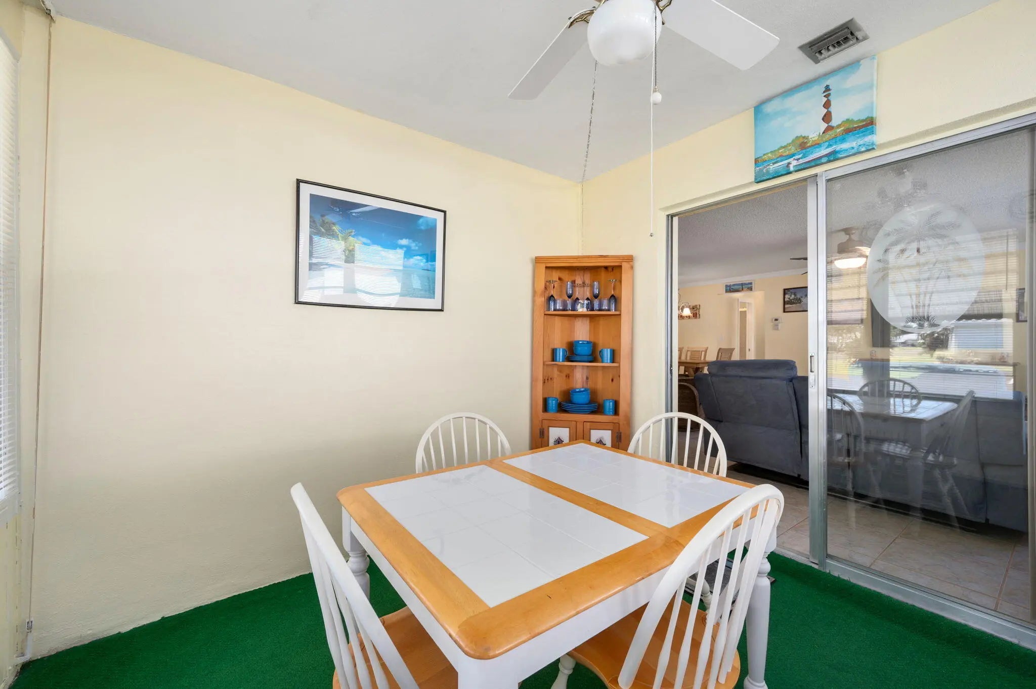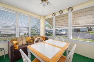 Light & Bright furnished corner unit that is close to POOL & Club House. Tile floors in living areas, indoor/outdoor carpet in FL RM, & carpet in bedrooms. Crown molding throughout, FL RM has AC vent therefore is including in total living area. Electric panel has been changed. Kitchen equipped with all major appliances & features newer Formica counters. Sellers installed additional storage cabinets in Guest Bedroom. AC new in 2016; water pipes are PVC through attic. Accordion shutters on all windows except for front FL RM window which had been changed. Disappearing screen doors on front & back doors. Open Patio with outdoor furniture + grill. Unit is situated on the most western street of HP therefore a canal at the back of the unit. Perfect Seasonal Home & priced to sell quick, Call Now