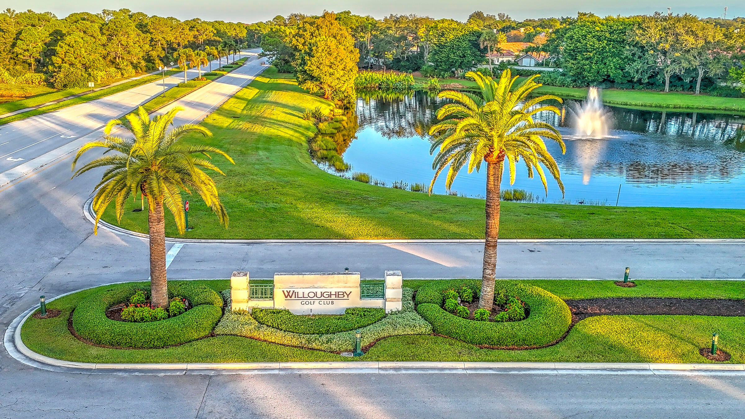 Luxury lakeside living awaits in this 5BR, 3 full & 2 half bath home in prestigious Willoughby Golf Club. All impact glass & doors. Main level features a spacious primary suite, 2 guest rooms w/ Jack & Jill bath, office w/ closet (possible 6th BR), living rm w/ gas fireplace, great rm w/ cabana bath opening to lanai & grill area, dining rm, breakfast nook, and kitchen w/ double wall ovens, island, prep sink & 2nd DW. Elegant wood & tile floors flow throughout. Upstairs offers 2 more BRs, full bath & private balcony overlooking the lake & pool. Enjoy resort-style amenities--golf, tennis, pickleball & more. Minutes from downtown Stuart's dining, boutiques & farmers market.