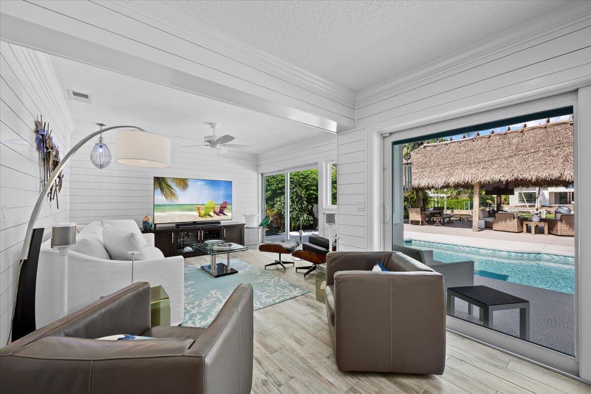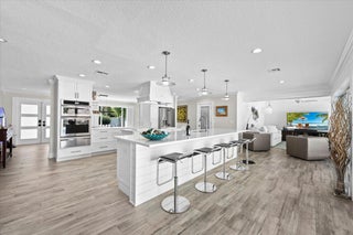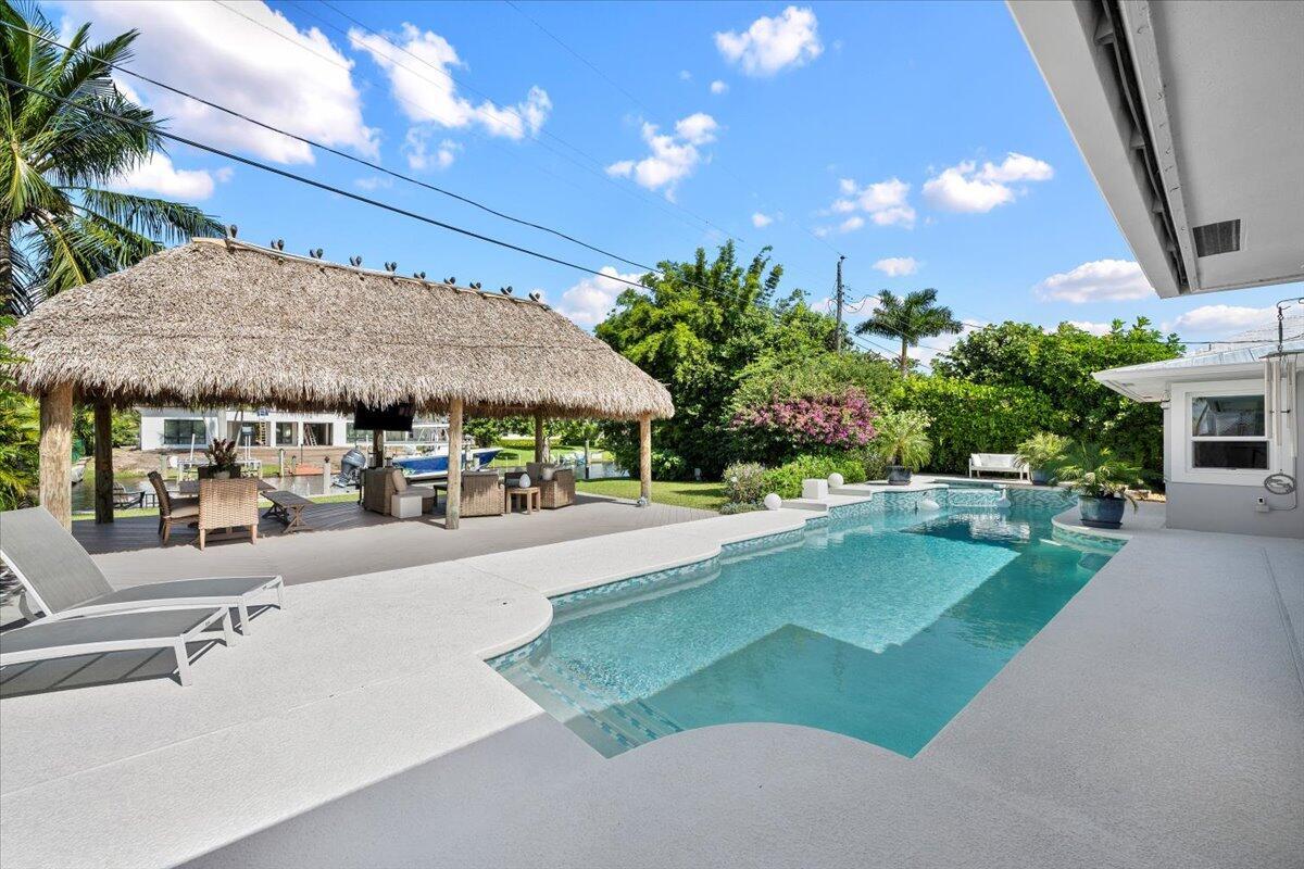 Waterfront paradise Awaits! Escape to your beautiful renovated home featuring a 52' boat dock/1416 lift, pool, tiki hut and minutes from downtown Stuart. The open-concept, 3 bedroom 2.5 bath floor plan is designed for entertainment. Gourmet kitchen and appliances with quartz and thermador wine cooler. Unattached bonus office. Impact windows and doors with 2020 metal roof.