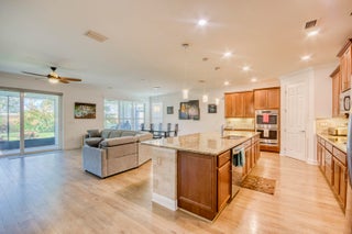 Step into this like new meticulously maintained home in the highly sought after 55+ community of Vitalia at Tradition. Prepare to be dazzled with the many upgrades that this beautiful home offers. This home features CBS Construction with hurricane impact windows and doors for total safety and comfort. This 3 bed 2 bath beauty features a large covered patio overlooking your private fenced backyard that has been beautifully landscaped.The gourmet kitchen is a chef's dream, featuring premium stainless-steel appliances, including double wall ovens and a sleek cooktop, complemented by granite countertops and abundant cabinetry. The primary suite serves as a private retreat, complete with a generous walk-in closet and a spa-inspired en-suite bathroom showcasing dual vanitiesand a glass-enclosed shower. Two additional bedrooms offer versatility and comfort for family, guests, or a home office, sharing a well-appointed full bath. There's also a brand new AC & Water Heater! The 24,000 square foot Captiva Club, a cutting-edge clubhouse with an array of amenities, is the focal point of Vitalia. In addition to enjoying the heated resort-style pool and spa hot tub, residents may remain in shape at the state-of-the-art fitness center. There are many possibilities to socialize in the game room, billiards area, and community room. The pickleball, tennis, bocce ball, basketball, and shuffleboard courts, as well as the picnic area, are sure to please outdoor enthusiasts. There's always something going on at Vitalia to keep residents interested and entertained, thanks to a full-time activities director and a comprehensive list of resident clubs.