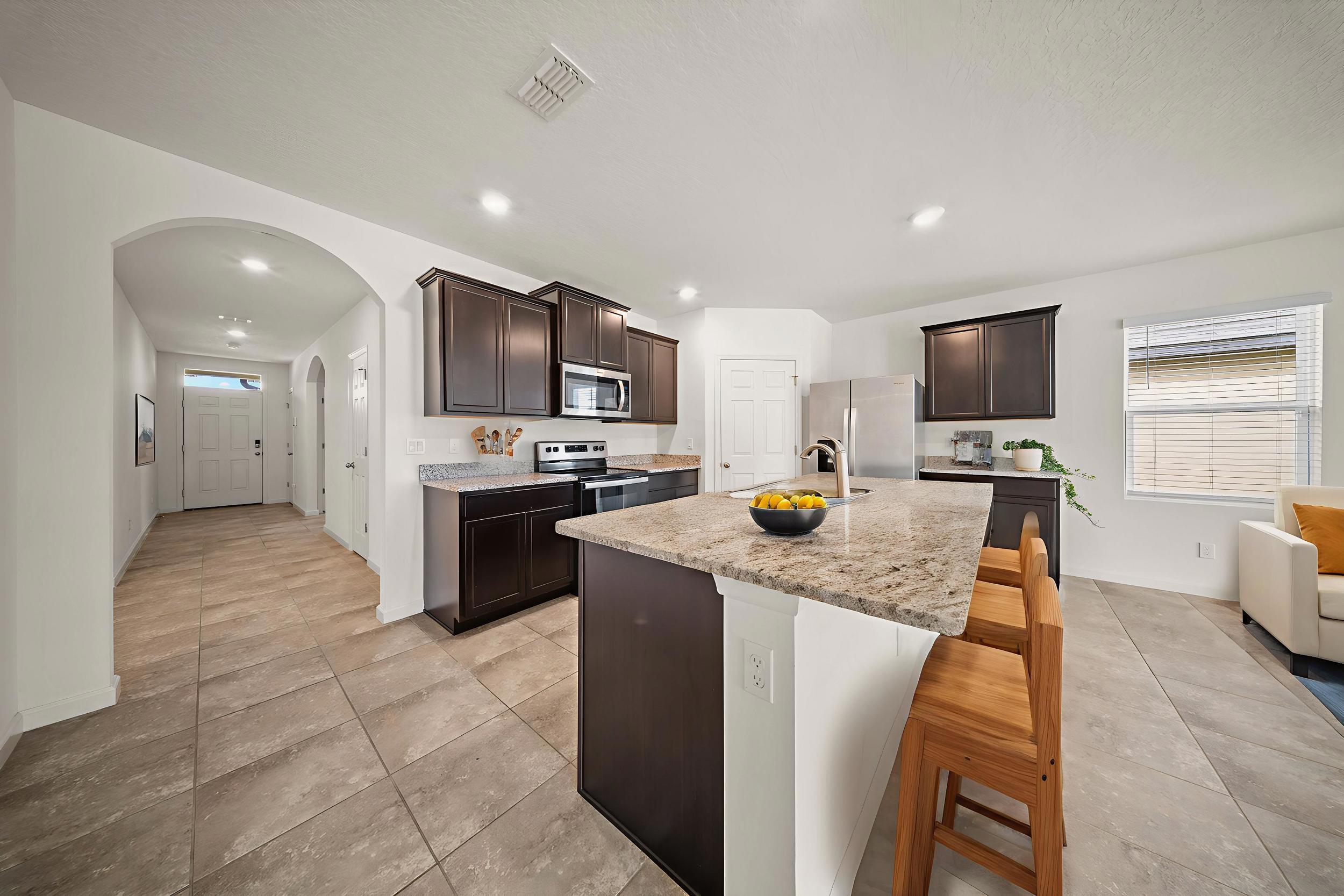Beautifully maintained 4BR/2BA home with a 2-car garage in the highly desirable gated community of The Preserve at St. Andrews in Port Saint Lucie! This move-in-ready residence offers exceptional curb appeal with new sod in the front yard, freshly installed gutters, and meticulous landscaping maintained effortlessly with a sprinkler system. Inside, you'll find a bright open-concept layout with spacious living areas, a modern kitchen, and generous bedrooms designed for comfort and functionality. The community features resort-style amenities including a clubhouse, pool, fitness center, and well-kept common areas. Conveniently located near I-95, shopping, dining, and top-rated schools. This home is well-maintained and ready for its next owner!