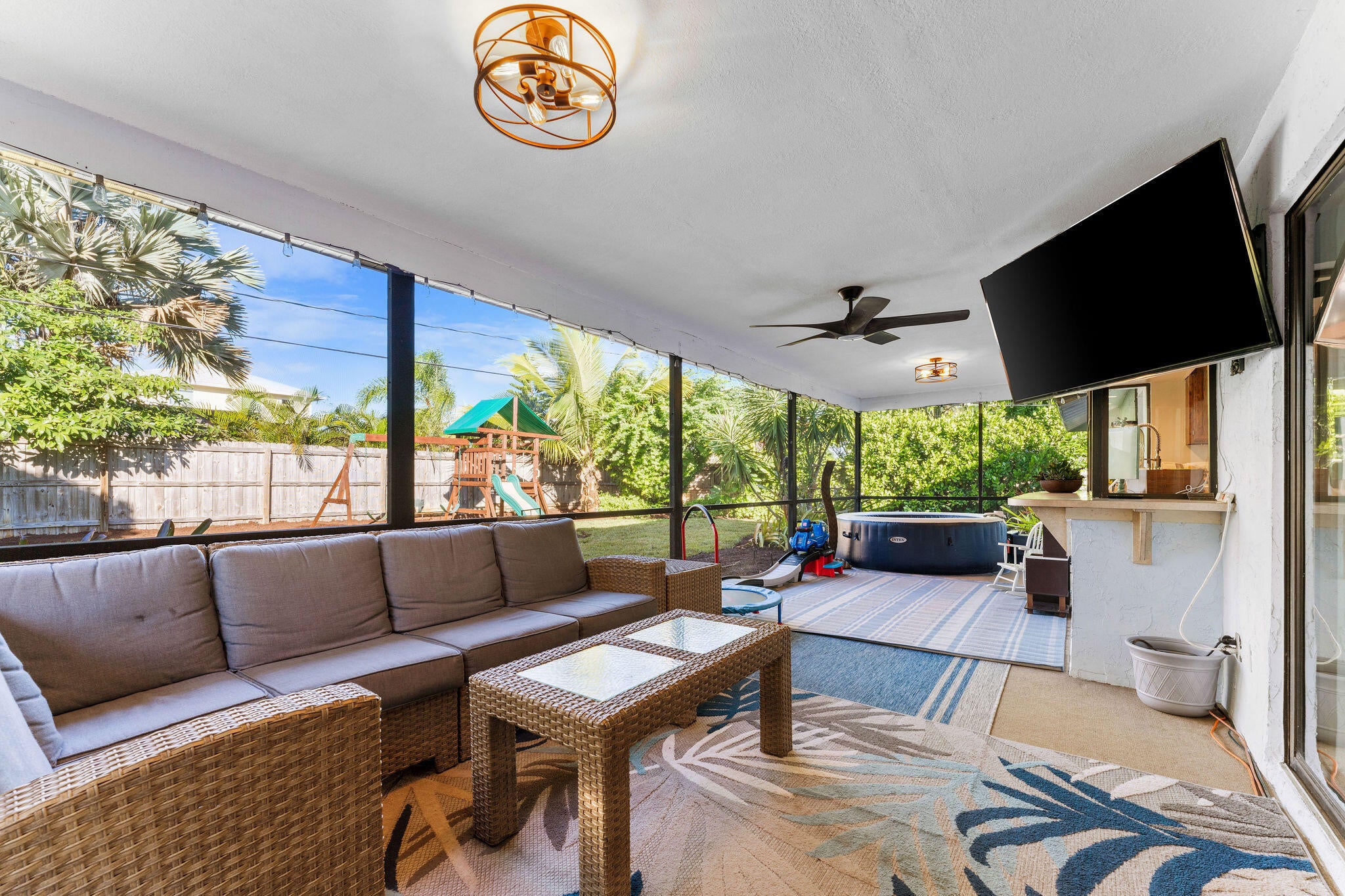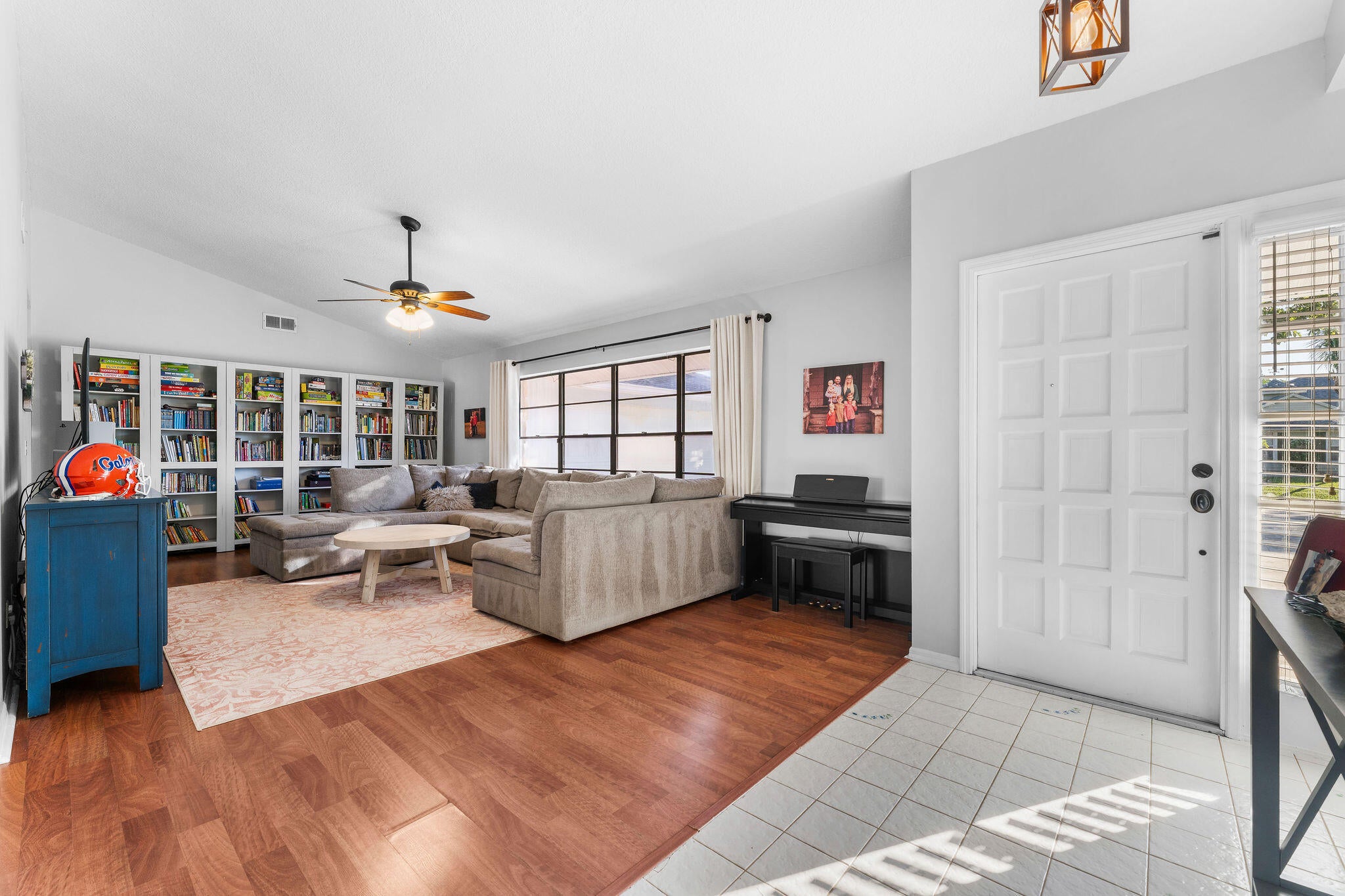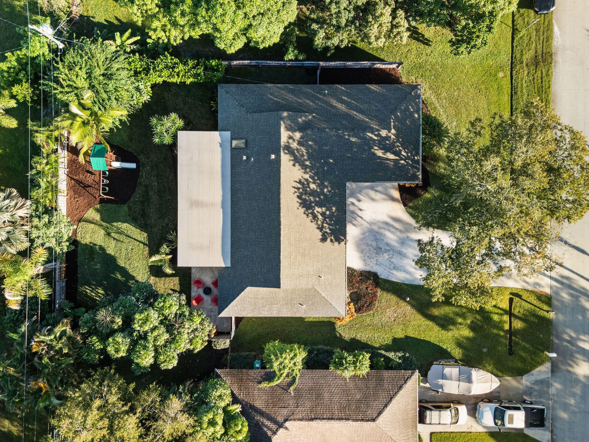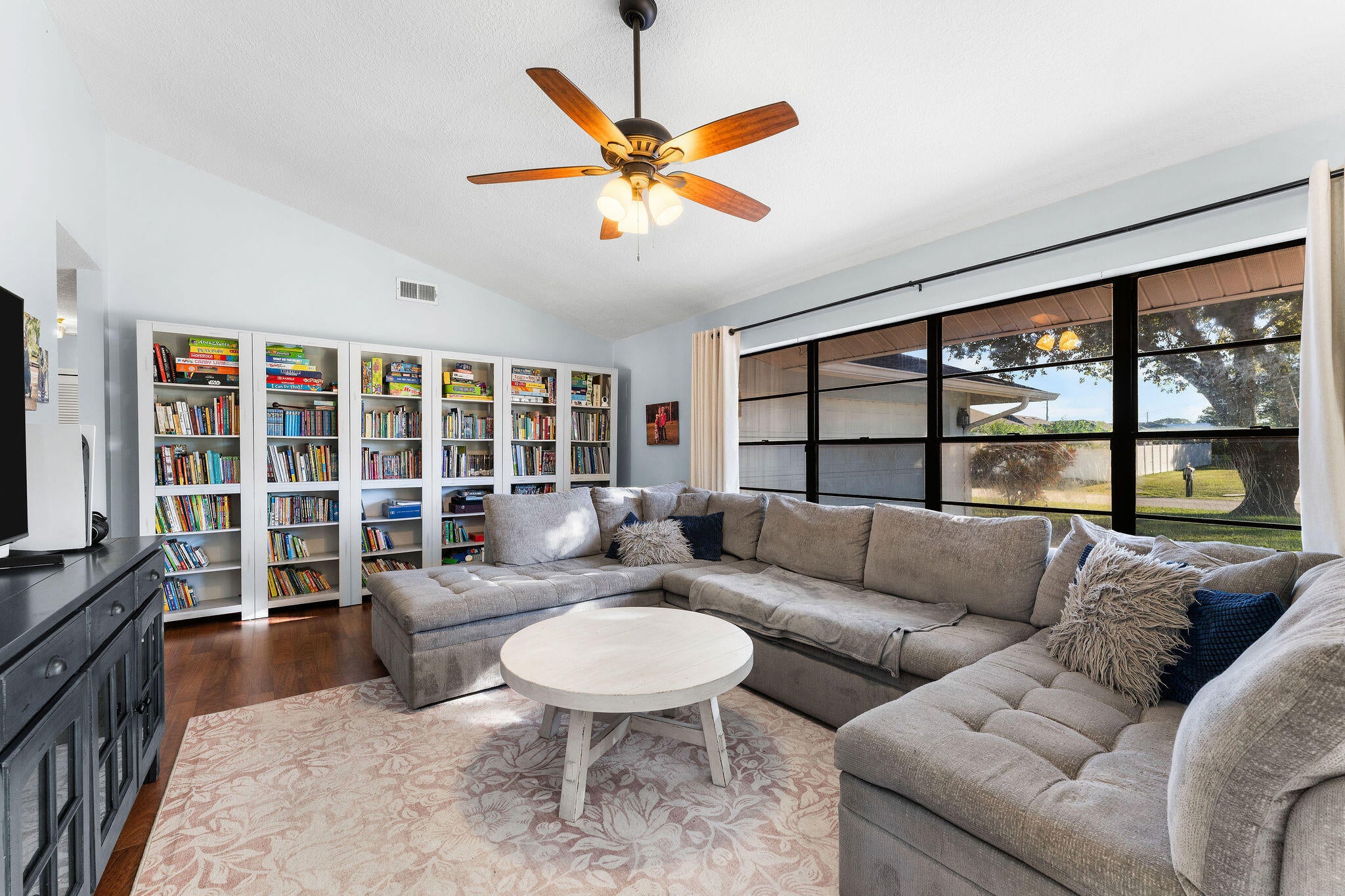 Move-in ready, solidly built CBS home with a newer roof (2024) in central Port St. Lucie! This 3-bedroom, 2-bath home offers a bright, open layout with vaulted ceilings and skylights, and a functional split floor plan. The open kitchen connects to both the family and dining rooms, creating a great flow for everyday living. Quadruple sliding glass doors open to a large screened lanai and fenced backyard - perfect for pets or outdoor entertaining. Additional highlights include professional tropical landscaping, cedar swing playset, side-load garage, and tasteful stonework on the exterior. Centrally located near shopping, hospitals, and major thoroughfares for easy commuting to Tradition, St. Lucie West, and the beaches. Schedule a showing today to see this beautiful home in person!