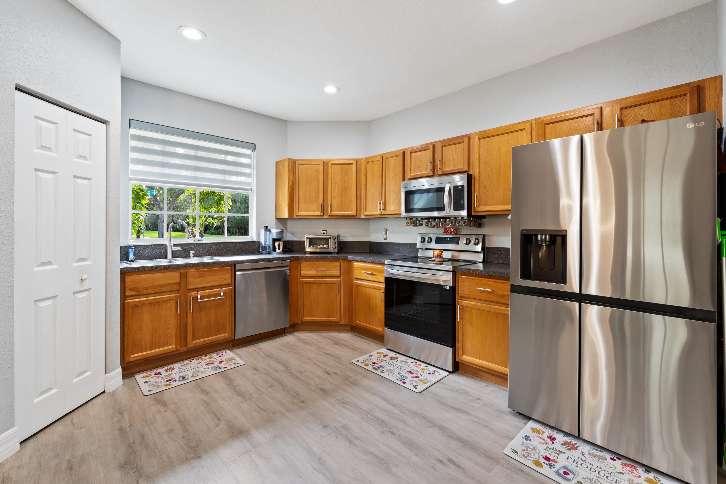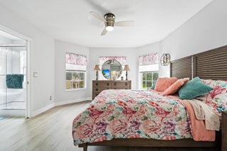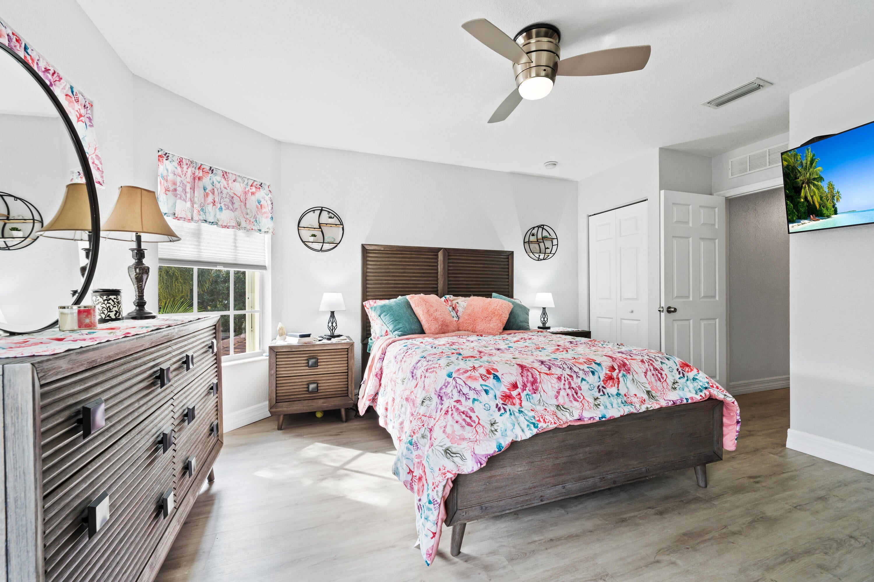 SHOWS LIKE A MODEL WITH MANY RECENT UPDATES AND UPGRADES ! EAST LAKE VILLAGE'S MOST DESIRABLE LOCATION DIRECTLY NEXT TO A LARGE PRISTINE LAKE AND PARK ! SINGLE FAMILY TWO STORY 3 BEDROOMS / 2.5 BATHS / 2 CAR GARAGE. SPACIOUS FLOOR PLAN ! 1st floor an open concept with kitchen and living area/dining with volume ceiling. Slider opens onto a covered wraparound patio. 2nd floor has 3 bedrooms, 2 private baths and laundry/utility room. Master suite has a bay window, large walk-in closet and updated bath with double sinks and shower. Newer updates include roof (2024), A/C (2024) hot water heater (2024), light fixtures, laminate floors throughout, bathroom quartz countertop cabinets. ELV community has heated swimming pool, lakes & park areas, sidewalks, streetlights, and underground utilities,A very short walk to the adjacent beautiful unspoiled 56 acre Woodstork Trail / Hillmoor Lake Park with a very large lake ( great for walking, jogging, exercising, picnicking, etc. or just enjoying Florida's beautiful nature & wildlife ). CENTRAL LOCATION in Port St. Lucie East of US 1 is just minutes from the Crosstown Parkway ( US 1 to I-95 ), HCA Florida St. Lucie Hospital & medical facilities, Port St. Lucie Downtown Center, Treasure Coast Mall, restaurants and Hutchinson Island's beautiful Atlantic Ocean beaches.