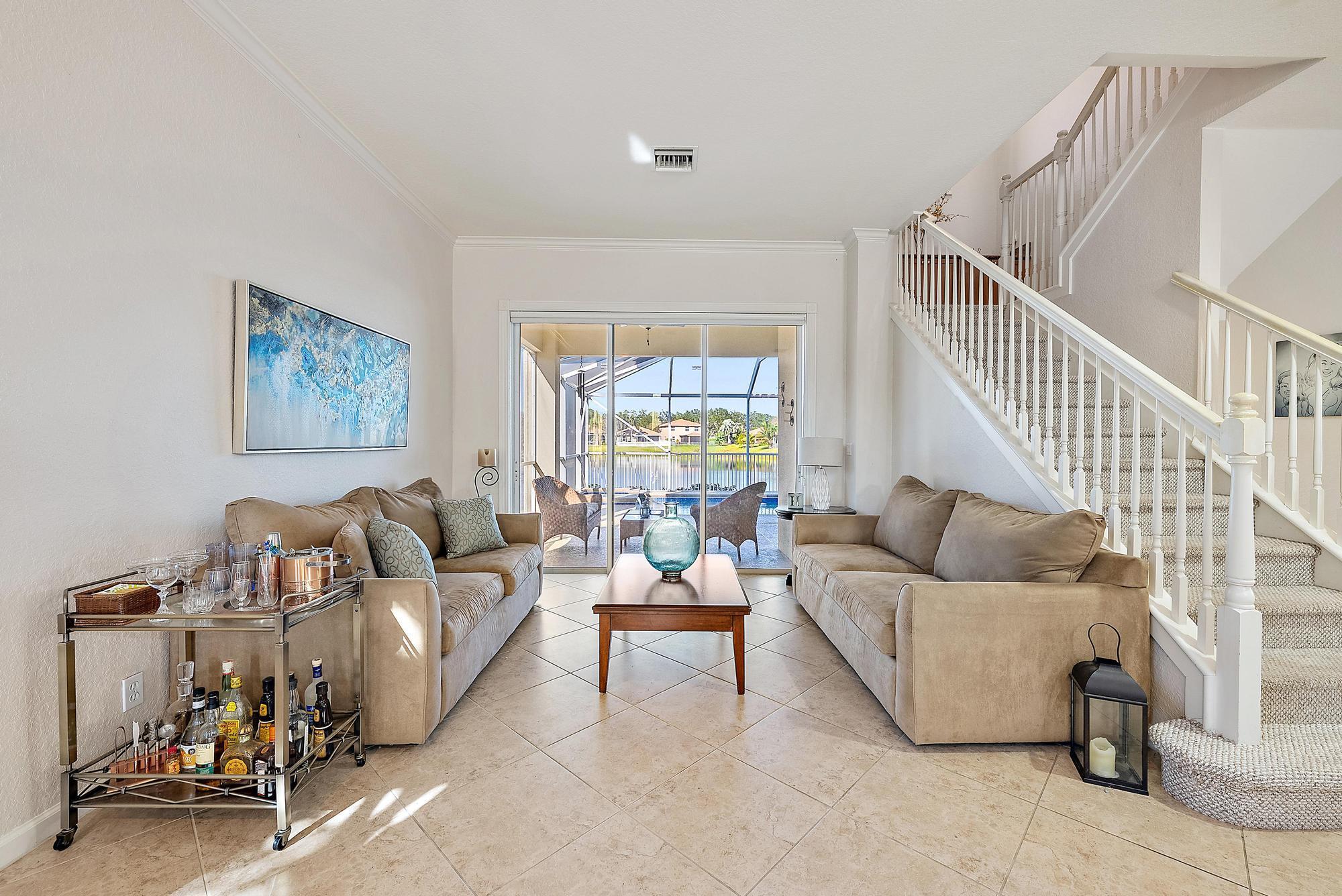 Discover this rare GEM in River Marina Estates, a beautiful 5-bedroom, 4-bath pool home with a 3-car garage. Designed with comfort and style in mind, this spacious residence showcases elegant finishes throughout. As you step through the covered entry, you're greeted by a bright and open layout perfect for both family living and entertaining. A formal living room flows seamlessly into the dining area. The heart of the home boasts a gourmet kitchen, features granite countertops, stainless steel appliances, maple cabinetry, a chef's island with a sink, and a charming breakfast nook. The kitchen opens to a spacious family room with direct access to the covered patio and pool area, creating an ideal space for indoor-outdoor living. A full bath conveniently serves the pool and main floor. The primary suite is a private sanctuary, featuring a balcony that overlooks the tranquil lake, perfect for enjoying breathtaking sunrises or sunsets. Step outside to your own backyard oasis, where a solar-heated and screened pool invites you to relax or entertain in style. The fully fenced yard, bordered by lush hedges, offers exceptional privacy and serenity. One of the largest lots in River Marina! Additional upgrades include convenient accordion shutters on the second floor for quick storm preparation and a 500-gallon buried propane tank, ideal for powering a generator, converting the kitchen range to gas for cooking, or adding an outdoor kitchen. Two new water heaters were recently installed. The spacious 3-car garage offers ample storage and is perfect for housing a golf cart or even a small boat, as many residents do. Beyond your backyard, the gated community offers resort-style amenities, including a clubhouse, fitness center, pool, tot lot, half-court basketball, and a day dock that provides access to the St. Lucie River. This community truly has it all!