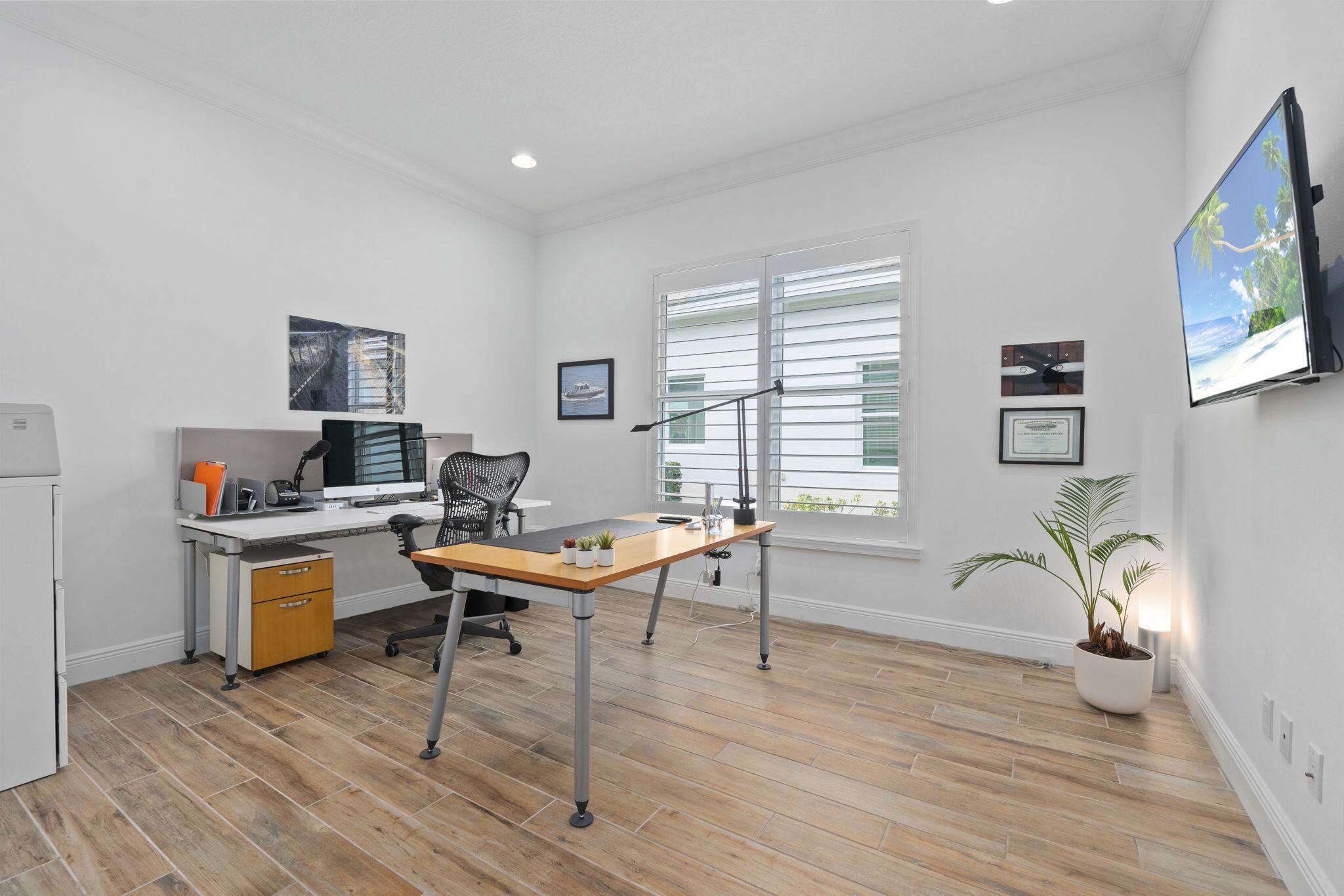 Lakefront pool home with impact windows, extensive designer upgrades throughout, 3BR/3BA + den/dining in Cresswind at PGA Verano.This CBS-built residence offers over 2,120 sq ft of open-concept living with volume ceilings, detailed millwork, and flexible space ideal for an office or formal dining. The upgraded chef's kitchen features premium cabinetry, high-end appliances, Ralph Lauren light fixtures, and a seamless flow into bright living and entertaining areas filled with natural light. Spacious bedrooms and beautifully upgraded bathrooms complete the interior. Step outside to your custom A&G heated saltwater pool with sundeck surrounded by lush landscaping and tranquil lake views--perfect for sunset relaxation and outdoor entertaining. Enjoy the award-winning lifestyle at ClubTalavera with resort pools, fitness and wellness centers, 27 pickleball courts, and an active social calendar. Convenient access to championship golf at PGA Golf Club and Aster Creek Club (limited memberships available).