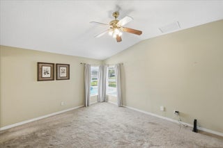 Beautifully maintained 3BR/2BA lakefront pool home in the desirable Hammock Cove at Sawgrass Lakes--now offering a $5,000 credit toward buyer closing costs! Enjoy peace of mind with a newer roof (2020), A/C (2019), and water heater. The spacious great-room layout features an eat-in kitchen, breakfast bar, and flexible dining/bonus area. Step out to the screened lanai overlooking lake views or relax in your private pool--perfect for entertaining or unwinding. The primary suite offers serene water views, while the attic provides 3/4'' plywood flooring for added storage. Low HOA includes cable, internet, clubhouse, fitness center, and community pool. Boat/RV storage available for just $300/year. Conveniently located near top-rated schools, shopping, and dining. Move-in ready, priced to sell!