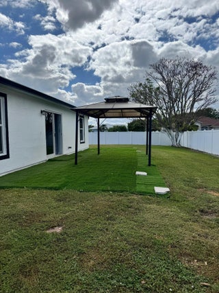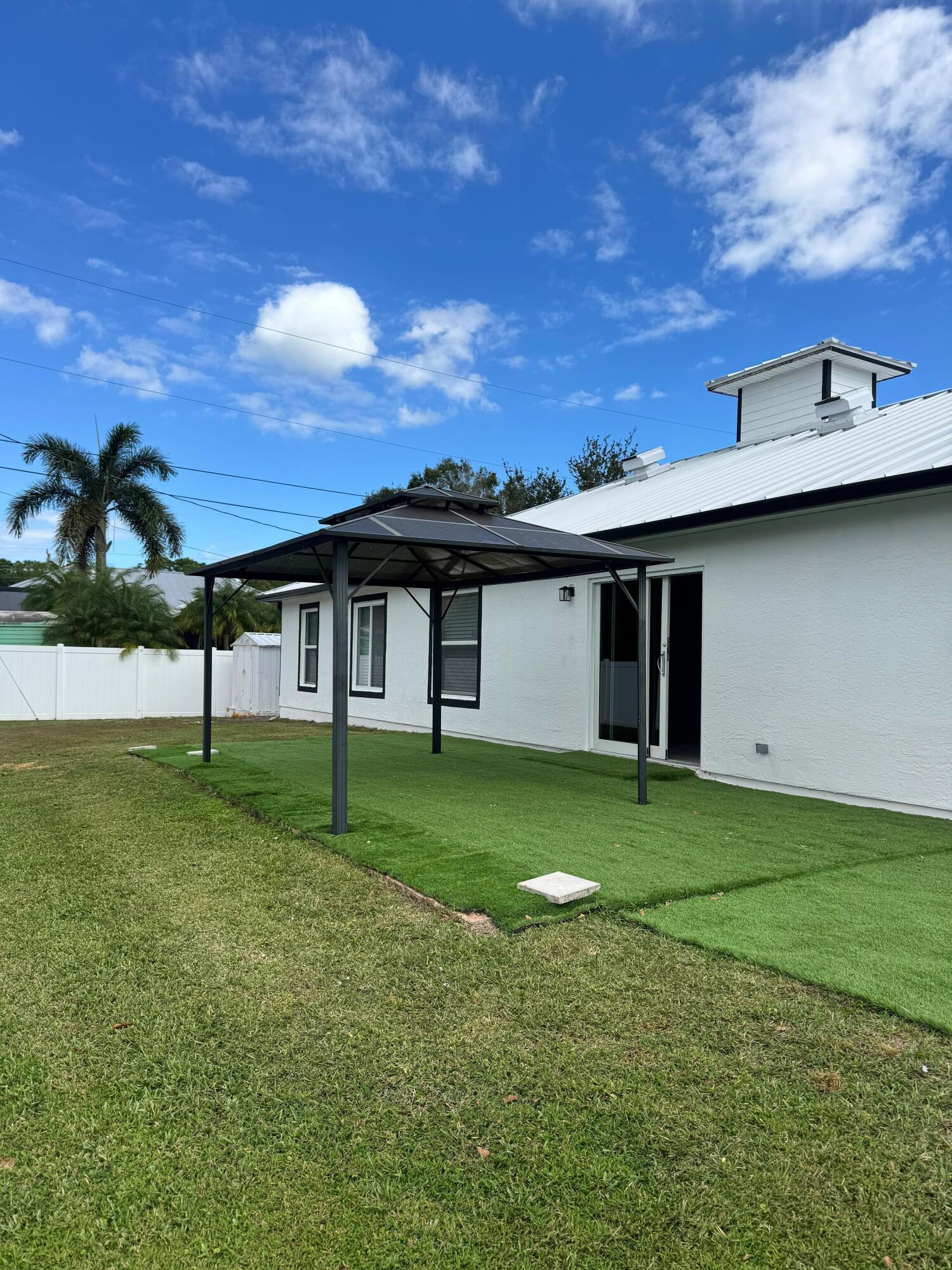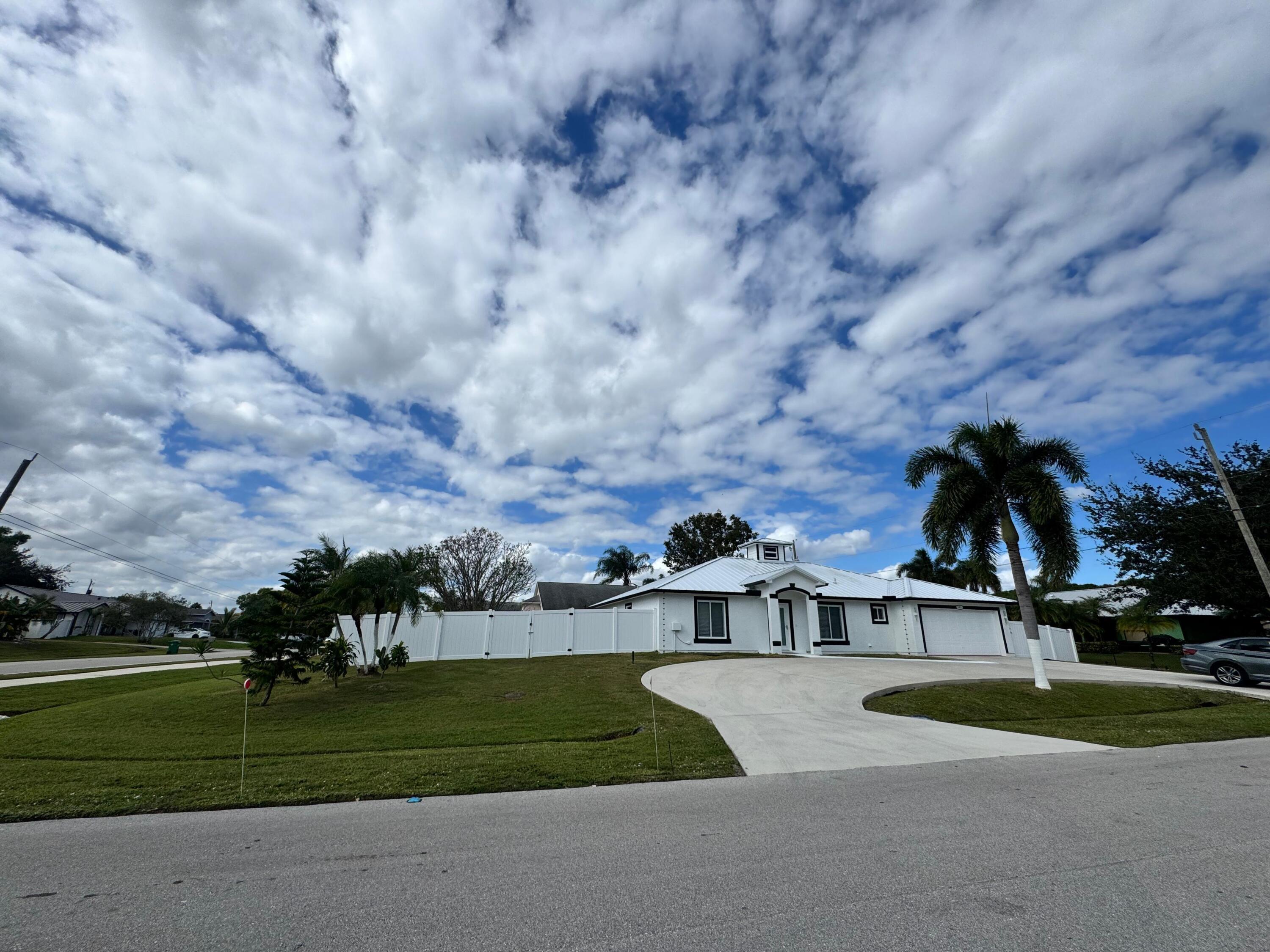 Stunning CBS home featuring three bedrooms and two bathrooms! Enjoy peace of mind with a brand-new standing seam metal roof. The home has been beautifully updated with a modern quartz kitchen, new flooring, upgraded bathrooms, fresh paint, updated fixtures, and more. The kitchen offers ample storage and a large pantry. The open layout includes a formal living room, dining room, and family room, with potential to easily convert into a fourth bedroom. The master suite is generously sized with an updated bathroom and a spacious walk-in closet. Additional features include a two-car garage, circular driveway, and a fully fenced corner lot. Prime location close to shopping, top-rated schools, and St. Lucie West.