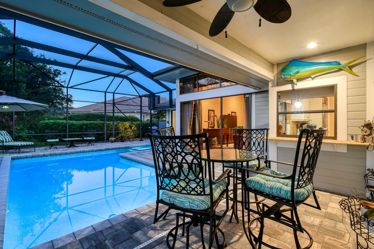 Imagine stepping into a world where luxury meets comfort - Welcome to the Argosy Model in Mariner Village at Harbour Ridge Yacht & Country Club. As you arrive, the first thing that captures your attention is the beautifully landscaped yard surrounding the property. Spanning 0.36 acres, the lush greenery invites you in, hinting at the tranquility that awaits inside. Entering through the elegant glass front doors, you are greeted by a warm and inviting atmosphere. The spacious 3,051 sq ft of living space unfolds before you. Showcasing 3 generously sized bedrooms, each with their own ensuite baths, in addition to a home office, as well as a half bath to service the main living areas. Each room is filled with natural light, including the kitchen which is the heart of the home, as itprovides modern day conveniences as well as easy access to all living areas as well as a custom bar that's perfect for entertaining your guests. Step outside, and you'll find your personal oasis. The private pool and spa, surrounded by an extended patio and screened lanai, offer a serene retreat for relaxation. Imagine sunny afternoons spent lounging by the water or hosting lively barbecues in your outdoor kitchen and grill, complete with an outdoor TV for those game day gatherings. The landscape lighting sets the mood, transforming your backyard into a magical space for evening enjoyment. As the sun sets, motorized sun shades on the patio provide the perfect balance of comfort and shade, allowing you to enjoy the outdoors day or night. The air-conditioned garage adds another layer of convenience, keeping your vehicles cool and comfortable. Located within walking distance of the clubhouse, marinas, golf courses and practice facilities, in addition to the 2-mile waterfront nature trail, this home provides easy access for all your day-to-day club experiences. Harbour Ridge is one of the most premier private club memberships in all of South Florida, which offers luxurious amenities for all of their members. Whether you enjoy golf, boating, kayaking, paddle boarding, fitness, tennis, pickleball, dining, bird watching, or embracing the natural surrounds of a Certified Audubon Cooperative Sanctuary, Harbour Ridge offers something for everyone. The club also prides themselves by providing their membership an unparalleled level of personalized service across all amenity venues to ensure the highest level of membership experiences throughout the club and community.