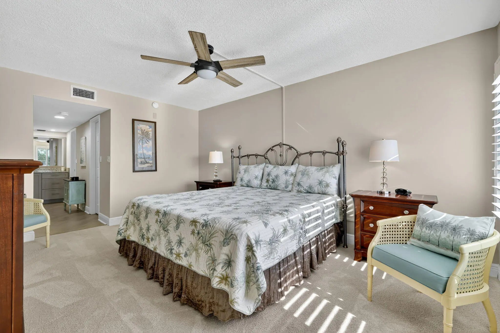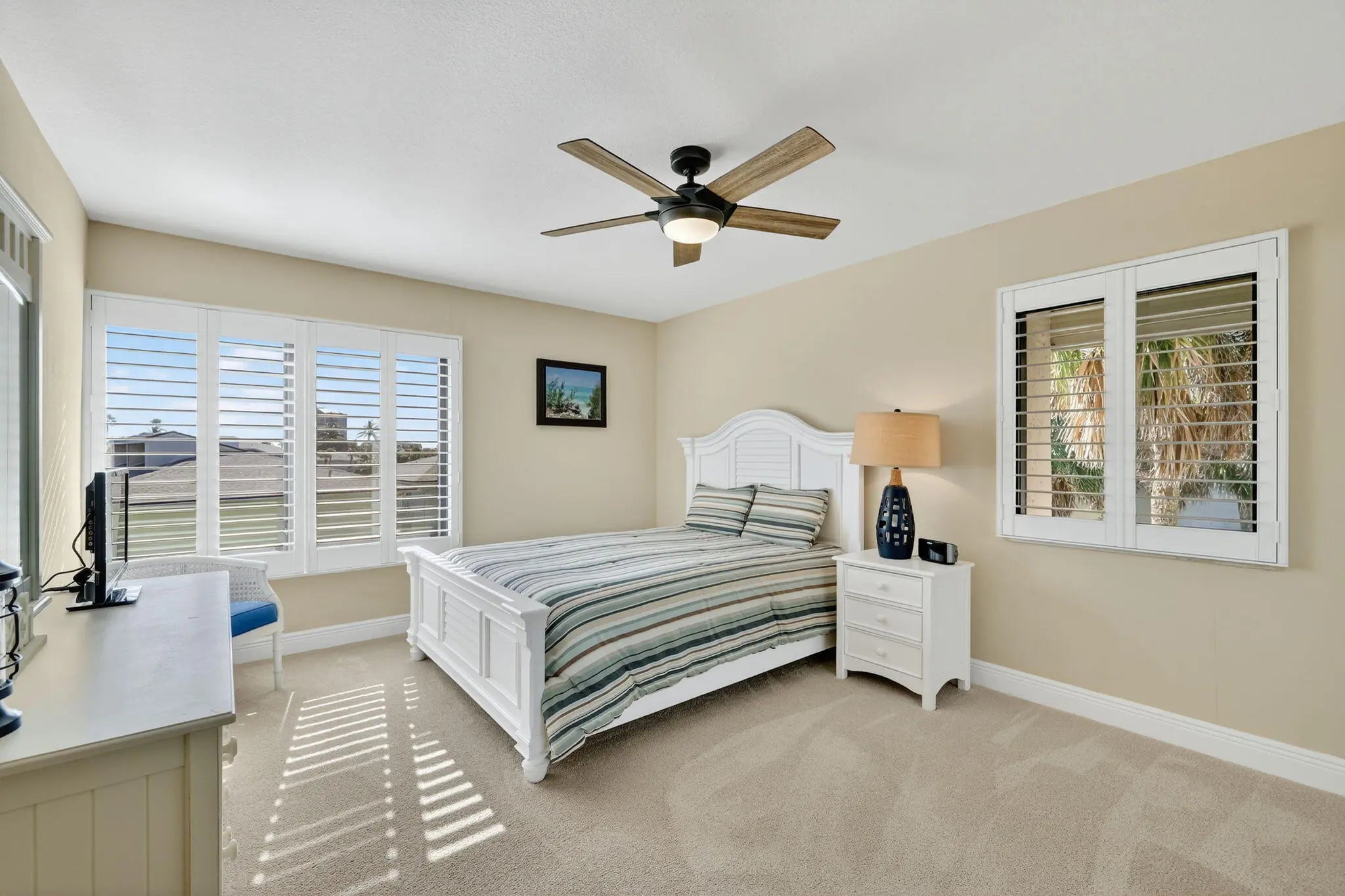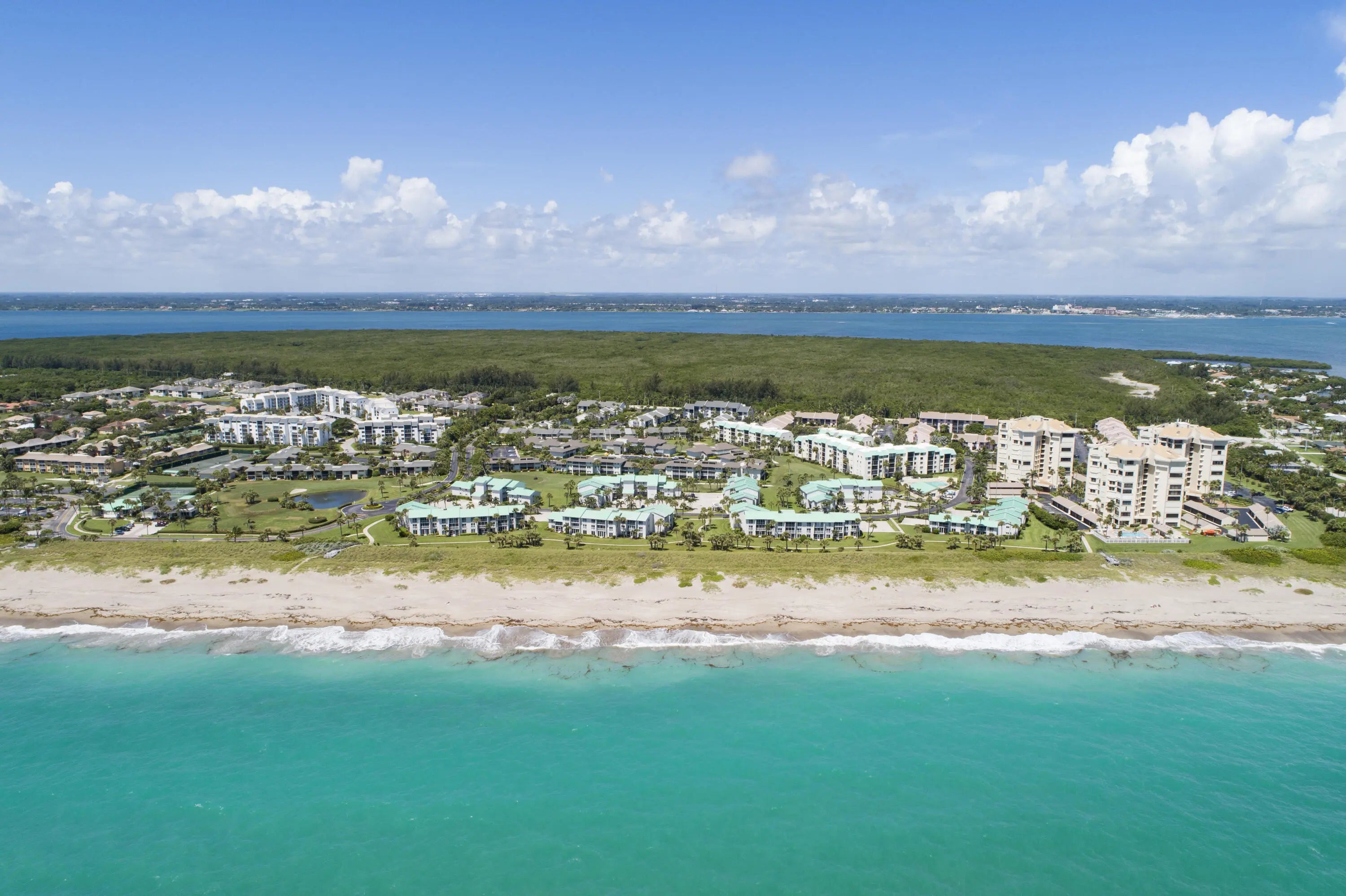 Beautiful 3 bedroom 2 bath condo at Ocean Village on South Hutchinson Island! Spacious end unit with more privacy & exterior storage room. Many upgrades including bamboo flooring, extended living room, plantation shutters, impact windows, electronic sunshades, high effeciency washer/dryer, new AC in 2024 & more! Totally furnished! Covered parking. Owner may have a large pet! Enjoy the ultimate Florida lifestyle at this beautiful, award winning oceanfront community with resort style amenities including 24 hr gated entry, 9 hole par 3 golf course, tennis, pickleball, bocce, 4 heated pools, clubhouse & fitness center, shuffleboard, library, oceanfront restaurant & tiki bar. Located on South Hutchinson Island with 21 miles of uncrowded & unspoiled beaches. Measurements approximate