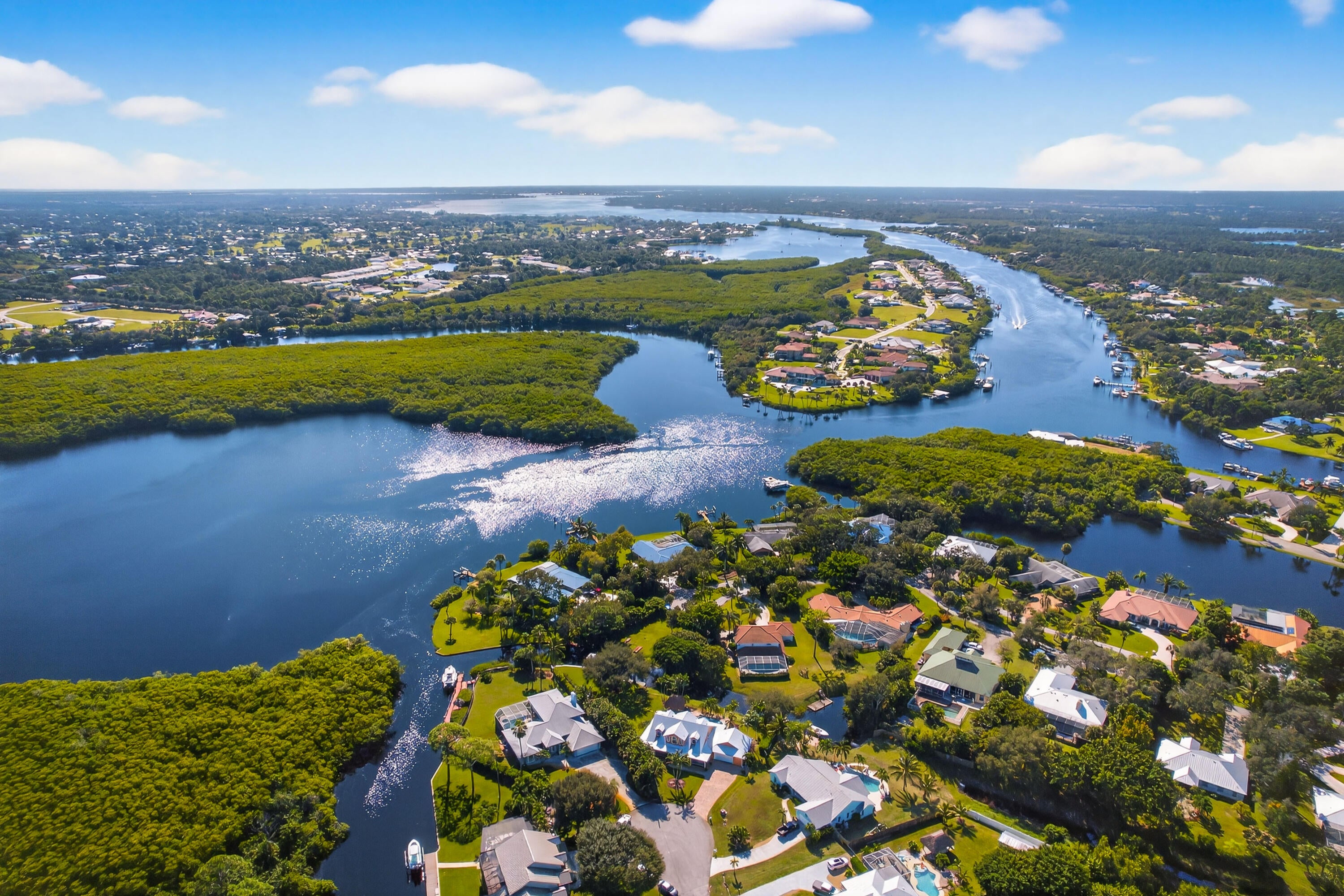 Discover the ultimate Florida lifestyle in this stunning waterfront home offering 250 feet of canal frontage just off the St. Lucie River with ocean access. Set on over a half acre on a quiet cul-de-sac, this 2 story home features a new metal roof (2023), complete impact glass, and a gorgeous infinity-edge pool with spa beside a tropical tiki hut. Enjoy a new seawall and composite dock (2024) with boat lift--perfect for effortless days on the water, sunset cruises, or weekend adventures. The wrap-around porch and expansive back patio create ideal spaces to relax and take in the water views. Inside, you'll find a stunning updated kitchen, renovated upstairs bath, loft space, plantation shutters, crown molding, and wood-look tile floors. Lush landscaping surrounds the home,creating a private sanctuary of elegance and resort style living. Close to shopping, dining, golf, and beautiful beaches. Easy access to FL Turnpike.