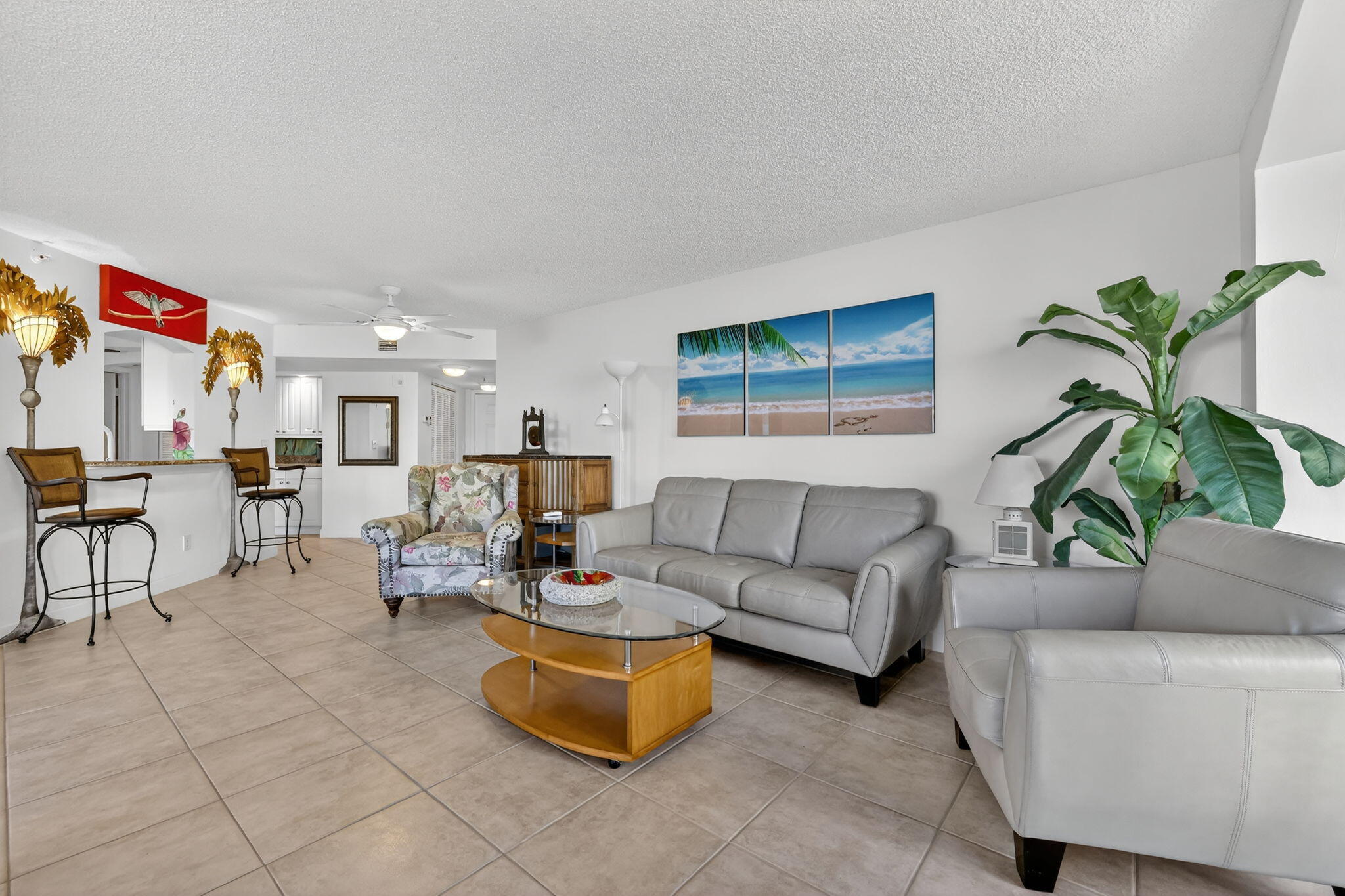 Beautiful 2 bedroom 2 bath furnished ''Seascape '' condo at Ocean Village! Plus a 1 car garage! Upgraded condo including new AC & new water hearter both in 2025. Direct oceanfront building only steps to the beautiful turquoise ocean & sparkling private Seascape pool! Enjoy the resort style amenities at this beautiful oceanfront community including 9 hole par 3 golf, new state of the art clubhouse & fitness center, tennis, bocce ball, pickleball, new main pool plus 3 other heated pools, shuffleboard, library, oceanfront restaurant & tiki bar & 3500 feet of oceanfront! This tropical paradise is located on South Hutchinson Island with 21 miles of uncrowded & unspoiled beaches! Short stroll to downtown waterfront with farmer's market, Sunrise Theatre & so much more! Measurements approximate.Instant income as this unit is rented February through May 2026!