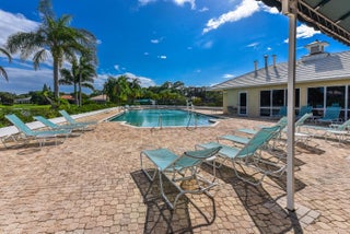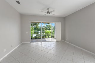 The view says it all! Not just a villa...It's a front row seat to paradise! This beautifully maintained, move-in ready villa offers one of the most picturesque lake and fairway views in the community. The screened entry welcomes you into a bright, open floor plan with 10-foot ceilings throughout. A spacious den sits to the right, while the guest suite is privately located to the left and features an updated bath. The primary suite includes sliders to the lanai, a custom walk-in closet, and a luxurious bath with an oversized updated shower and dual-sink vanity. The eat-in kitchen opens to the great room with panoramic views that steal the show. Ceramic tile and engineered wood flooring flow throughout. The kitchen features 42-inch cabinets, granite countertops, and newer appliances. HOA fees include gated entry, landscaping, exterior painting and power washing of roof & driveway and more. Walking distance to clubhouse & amenities Complete accordion shutters.