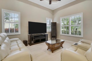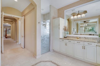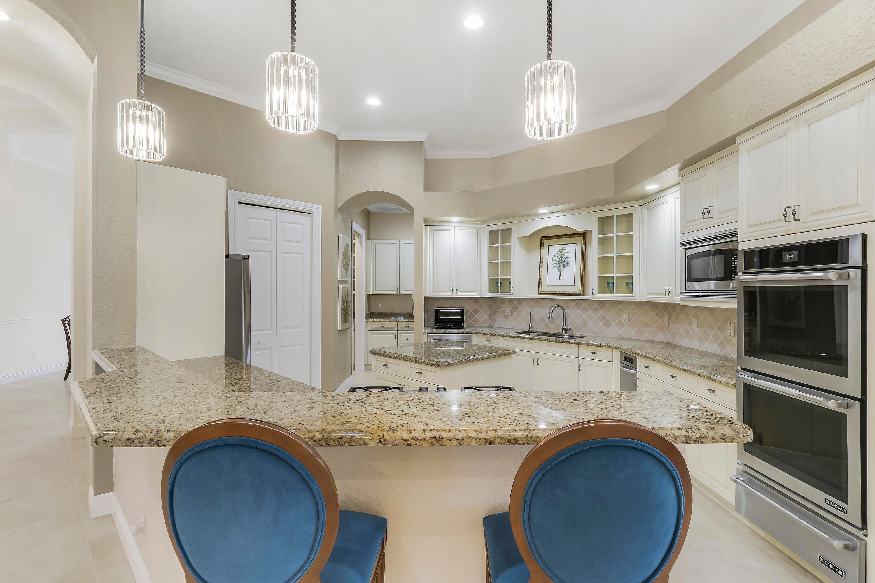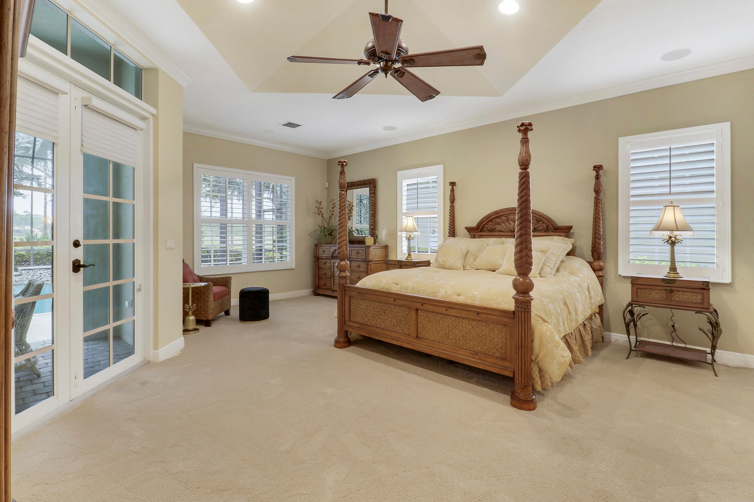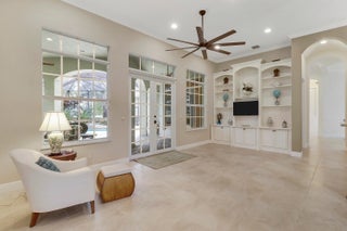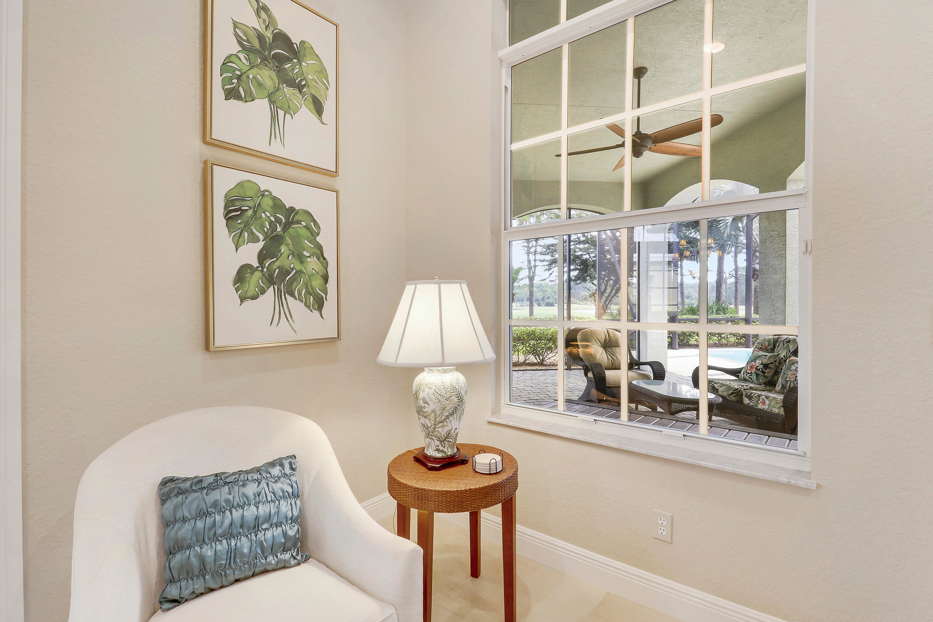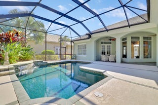 CUSTOM BUILT POOL HOME WITH GOLF & WATER VIEWS in the prestigious Scarborough Estates neighborhood of PGA Village! This elegant 4BR+Office+Flex/4.5BA/3CG home offers plenty of living space for everyone to enjoy. Some of the many special features include IMPACT GLASS windows & doors, GENERATOR, NEWER ACs (2021), new WH (2025), office with built in shelving unit, spacious lanai with pool and summer kitchen, elegant kitchen with butler's pantry and master bedroom suite with dual water closets. The minute you step through the front door the stunning vistas will catch your eye through the floor to ceiling windows. The spacious kitchen features a gas cooktop, granite counters, tumbled marble backsplash, new refrigerator & dishwasher (2024), newer double ovens & food warmer and breakfast bar.Other special features include central vacuum, new tile flooring in five rooms, new bathroom granite counters in the three guest bathrooms and self cleaning pool. The family room opens to the pool area and connects to the flex space with cabana bathroom - perfect as a den, game room or craft area. The spacious master suite is a perfect retreat with seating area, dressing space, dual closets with closet organizers and spa-like ensuite with soaking tub, granite counters, tiled shower and dual water closets. Three additional guest bedrooms, one ensuite and two that share a bathroom, welcome family and friends. Outdoor living is made enjoyable on the screened and partially covered lanai. Watch the golfers go by as you grill at your summer kitchen, dine al fresco, swim in the salt water pool or curl up with a book. The three car garage will delight car enthusiasts with built cabinetry and even a mini split AC unit. HOA dues cover cable, internet, lawn care, mulching, tree & hedge trimming, common area maintenance and community security. PGA Village is an amenity rich community with COUNTY ONLY TAXES surrounded by multiple golf courses where MEMBERSHIP IS OPTIONAL. Activities at the Island Club include pickleball, tennis, resort style pool, exercise rooms, ballroom, billiards and more. A short drive to the Palm Beaches, Stuart, Jensen Beach, Vero Beach, airports, baseball, dining, shopping and beaches. Call today to view!