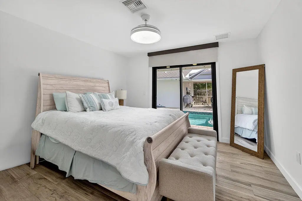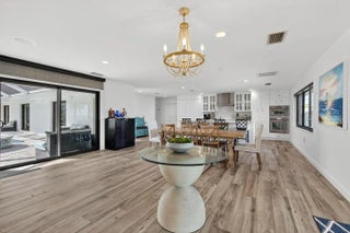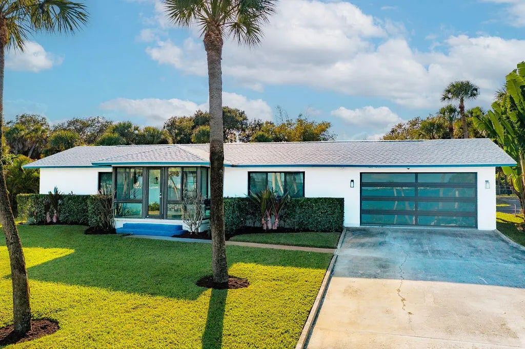 Beautiful 5BR/4BA waterfront home on 1.8 acres with 100 ft of river frontage and ocean access. Fully renovated in 2024 with a custom kitchen, Thermador appliances, Zephyr wine cooler, and whole-house water filtration. Features impact windows/doors, newer roof, 2024 water heater, generator, and 3 newer A/C units. Enjoy a screened pool with jacuzzi and waterfalls, fenced yard with fruit trees, 2-car garage plus separate CBS 3rd garage. Includes a 200-ft dock with boathouse, electric, water, and 16,000-lb lift (dock needs work). Offered fully furnished; personal items and wall decor do not convey. Incredible water views.