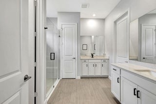 Why wait to build? Enjoy resort-style living in this 2023 home-3 bedroom, 3-bath home showcasing a rare open-concept, split floor plan with spacious bedrooms, ample storage, and custom cabinetry. Recently all three bathrooms have been beautifully upgraded with frameless doors/new hardware and both patio/driveway pavers resealed.Entertain in the gourmet kitchen featuring quartz countertops, custom cabinets with crown molding, gas stovetop, stainless steel appliances, and a built-in coffee bar. Impact windows, a tankless water heater, and sleek 6''x24'' tile elevate the home's modern elegance.Step outside to a fully fenced backyard overlooking a peaceful lake--perfect for relaxing or hosting guests. Owners are willing to contribute funds towards closing costs with an acceptable offer