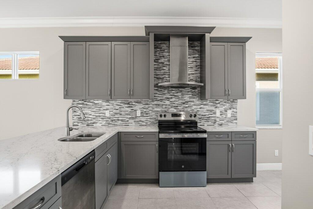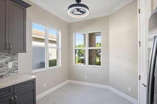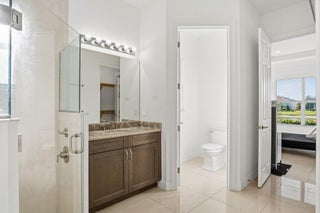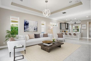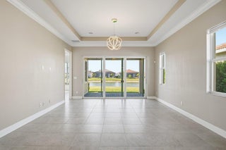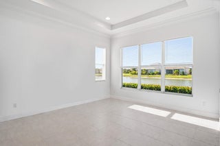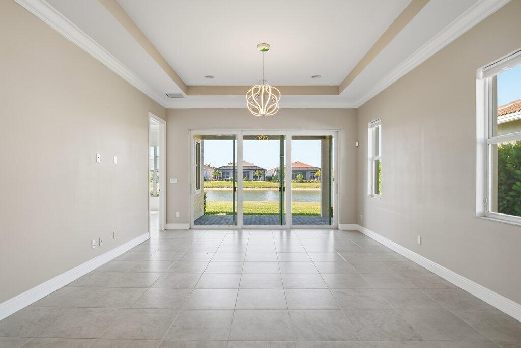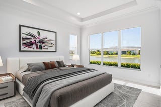 The experience of this upgraded Bella model begins the moment you arrive, greeted by a beautifully manicured lawn and an inviting front entry that sets the tone for the refined living found throughout. This home offers peace of mind from the start, featuring full impact windows, an irrigation system, and both a covered front porch and a covered patio, perfect for enjoying the Florida lifestyle in any season. An exterior alarm system with cameras adds another layer of security, ensuring comfort and confidence every day.Step inside and natural light fills the open-concept design, guiding your eyes across the sophisticated kitchen and living areas toward the serene lake view, a calming, picturesque backdrop that enhances each moment in the home. Recently installed designer light fixturesbring warmth and elegance to the space, while French doors add architectural charm. The kitchen serves as the heart of the home, anchored by a stunning waterfall island and outfitted with stainless steel appliances, a range hood above the electric stove, contemporary cabinetry, and a pantry. The cozy kitchen nook is the perfect place to enjoy your morning coffee or tea while taking in the tranquil water or lush garden views. Inside, thoughtful upgrades continue with a generous laundry room, and a well-designed primary walk-in closet that can maximizes storage and convenience. Fire sprinklers provide an added level of safety, blending seamlessly into the thoughtful design of the home. The primary suite offers a peaceful retreat, featuring a spacious layout that flows into a spa-inspired bathroom complete with double vanities, a floor-to-ceiling tiled shower with a seamless glass enclosure, and a private water closet. Step into the backyard and experience a setting designed for relaxation and year-round enjoyment. With sweeping lake views and a covered patio that extends your living space outdoors, it's the perfect place to unwind, entertain, or simply enjoy the beauty of the day. Located in the highly sought-after 55+ Cresswind community within PGA Village Verano, this home grants access to an unmatched resort-style lifestyle in Treasure Coast. As a resident of Cresswind, you'll enjoy your own private gated entrance and exclusive pool reserved solely for Cresswind homeowners, along with full access to every amenity PGA Verano has to offer. The community includes a world-class clubhouse with a state-of-the-art fitness center, aerobics studio, and locker rooms with saunas and massage areas. Residents enjoy both an indoor heated Jr. Olympic pool and spa, as well as an outdoor resort-style beach-edge pool with additional spa and shaded lounge areas. For those who enjoy staying active, the community features five Har-Tru tennis courts, twenty-seven pickleball courts with covered seating, bocce courts, a basketball court, a tot lot, and two luxurious dog parks. A full-time social events and fitness coordinator ensures a vibrant calendar of activities. Club Talavera, the 19,000-square-foot social club at the heart of the community, offers a lounge, craft room, card room, demonstration kitchen, banquet room, stage, and grand hall with a fireplace. Outside, residents enjoy a lakeside fire pit, outdoor fireplace, and concert lawn. PGA Golf Members benefit from golf cart access to multiple PGA golf courses and the PGA clubhouse. Everyday conveniences are just minutes away, including Publix at the main gate, Tradition Square, Cleveland Clinic, restaurants, and shopping. In Cresswind at PGA Village Verano, luxury and convenience blend seamlessly to create a lifestyle that feels like a year-round retreat. Welcome home.