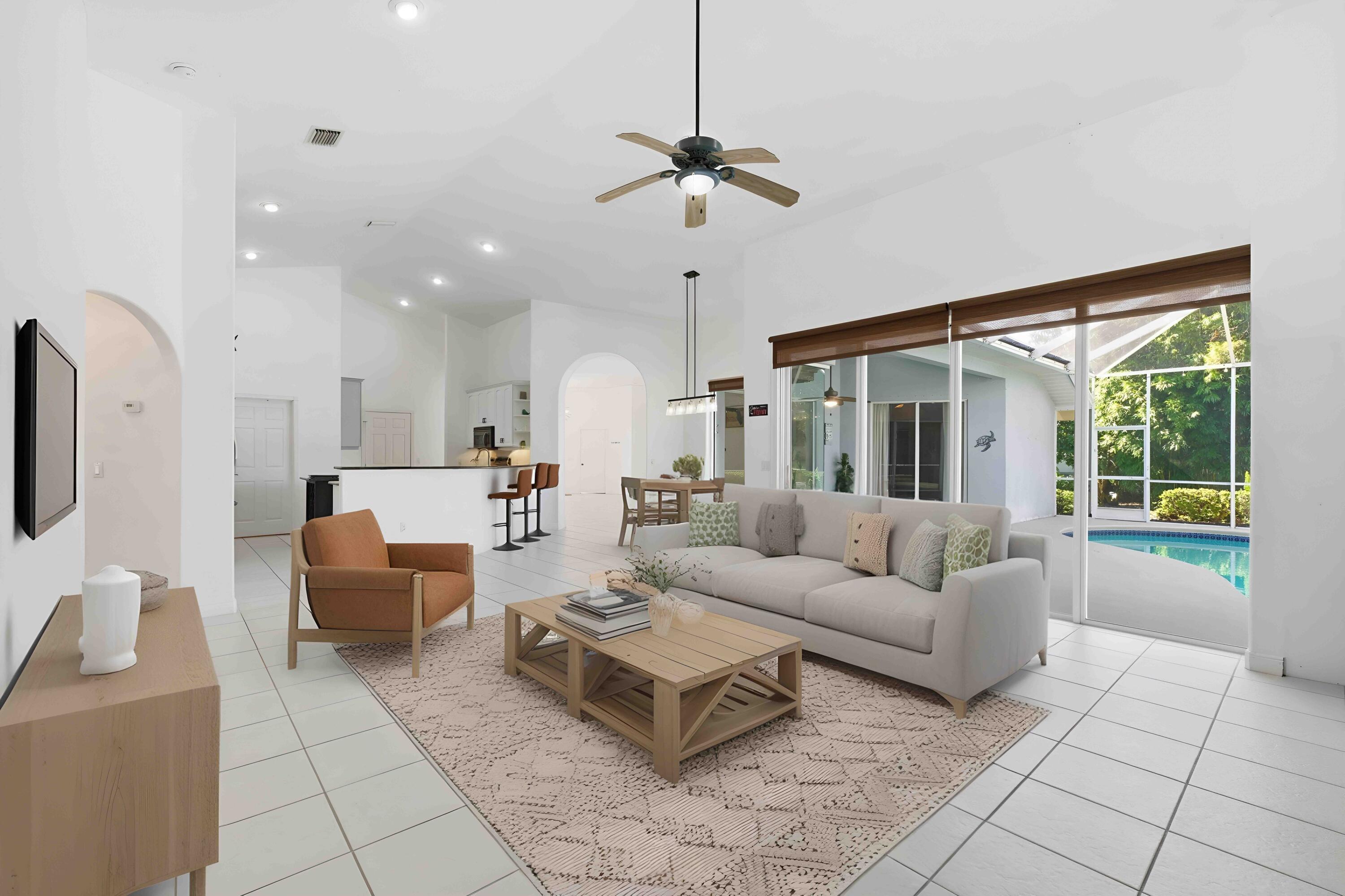 Welcome to River Landing!A lovely gated community in highly sought after Palm City, FL. Community features include a fenced-in storage area for boats, trailers, and RVs (annual fee & based on availability), a community boat ramp and storage with ocean access, tennis and pickleball courts, and a children's playground. School bus pickup for elementary, middle, and high school is conveniently located at the front gate.This beautiful CBS home offers 4 true bedrooms, 3 full bathrooms, plus a separate office. Flooring throughout is tile and laminate wood. The family room features a cozy wood-burning fireplace overlooking the in-ground pool and spa, creating a perfect indoor/outdoor space for entertaining. The home also includes an oversized 3-car garage.Located on a quiet street on a lakefront lot, this home offers wonderful backyard privacy. Additional highlights include a new metal roof installed in 2020 and access to A-rated Palm City schools. Easy access to I-95, the Turnpike, shopping, dining, and everything Old Palm City has to offer.