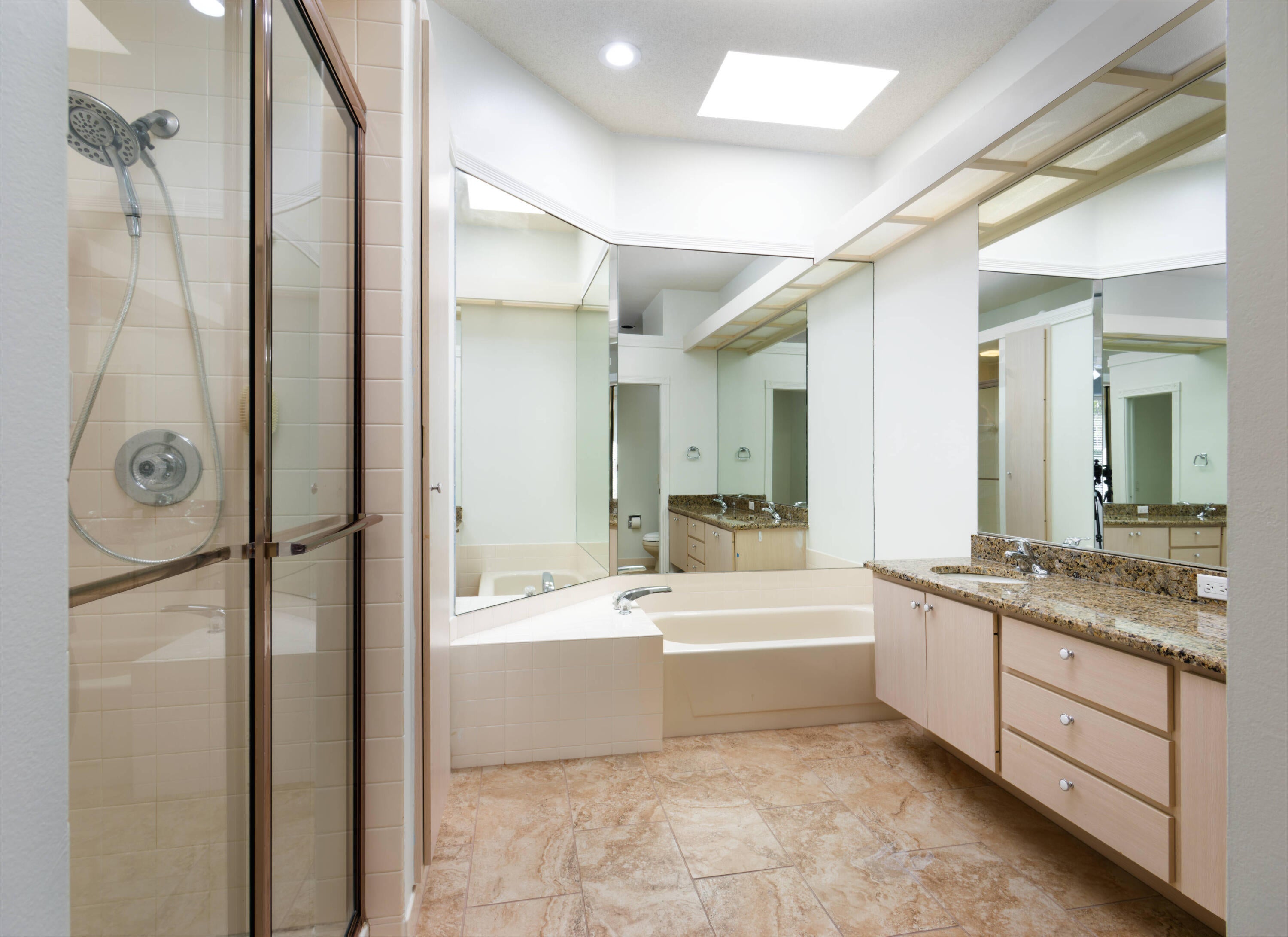Foyer, Laundry Tub, Pull Down Stairs, Roman Tub, Sky Light(s), Split Bedroom, Walk-in Closet
