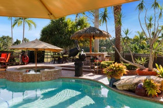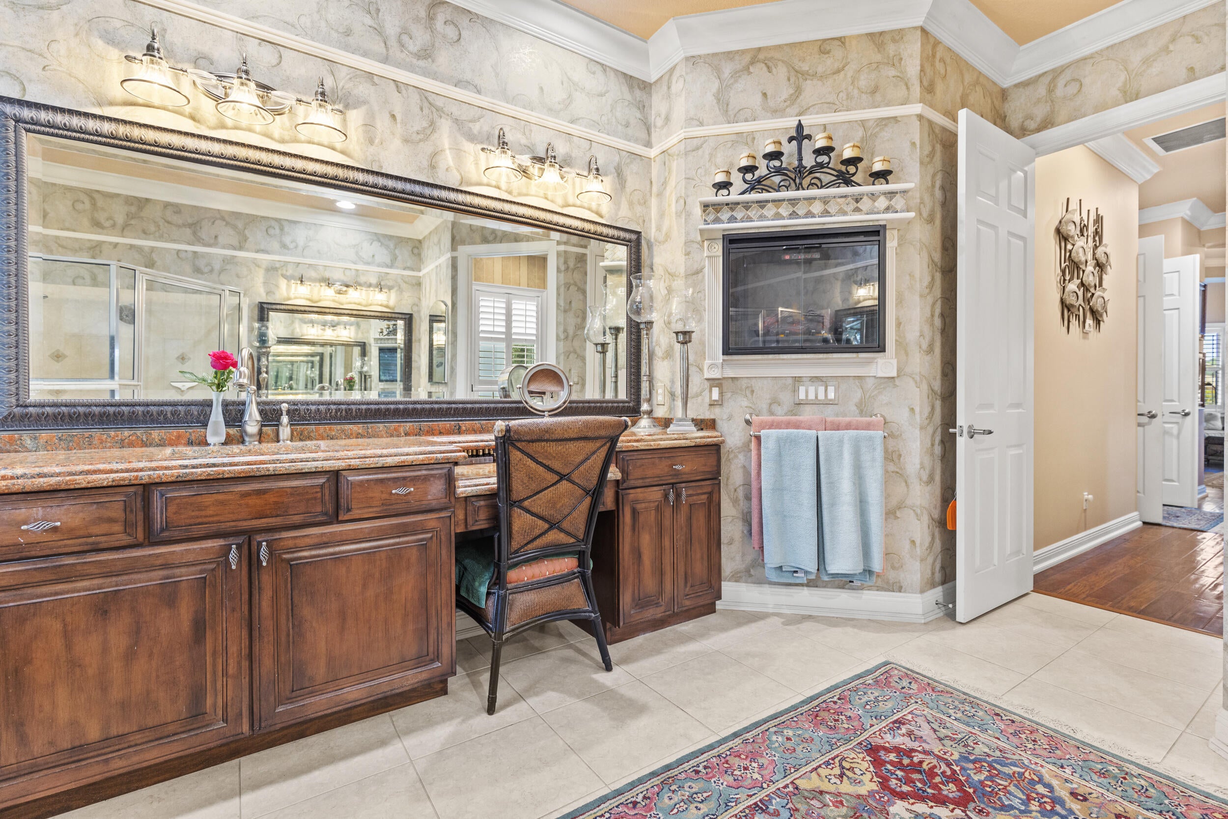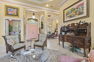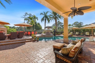 Gorgeous Custom Home on .55 Acre lot at ''PGA Village'' with beautiful view of the 7th Hole of the Pete Dye golf course with exceptional outdoor living! Looking for a Florida Lifestyle you have found it! Featuring CBS Construction, Impact windows, paver driveway, 4 BR's, 4 BA's, Den/Office 4.5 CG w/ great curb appeal & fountains. Foyer entrance, volume ceiling, tile flooring in main areas, formal living/dining room & furniture negotiable. Stunning Gourmet Eat in Kitchen with stainless steel Wolf & Miele appliances including sub-zero refrigerator, gas range/stove, coffee maker, hood, pot filler, breakfast bar & Island. Spacious family room w/ custom featured wall & TV. Split floor plan perfect for family & guests. Furnished outdoor area Boasting a 82 x 48 fenced in patio & heated pool/spa.Some details offered outside include Large summer kitchen with customer details, fire pit section, tekkie hut, fireplace, several sections where entertaining is PERFECTLY DESIGNED in a Tropical setting with mature landscaping & golf course views. Large Master suite with wood flooring, walk in closets with built-in's & large Master Bath with separate shower, Roman Tub & dual sinks. Bring all your toys with plenty of room in the 4.5 Car garage, custom cabinets, granite counter tops & shelves. This home has extensive custom details and you must see it to appreciate all the finishes, crown molding, custom wall paper, Plantation shutters just to name a few. Located in PGA Village where you can find 3 Champions Golf Courses well know to many and no mediatory golf necessary. Included in HOA Dues : Manned gated security, cable, internet, common areas & recreation center (The Island Club) offering a resort style pool, fitness center, tennis, pickleball, library, billiards, ballroom, card, crafts, shows, clubs & even travel. Located close to shopping, schools, restaurants, hospitals & even home of the NY Mets Spring Training. The Treasure Coast has beautiful waterways for fishing, boating & beaches only 45 minutes from Palm Beach Airport.