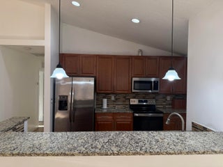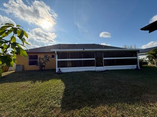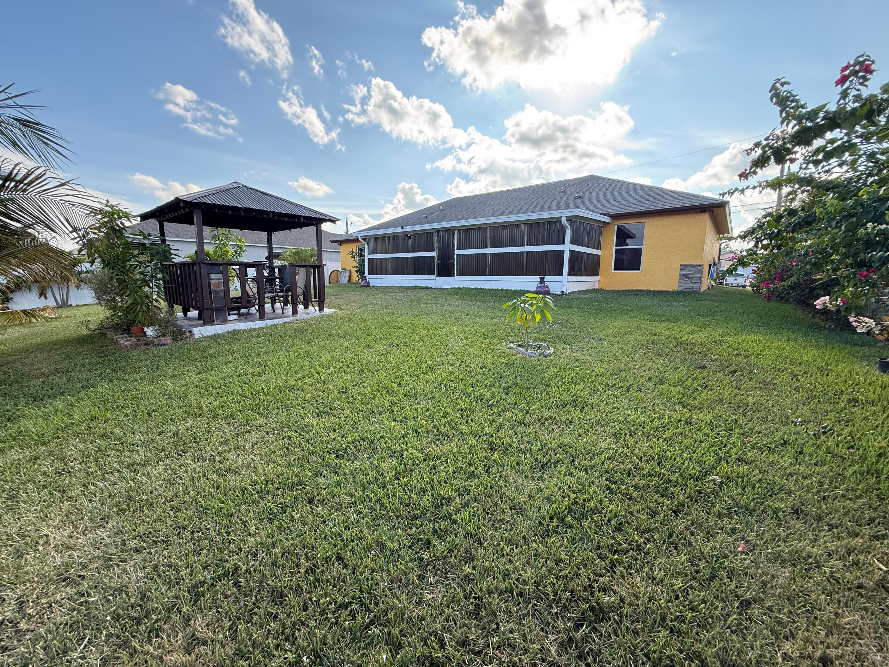MOVE RIGHT IN! Spacious, concrete block, 4 bedroom, 2 bath beauty!! Open concept living space, Tile floors throughout... Kitchen with granite countertops and stainless steel appliances. All bedrooms are generous-sized....the master has lots of closet space. HUGE 29x9 screened, covered lanai overlooks a large, treed, tranquil, totally fenced, backyard complete with outdoor kitchen. ''A MUST SEE