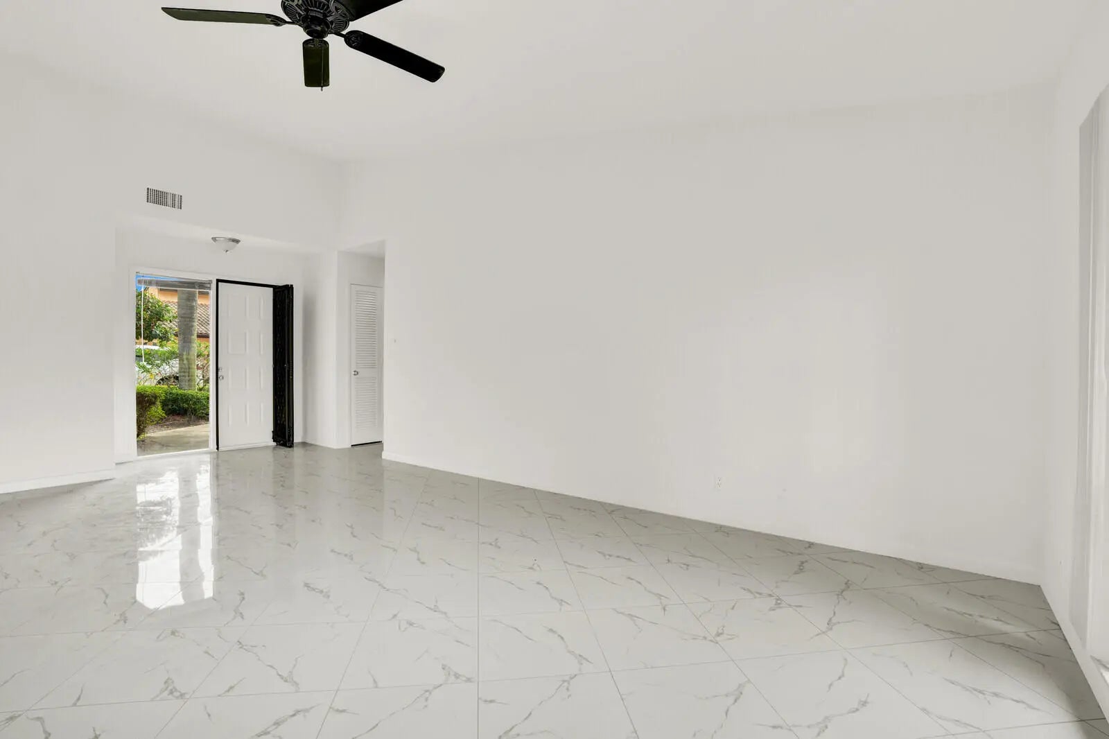 Welcome to Quail Meadow, a highly sought-after community in Martin Downs. This spacious 3-bedroom, 2.5-bath single-story villa offers a comfortable layout with vaulted ceilings, a split bedroom plan, and an attached 1-car garage. Recently refreshed with new porcelain tile flooring throughout and fresh interior paint, the home provides a clean, bright foundation for personalizing over time. A screened-in patio overlooks the surrounding greenery, offering a quiet space to relax. Residents enjoy a low-maintenance lifestyle close to shops, dining, and top-rated schools. The community also offers access to two nearby golf courses--one public and one private--and offers optional membership at The Village Club & Preserve with pools, tennis, pickleball, a fitness trail, dog park, and more.