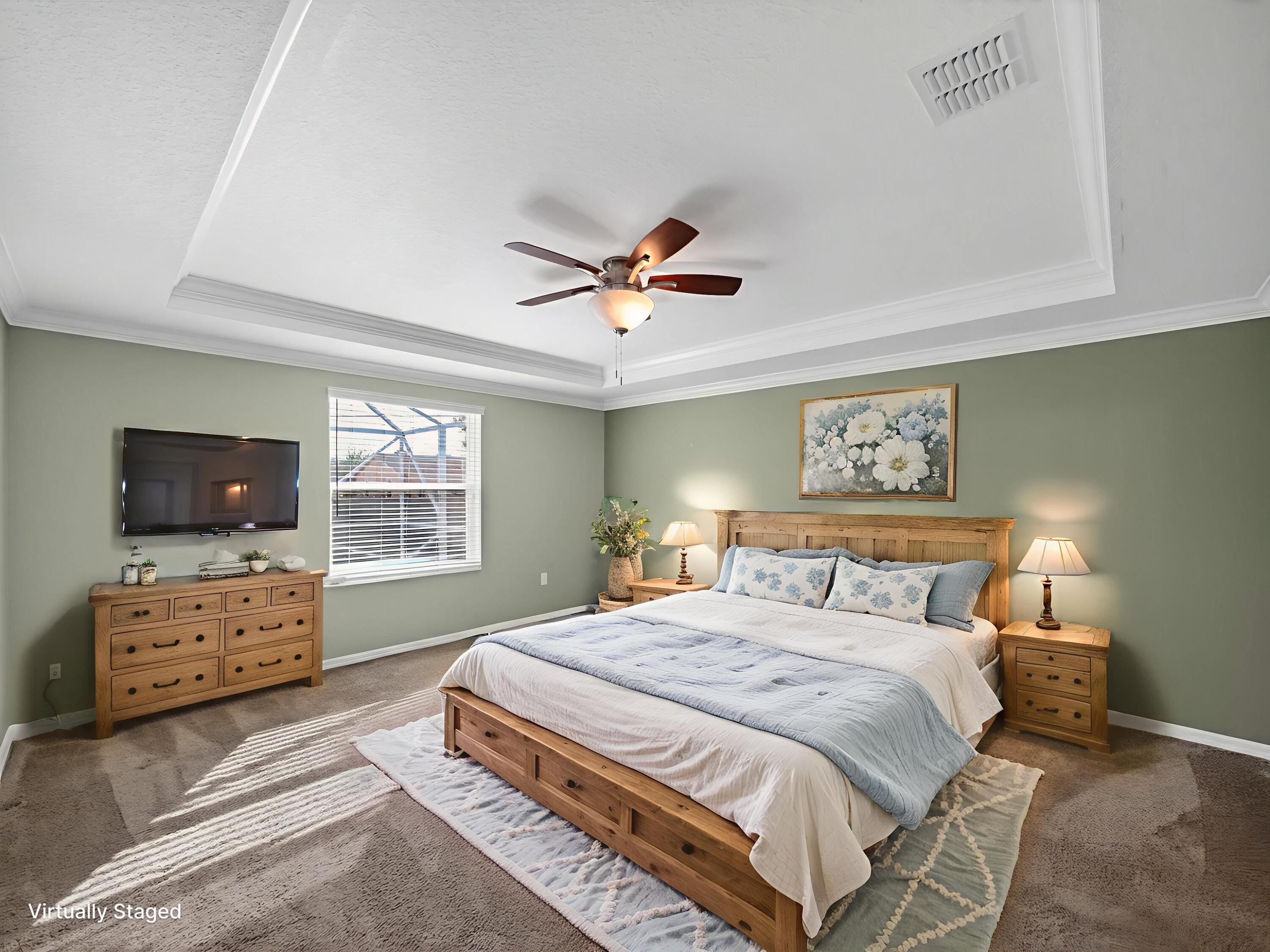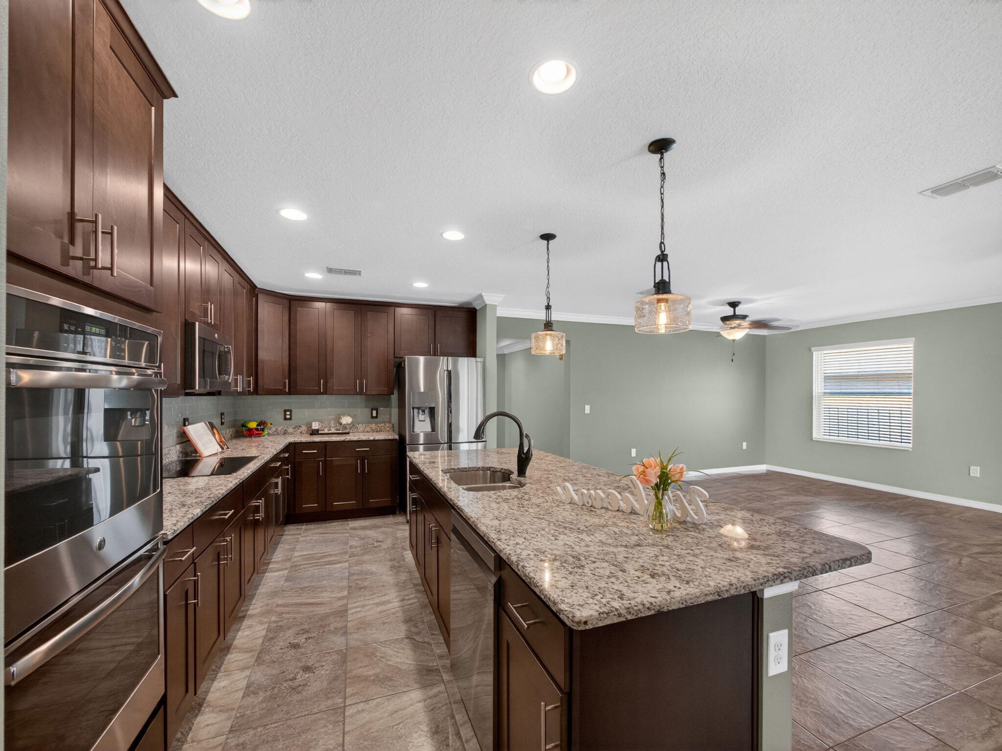Don't miss this turnkey perfection quality-built home showcasing a sparkling pool with custom mosaic fish inlays & interior upgrades galore! Original owner!! Features include granite surfaces throughout, porcelain 18x18 tile in main areas, carpet in primary suite, and Pergo floors in guest rooms. Gourmet kitchen offers island, double oven, LG dishwasher, Samsung refrigerator, soft-close drawers, and 42'' crowned cabinetry. Primary bath has dual showers and rain forest!! Dual sinks! Designer lighting, 6 ceiling fans, crown molding, in-wall pest system, & alarm system! Fully fenced yard with plenty of room to play. Whole-house generator, 500-gal buried propane tank, 2023 LG washer/dryer, AC motor 2021. Minutes to Tradition, shopping, 95 and Tpke!! Beautifully maintained home, move in ready!
