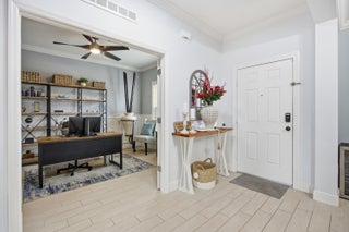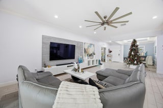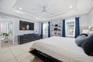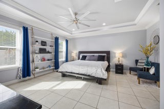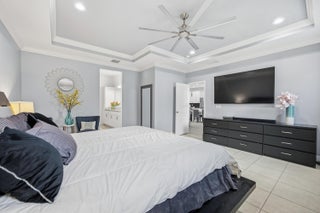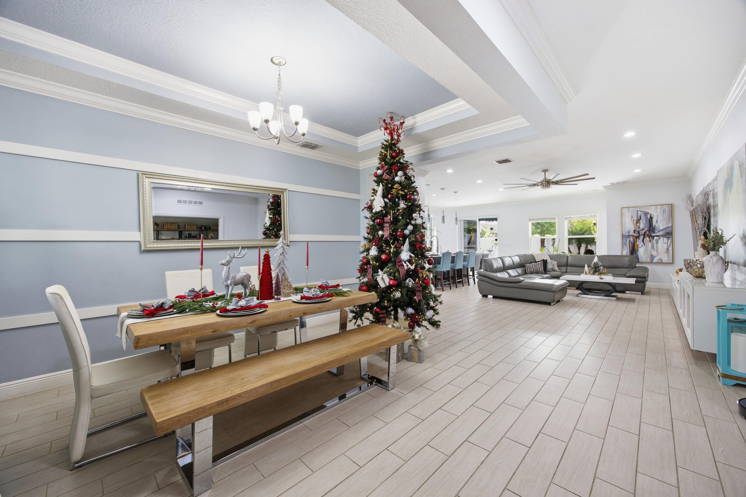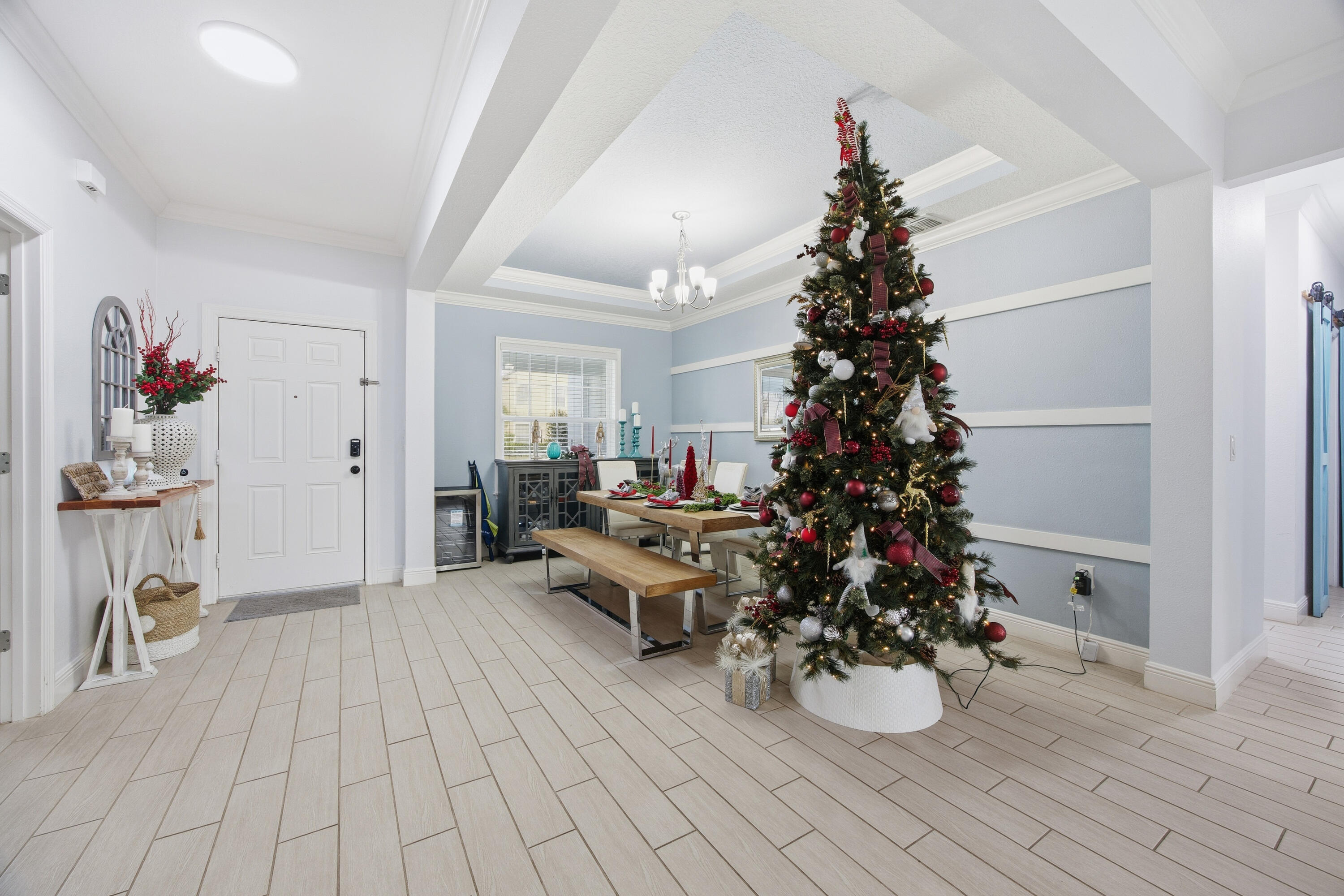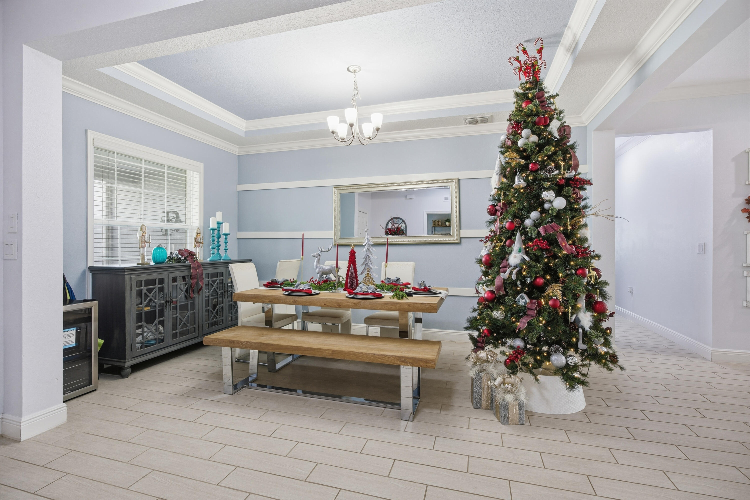 Beautifully upgraded 4 bedrooms 3 Bath POOL home with FLEX/OFFICE ROOM. Also has an oversized driveway and 3-car garage, located just outside Tradition with no HOA, giving you the freedom to bring your boats, toys, trailers, and more. This bright, immaculate home is filled with natural light and has been meticulously maintained with homeowner-dream upgrades throughout.Inside, enjoy formal dining with tray ceilings, and an impressive kitchen featuring Cambria quartz countertops, extended cabinetry, a custom island with attached quartz table, and a built-in bar with wine refrigerator.The large primary suite offers tray ceilings, crown molding, and a walk-in closet.Step outside to resort-style living with a 32x14 pool, custom-built pergola, paved deck, lush landscaping with palm trees, and white vinyl fence. Major upgrades include a metal roof (2025), water heater (2023), full sprinkler system, whole-house soft water system, and solar panels to be paid off at closing. This home has it all luxury, freedom, and an unbeatable location near Tradition's top shops and dining, without HOA restrictions.