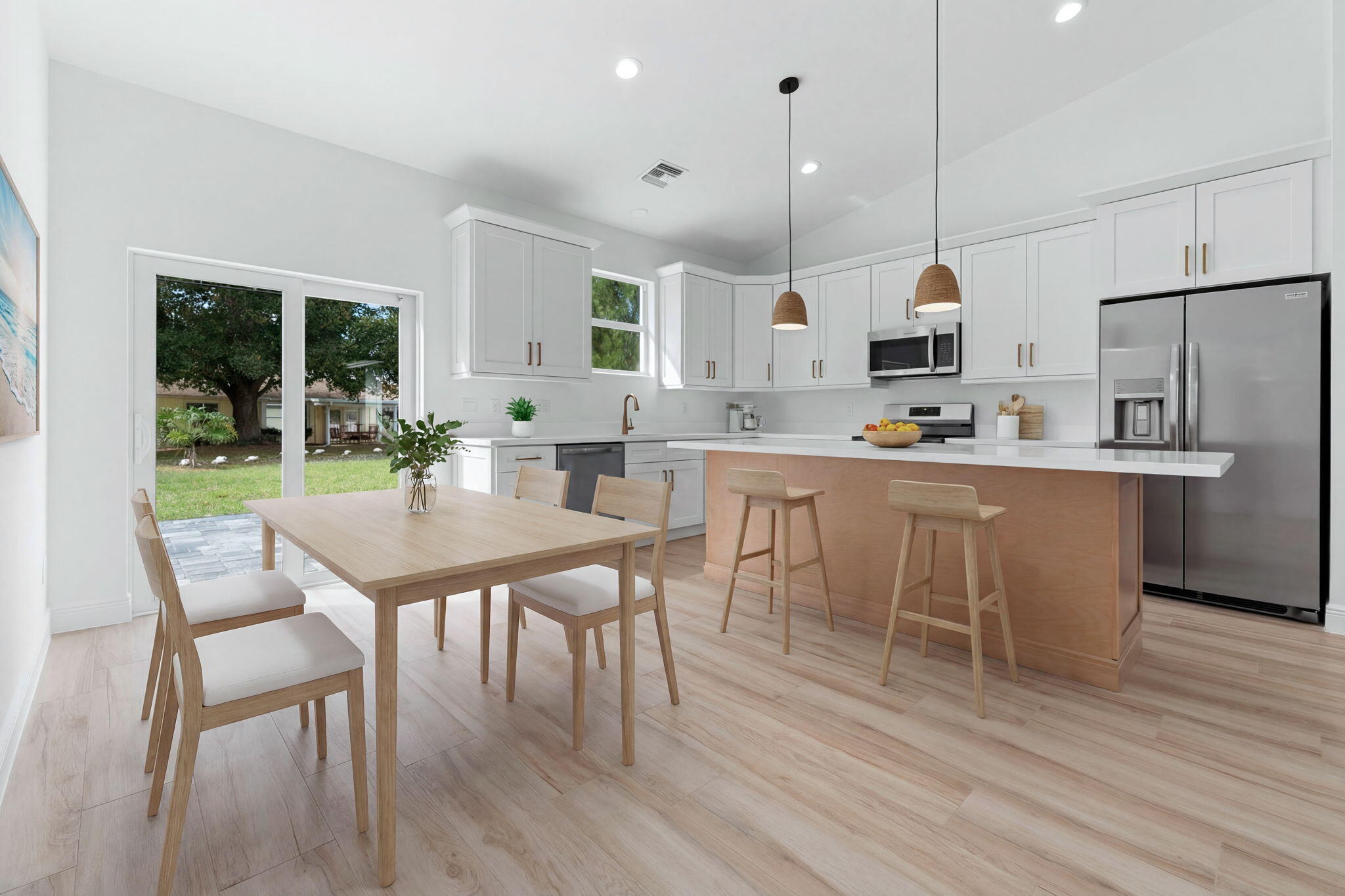 Brand-new 4-bedroom, 2-bath Coastal look home in desirable Sandpiper family friendly neighborhood. .NO HOA! Completed in January 2026. Impact windows, upgraded overhead garage door. Impact glass beveled glass entry door. Tile throughout. Spray foam attic insulation for efficiency. Upgraded interior doors and hardware. Solid surface countertops with plywood box cabinets, pot and pan drawers, & more. Stainless steel appliance package. Volume ceilings. Frameless glass shower enclosure in master bath showers tiled to ceiling. Paver patio. This home is just steps from a local park and walking distance of the beautiful botanical gardens. Minutes from downtown Stuart and Jensen Bch for shopping, dining, beach, & boating.