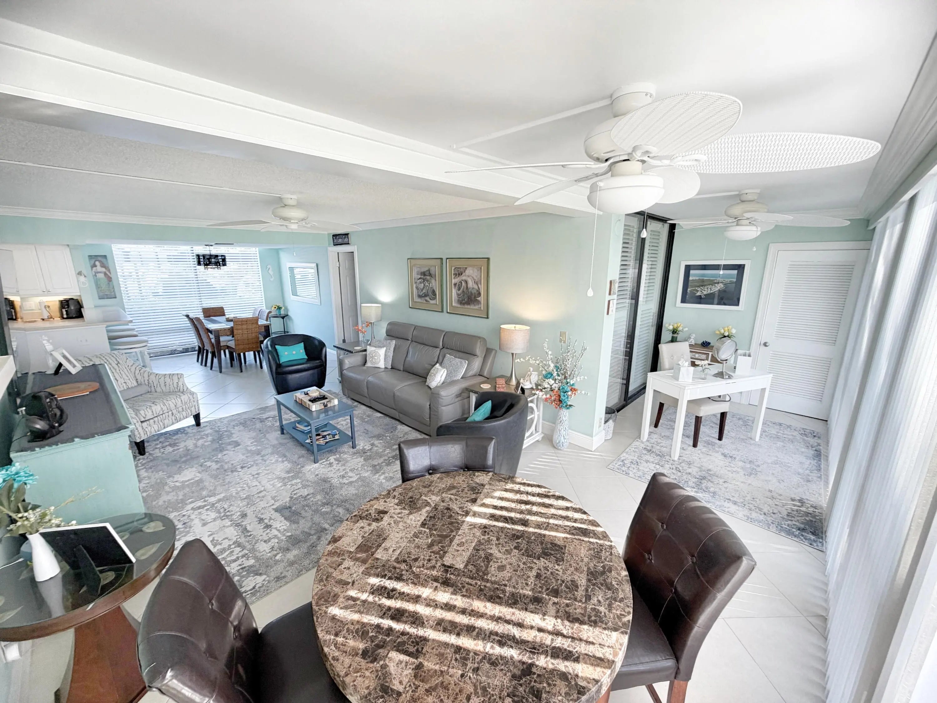 Look no further paradise found! This tastefully fully furnished condo is walking distance to Jensen Beach and all that it has to offer. Home has views of the inter-coastal. The kitchen features a bar for a quick snack or dining room. Tiled floors throughout, updated bathrooms and kitchen. Balcony has impact sliding glass doors and an exit to the inter-coastal area. Spare bedroom features two twin beds can be made into a queen with TV. Complex has pool, billiards room, tennis, fitness center and is gated. SEASONAL RENTAL. NO PETS ALLOWED. Jan-June 2026 and January 2027 - March 2027 is RENTED. There is an off seasonal monthly rate of $2,500 per month (3 month minimum)