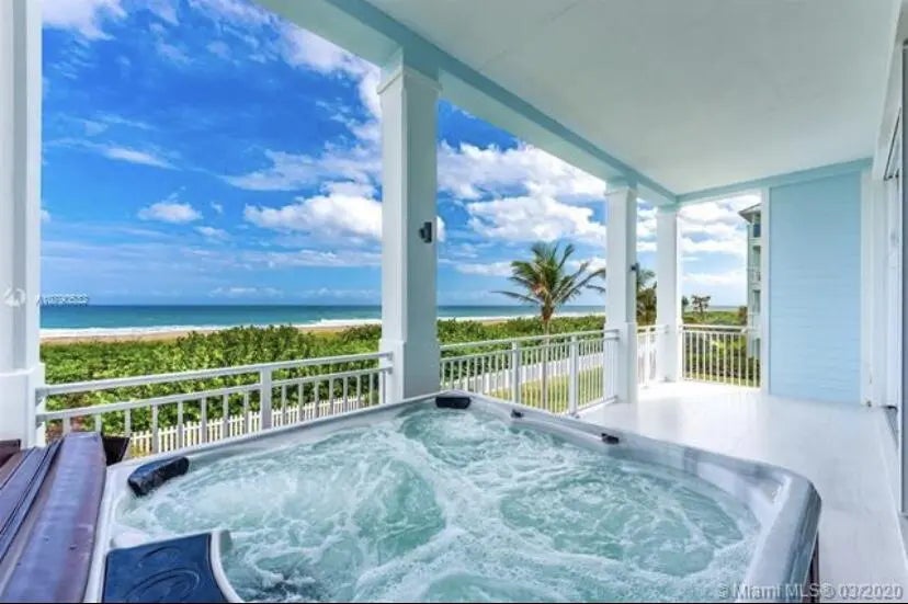 Discover an OCEANFRONT PARADISE ON S. Hutchison Island - 3 stories nestled between the Atlantic Ocean and the Indian River in a exclusive Gated Community. Enjoy LUXURY OCEANFRONT LIVING in this 5 bedroom 5.5 bathroom, Master bath offers sanctuary soaking tub & shower with direct OCEAN VIEW. Fully FURNISHED, equipped as a SMART HOME, it blends modern technology with timeless COASTAL ELEGANCE. Features include, elevator, Andersen Impact windows/doors, crown molding, all concrete construction including floors at all levels, custom lighting. Chef's dream kitchen: island/ seating for six, quartz countertops, Wood-mode cabinetry, Thermador gas range. Sub-Zero wine cooler, Wet Bar, gas range fireplace, jacuzzi. Whole house generator hook-up, 3 car garage with charging station for electric