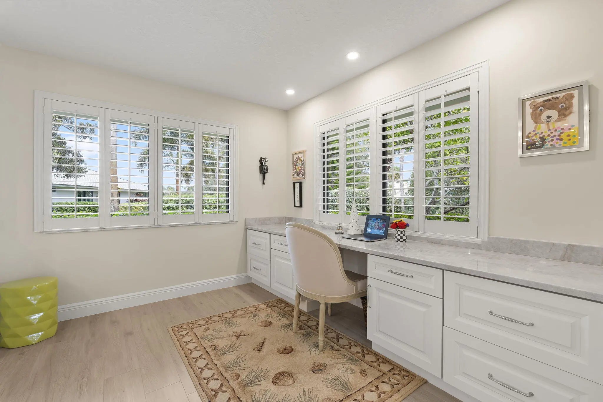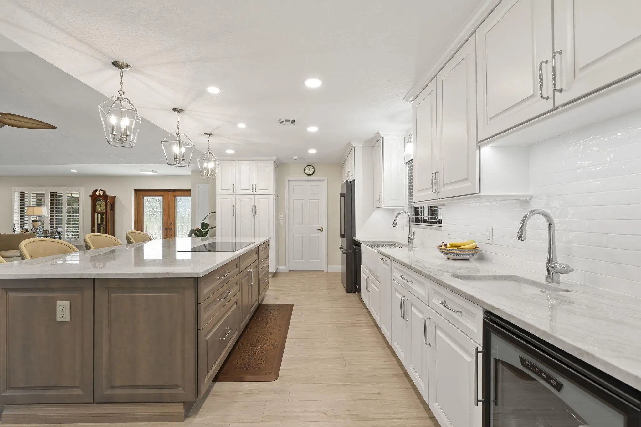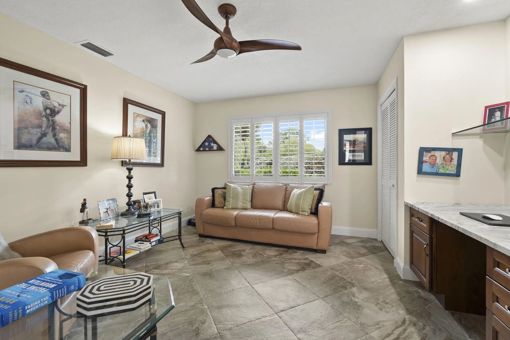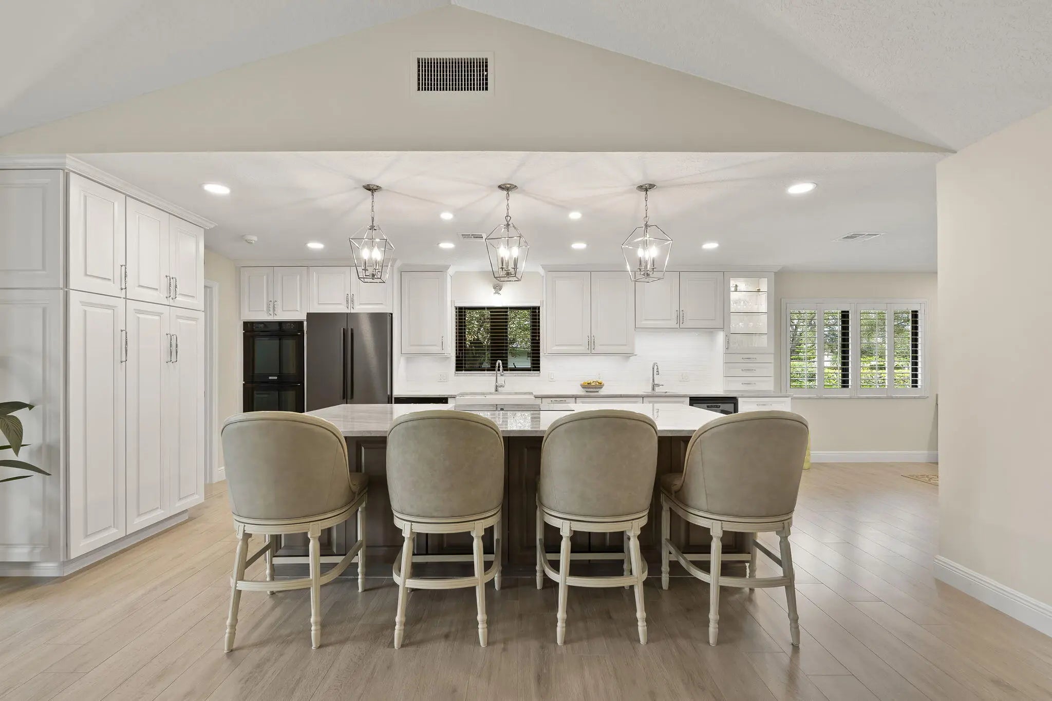 Located in the gated and exclusive community of Pipers Landing, perfect for golf & boating enthusiasts--this beautifully renovated home features a complete 2021 transformation. The stunning open kitchen flows into the living room and offers quartzite countertops, new cabinetry, double sinks, a wine cooler, built-in desk area, and all-new appliances. Enjoy plantation shutters, impact windows (with accordion shutters on the sliders), an impact-rated garage door, new tile flooring, epoxy garage flooring, updated electrical, a 2019 tankless water heater, 2011 barrel tile roof, and a 4-year-new AC. The primary suite includes a walk-in closet and double-sink vanity, while the guest bath offers a newly tiled shower & an updated vanity