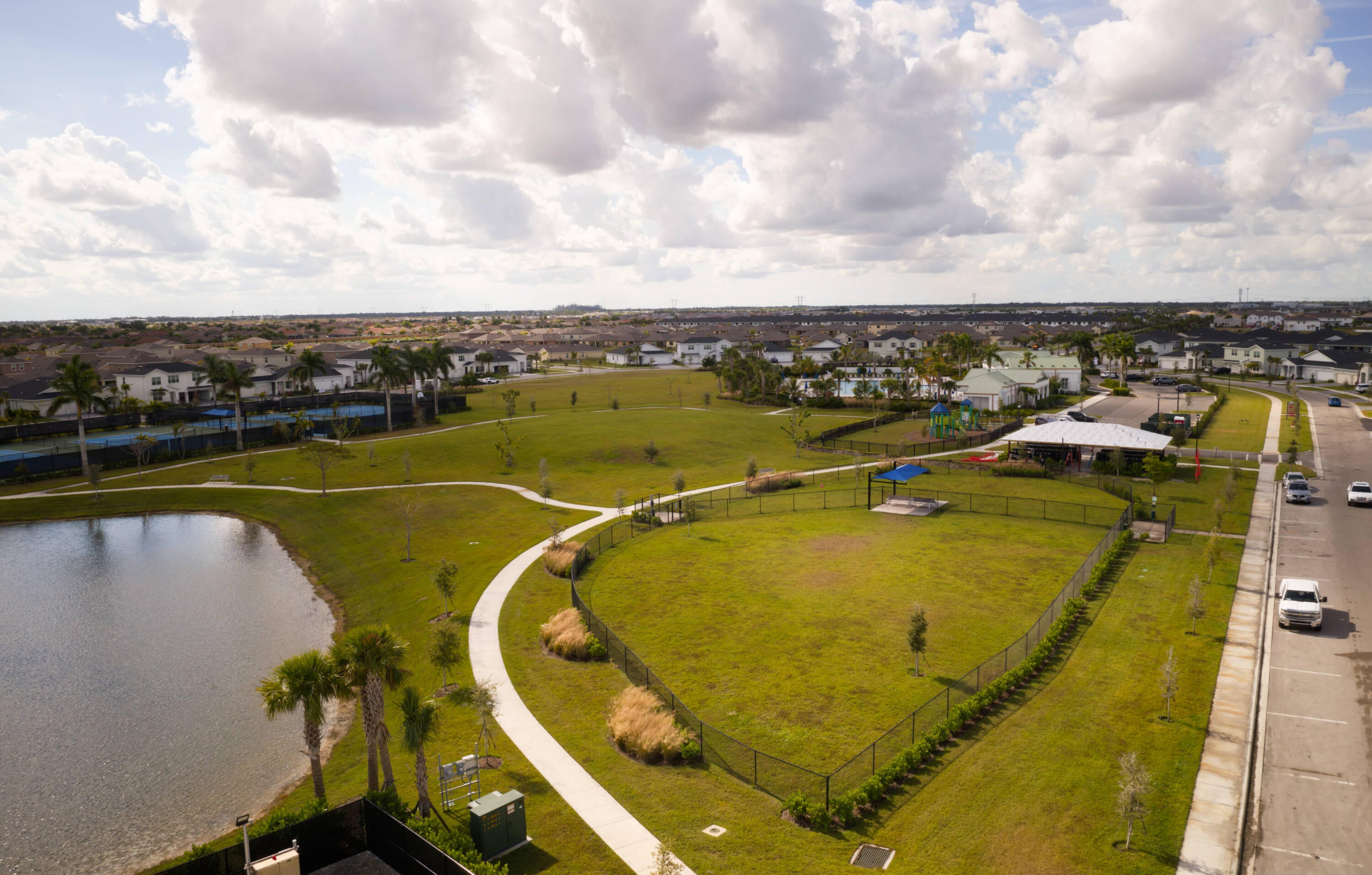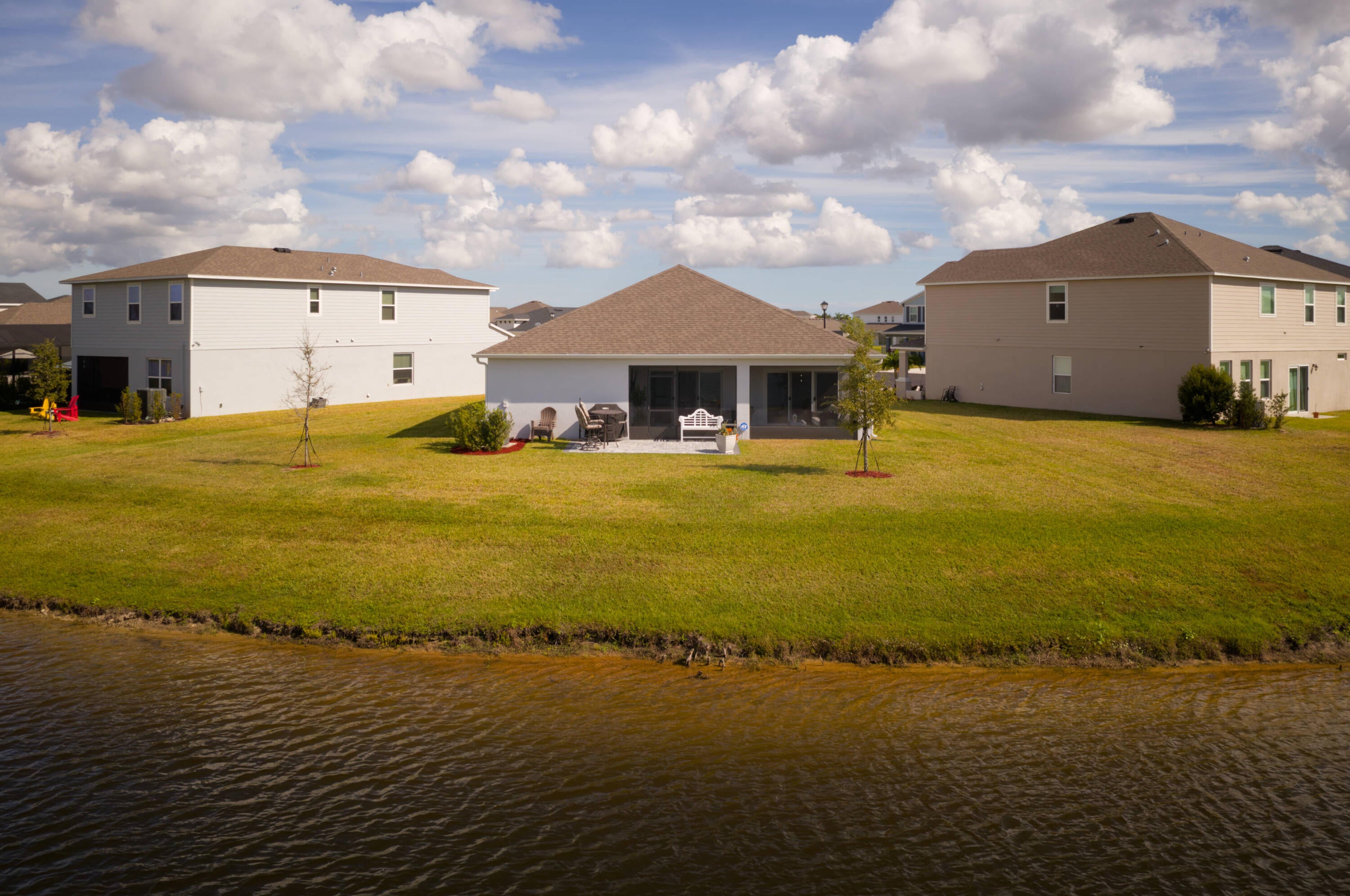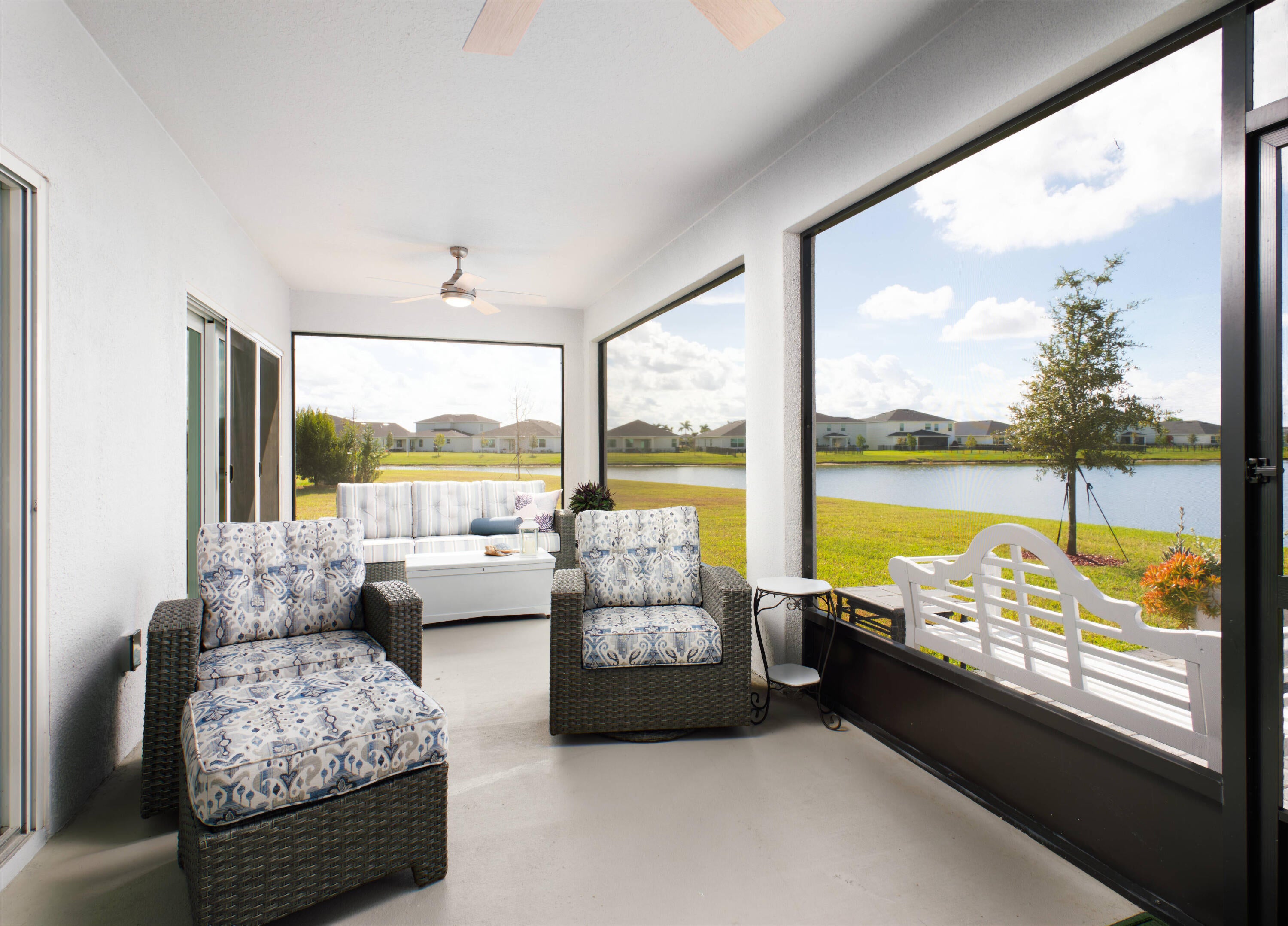 Welcome to a private sanctuary where every day begins and ends with stunning, expansive lake views. This immaculate 3-bedroom, 2-bath home features a highly desirable exposure, bathing the main living area in natural light and offering a seamless indoor/outdoor living experience. The property is ideally situated on a private cul-de-sac lot, offering a spacious backyard and added privacy. The home's open-concept design ensures the lake view can be enjoyed from the chef's kitchen, living room, and extended, screened-in lanai or adjacent paver patio. The interior showcases a tastefully designed, neutral palette that compliments the natural surroundings. The versatile kitchen is an entertainer's dream, featuring timeless white cabinetry and a striking quartz-topped island. Tile flooringflows seamlessly throughout the entire residence, no carpet in sight. The primary ensuite is a private retreat, defined by architectural details including a tray ceiling and crown molding. It offers both style and function with a spacious walk-in closet, a double quartz vanity, and a sleek, frameless glass shower. The home also includes upgrades of hurricane impact windows and doors, Taexx (built in pest defense), full gutter system, crown molding, built-ins, additional lighting, and ceiling fans throughout. Enjoy resort lifestyle in the sought-after 1,000-home Central Park community with low HOA fees. Exceptional amenities await, including a large clubhouse, resort-style pool, and dedicated courts for pickleball, tennis, and basketball, along with a full amenities center offering a gaming room with ping pong, foosball, and air hockey.