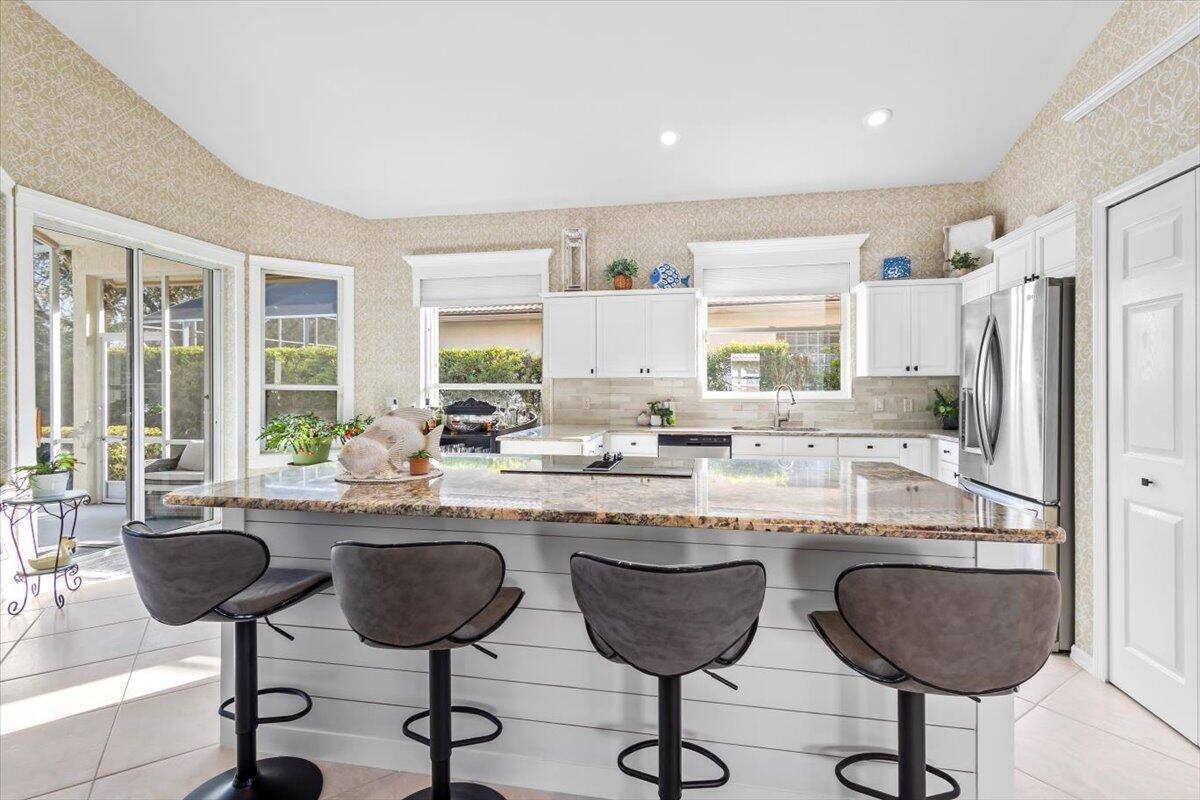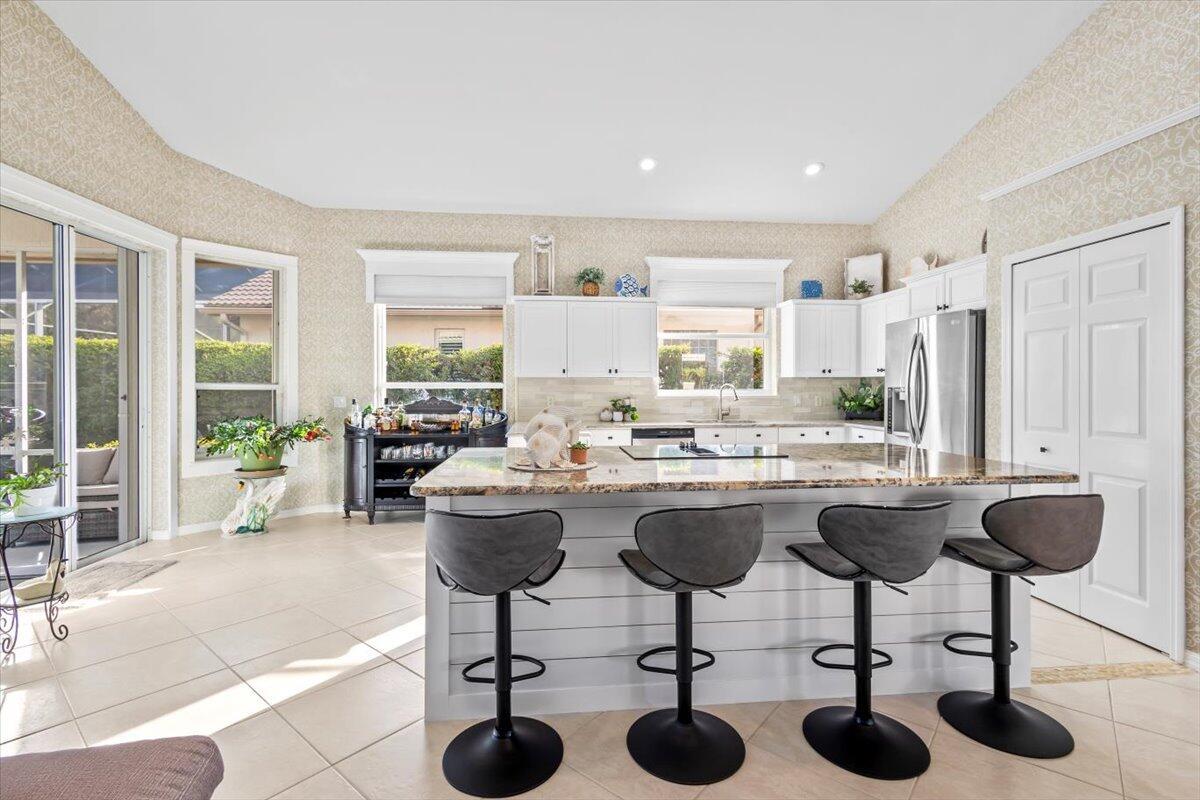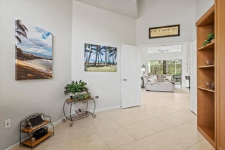 Fabulous Pool Home in ''Mystic Pines'' at PGA Village offer beautiful Golf & Lake Views. Features CBS Construction, NEW ROOF Nov. 2025 & gutters, extended paver driveway, 2.5 Car Garage & Great Curb Appeal! Hosting 2 BR's, Large Den with built in Murphy Bed, 2 updated Baths & Beautifully RE-DONE Home. Details include Updated Open Kitchen, Stainless steel appliances, breakfast Nook, Large Island, pantry, vaulted ceilings, Plantation Shutters, custom moldings, trim work & natural lighting. Great Room with sliding glass doors & room to entering. Spacious Master Suite offers wood flooring, custom closet doors & wonderful updated SPA like Master Bath w/ large shower, dual sinks & room for a stand alone tub if you prefer. Enjoy Stunning Golf & Lake Views of the 17th hole of Legacy Golf Course!Outdoor living where you can enjoy your own private pool, hot tub & large Bar & summer Kitchen. If you like to entertain don't miss this one! Roof: 2025, A/C: 2021, Water Heater: 2023, Hurricane shutters included. HOA includes Manned gated security, Lawn Care, common areas, cable, internet & The Island Club offering something for everyone. Resort Style pool, fitness center, card room, craft room, ballroom, library, billiards, butterfly garden, playground, tennis, pickleball, clubs, entertainment, travel & more! PGA Village has 3 Champion golf courses you can join plus open to the public to play & The Legacy Golf Course (Private membership). You could live in PGA and enjoy the beautiful golf courses but membership is not mandatory to live there. Located close to shopping, restaurants, doctors, hospital, schools and even home of the NY Mets Spring Training! Only 45 minutes from Palm Beach airport.