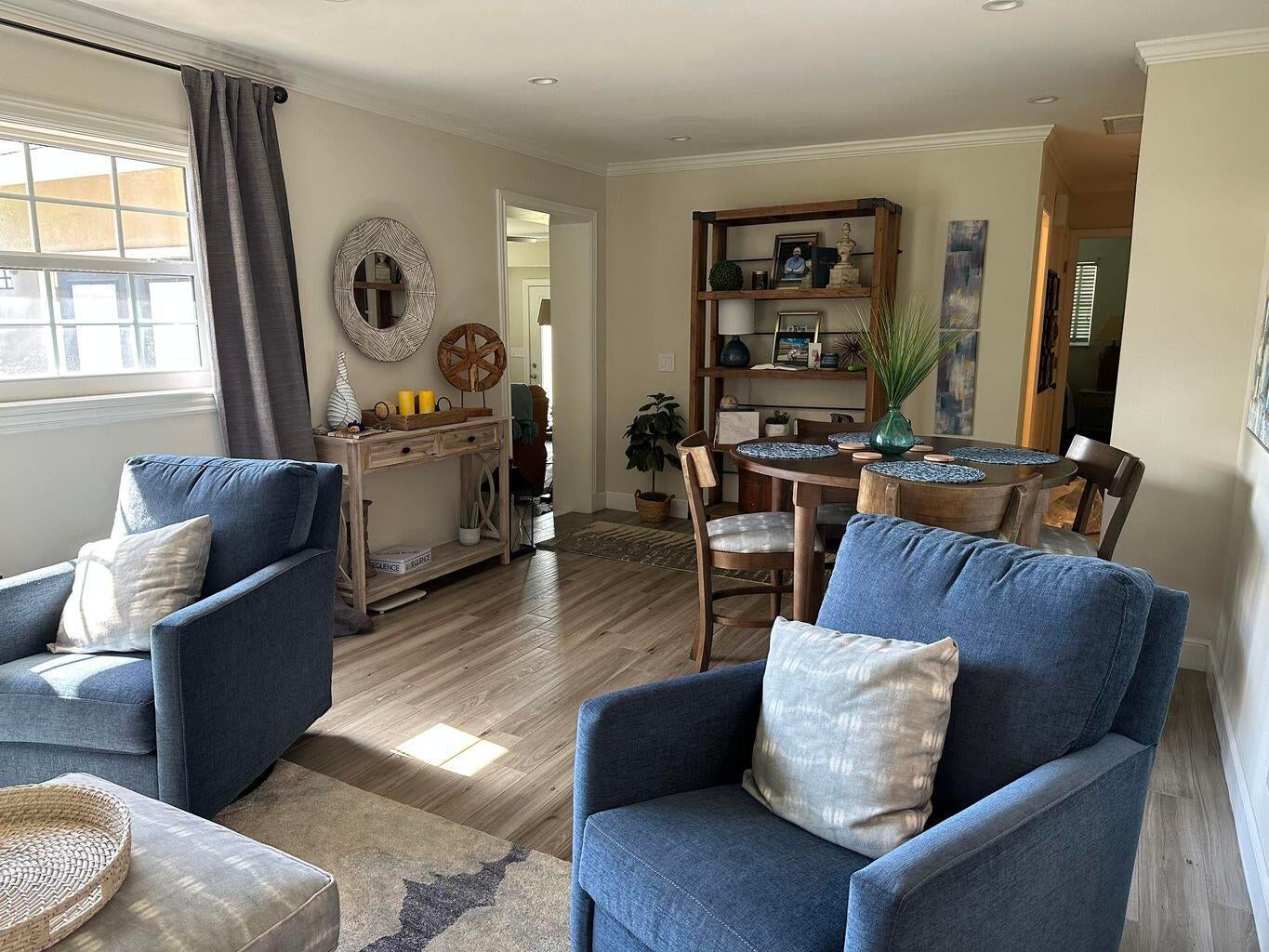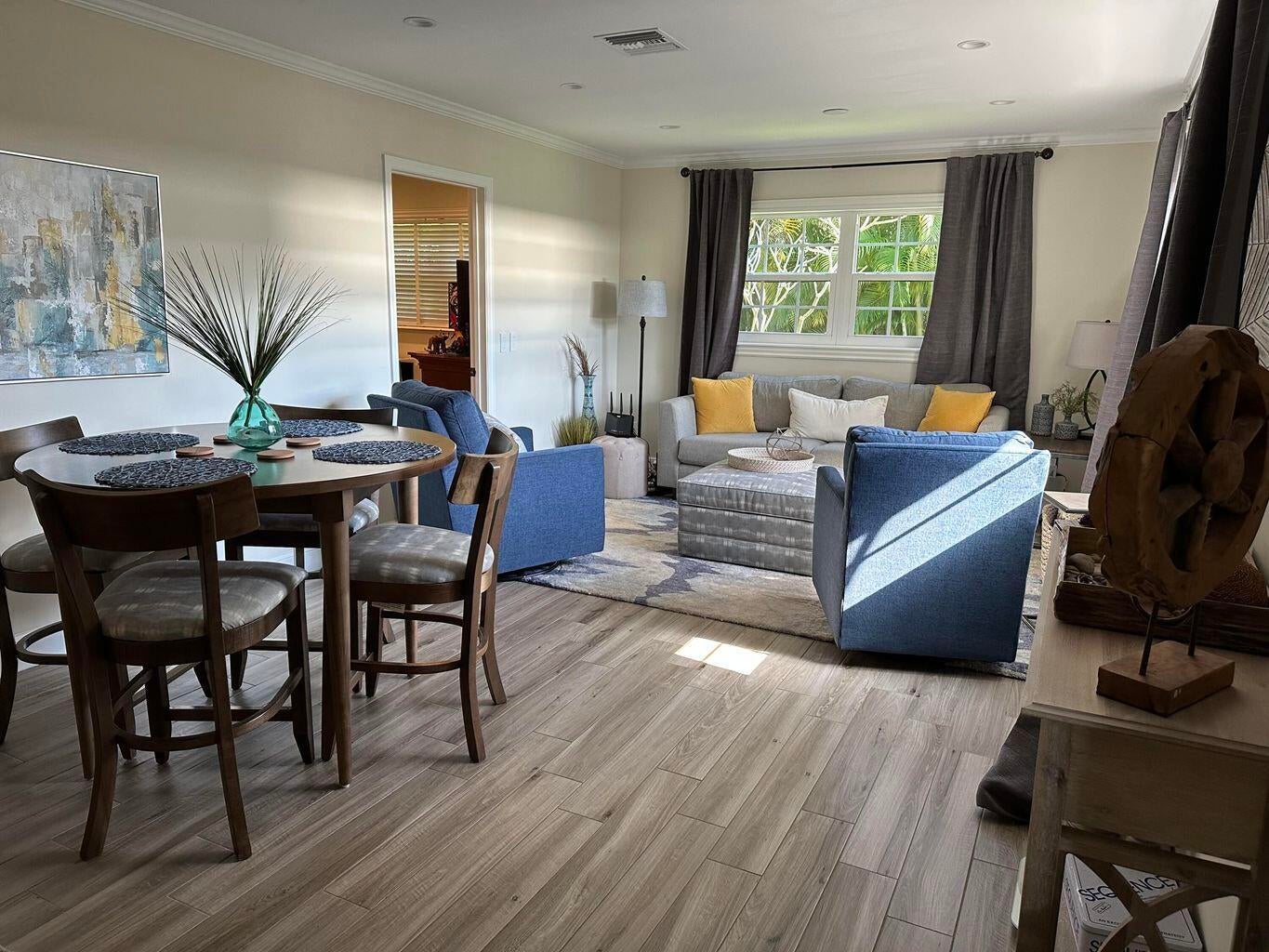 Fully updated with new floors, new vanities, newer appliances, recessed lighting, hard-wired for surround sound, bright white cabinets and quartzite countertops. This 2/1.5 with den/office that can be used as 3rd bedroom is in the heart of Palm City. This home is located in an ''A'' rated school district and walking distance to Jock Leighton Park where bike rides and long walks are always welcome! Shopping and entertainment only minutes away. Privacy welcomes you in your backyard oasis surrounded by lush vegetation. Lawn maintenance and pest control included.