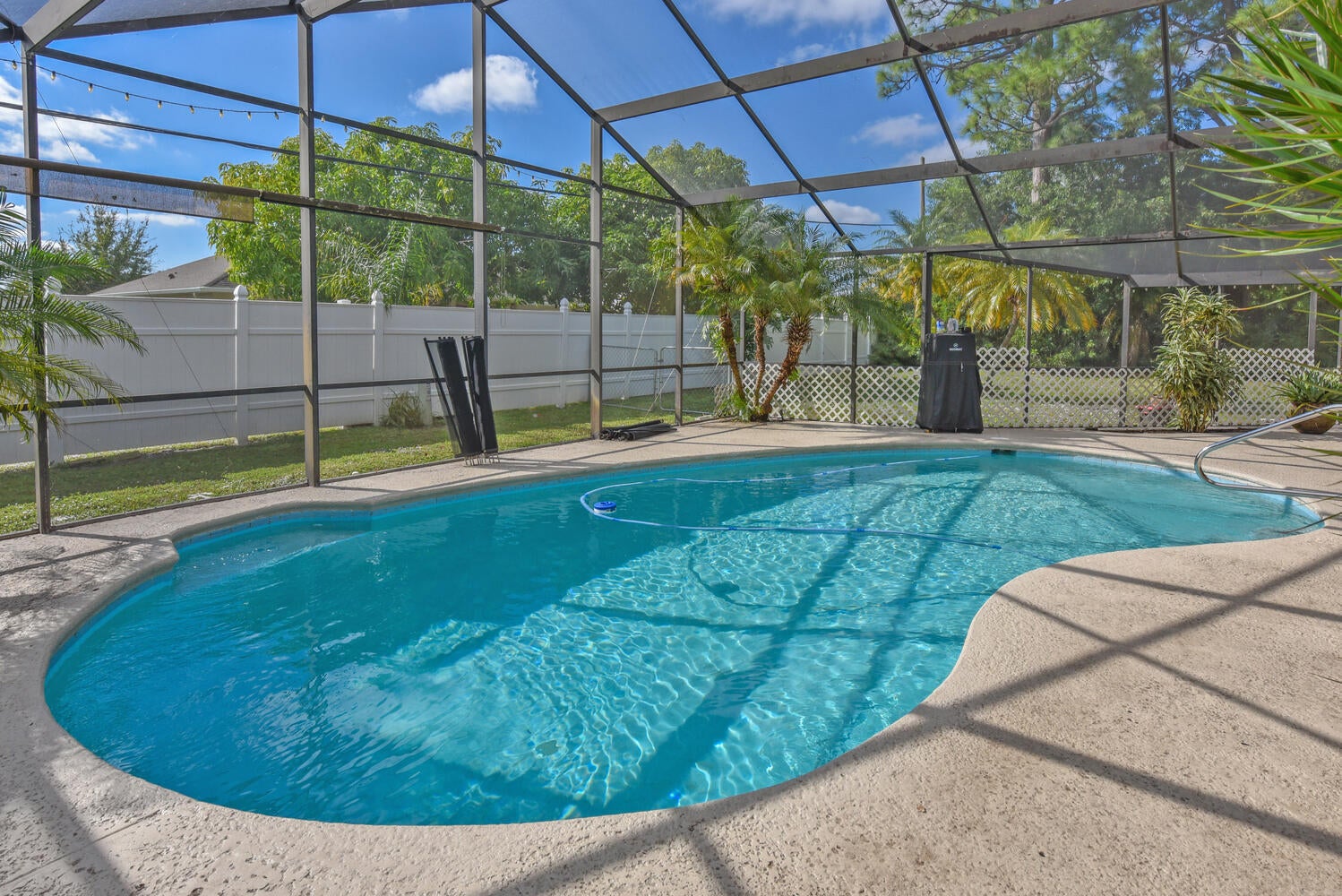 This beautifully updated 4-bedroom, 3-bath, 2-car garage home sits on an expansive double lot just off Floresta and Thornhill - a prime location close to everything PSL has to offer. Step inside to find a bright, modern interior featuring an updated kitchen, fresh paint, and new flooring throughout. Major upgrades give you peace of mind, including a new roof, newer AC, new water heater, new gutters, and an extended driveway for added convenience. Also included is a paid-off 125-gallon propane tank, offering added convenience and efficiency. Out back, enjoy true Florida living with a sparkling pool, an oversized screened lanai, and a partially fenced yard perfect for your pups to play. It's the ideal space for relaxing, entertaining, and soaking up the sunshine.