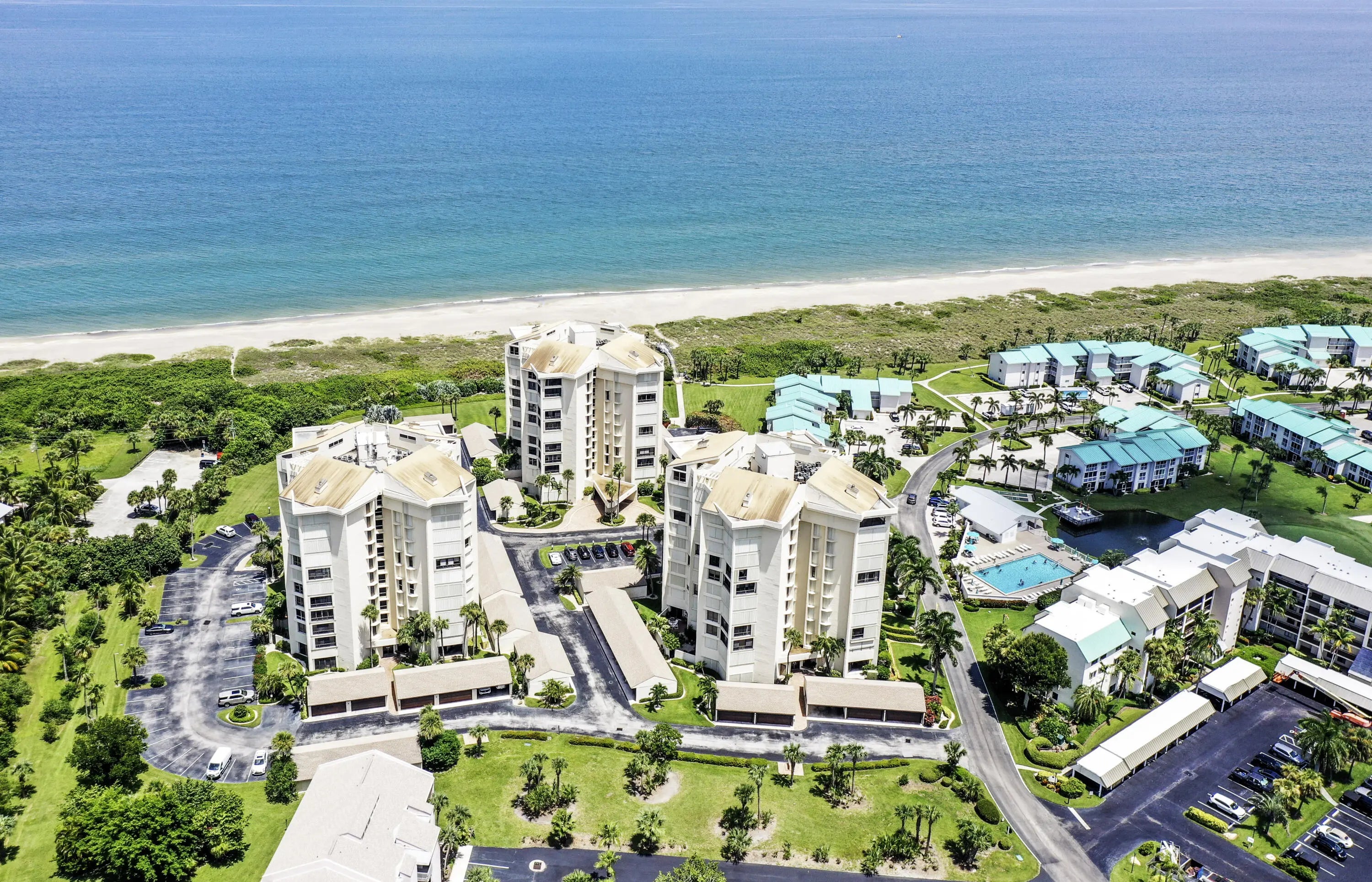 10th floor condo with absolutely stunning beachfront ocean and river views with southern exposure. TURNKEY 2 bed/2 bath condo features partial impact glass (full shutters), beautifully remodeled kitchen and baths, newer appliances, newer AC and HWH, just steps away to Seascape I pool, hot tub and beach cross over, with shared garage. Great rental income potential as well! Enjoy beautiful Ocean Village and the many amenities it has to offer including 3500 feet of private beach, 9-hole 3 par golf course, bocce ball, shuffle board, tennis, multiple pools, hot tub, sauna, pickleball, new fitness center and clubhouse 2023, NEW onsite restaurant and tiki bar, new resort style main pool, 24 hour gated community and close proximity to the Jetty and historic downtown Ft. Pierce.